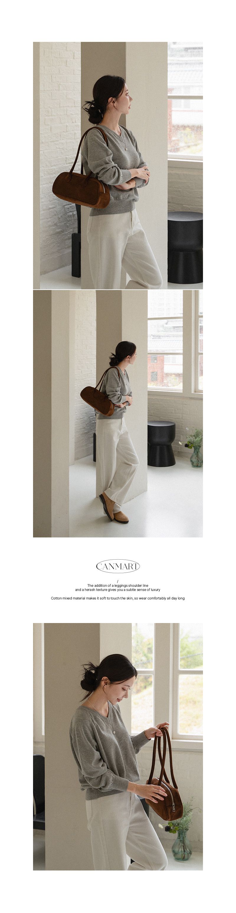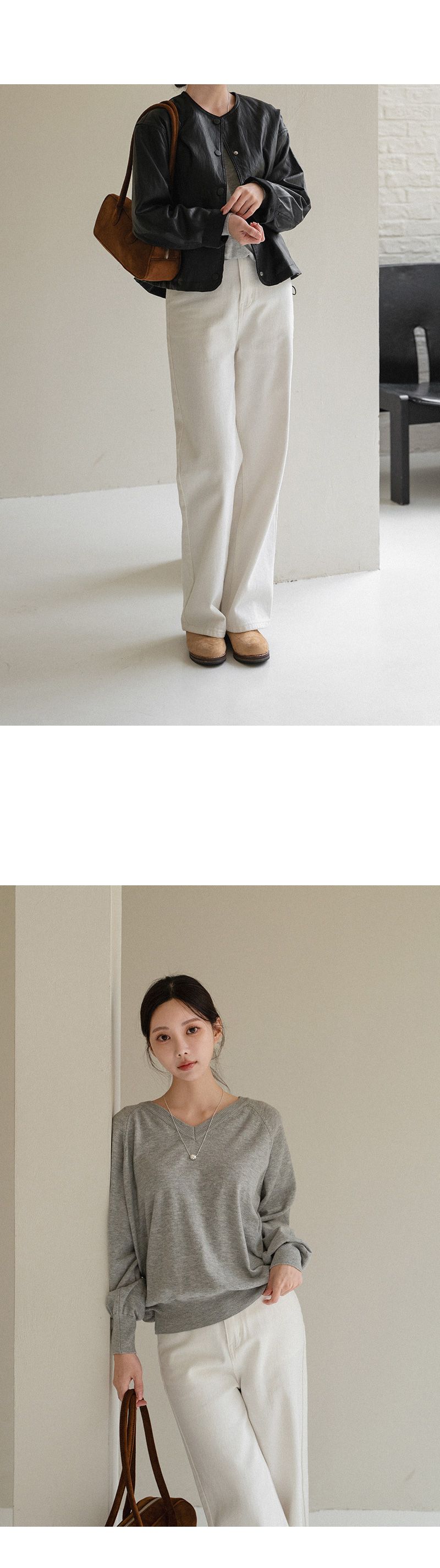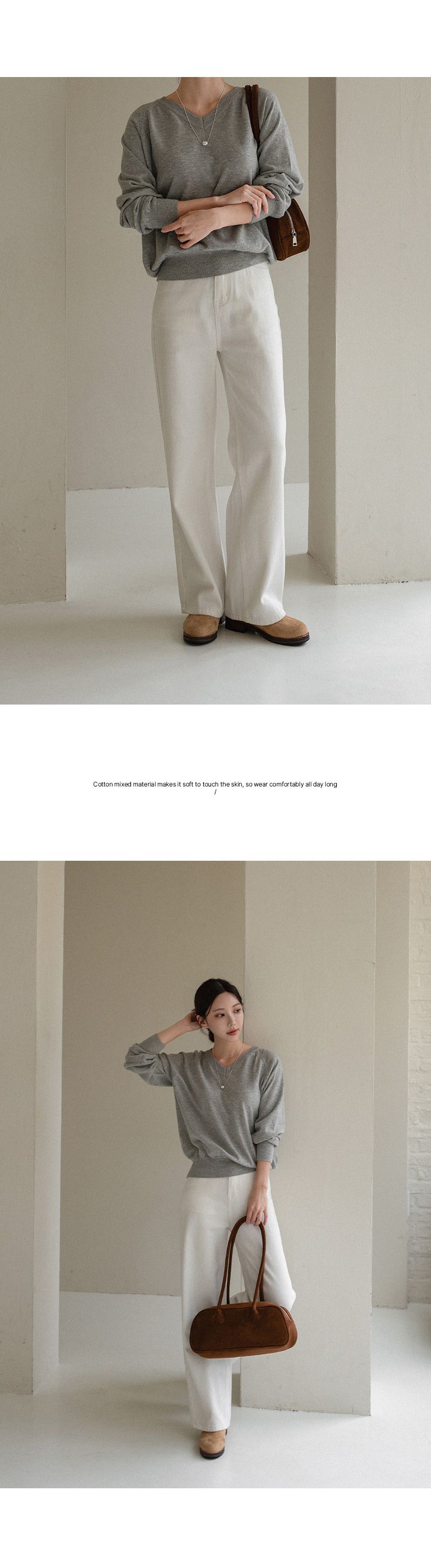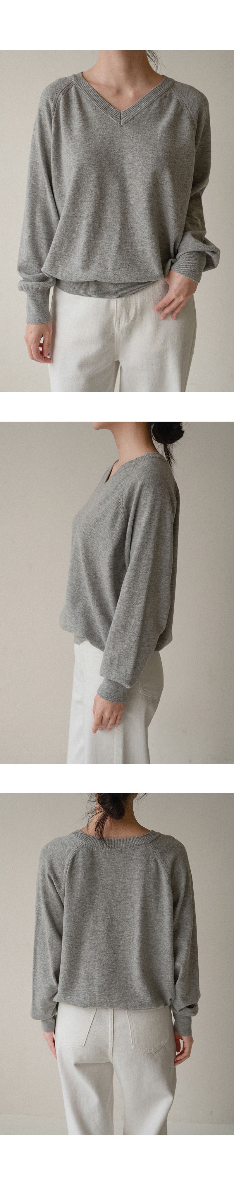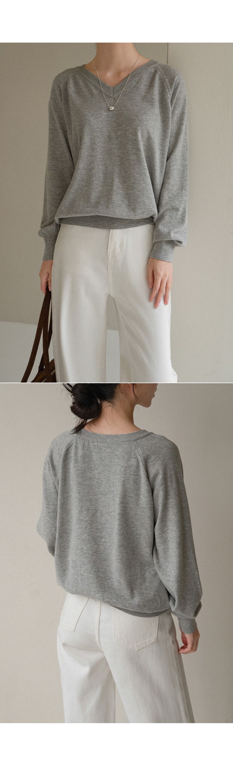 視覺收腰顯瘦/秋冬基礎款/內搭or單穿都好看-休閒居家簡約百搭素面OL上寬下窄V領親膚落肩長袖上衣針織衫灰色燕麥色