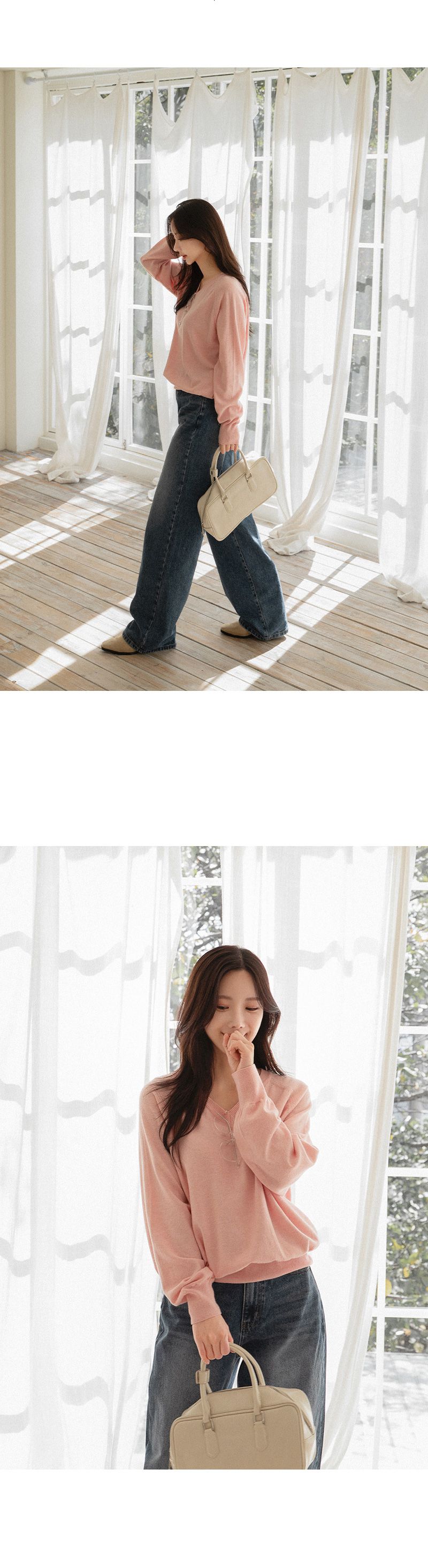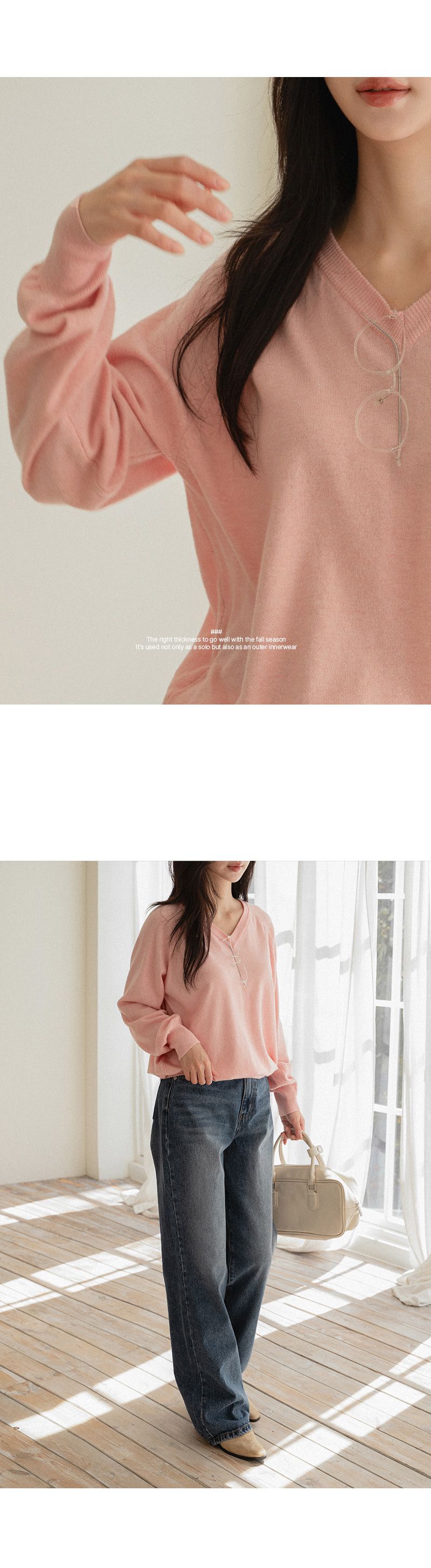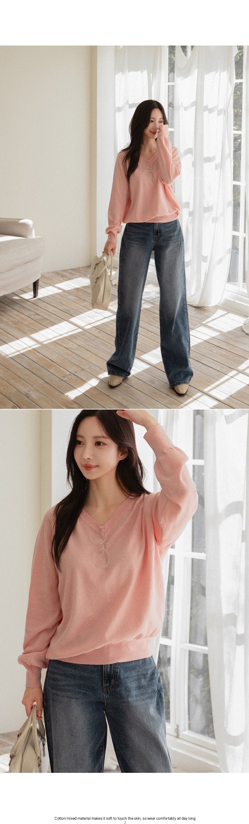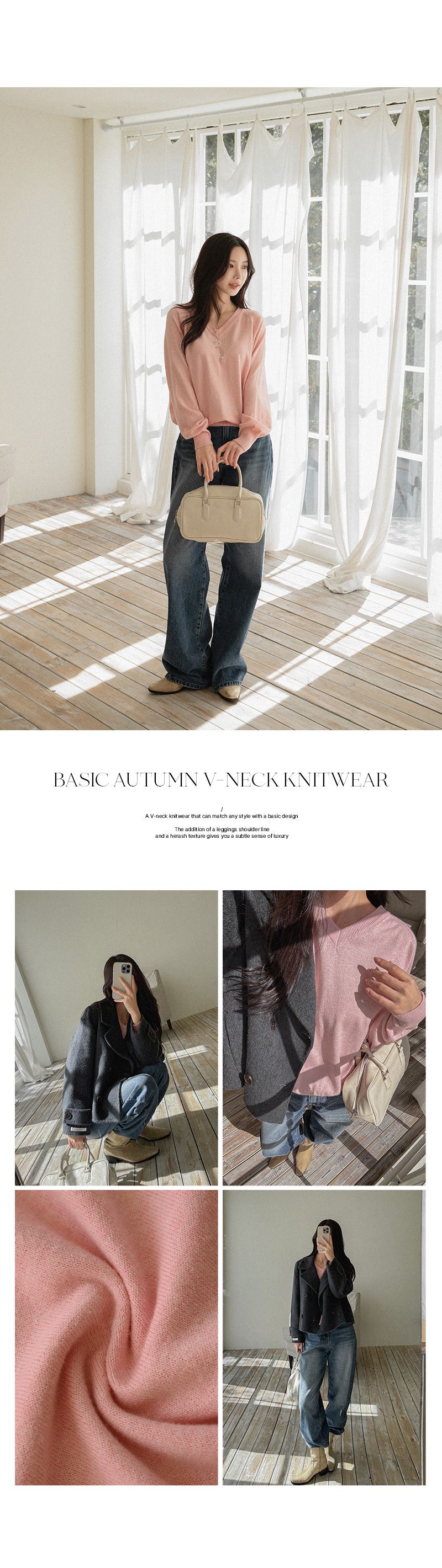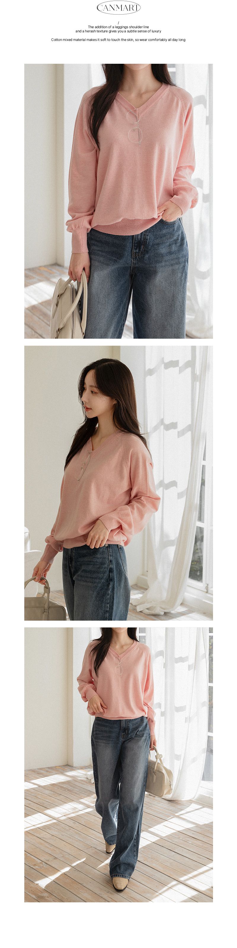 【C55546】韓國CAN 素面OL針織衫-上寬下窄V領親膚落肩長袖上衣★★