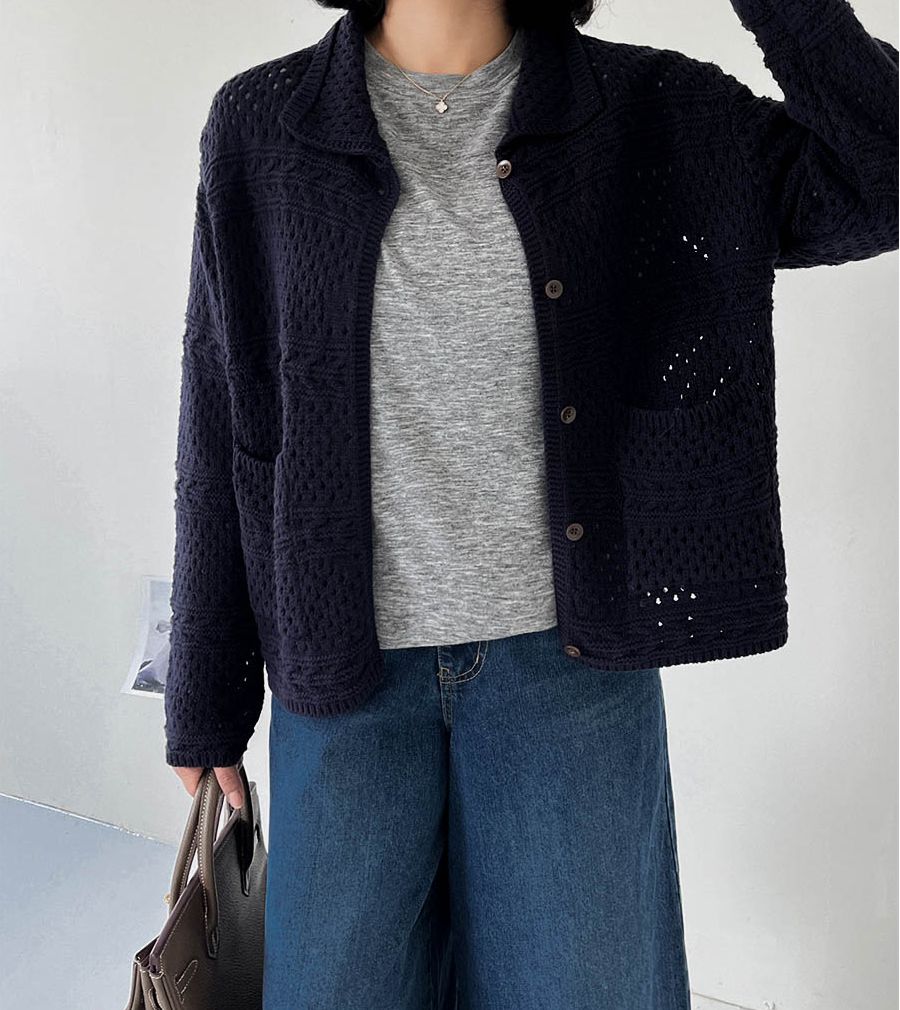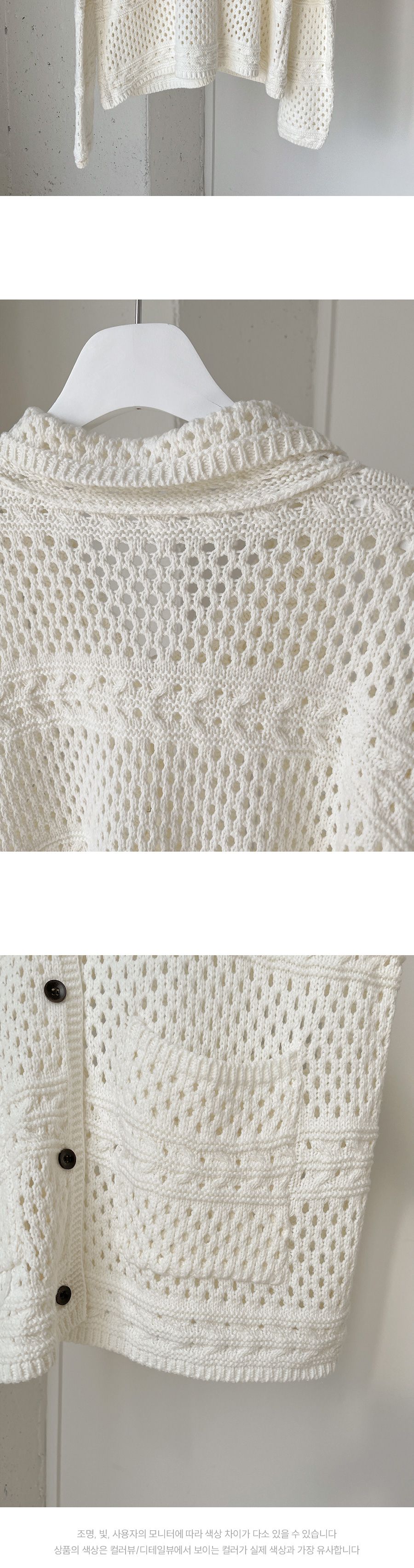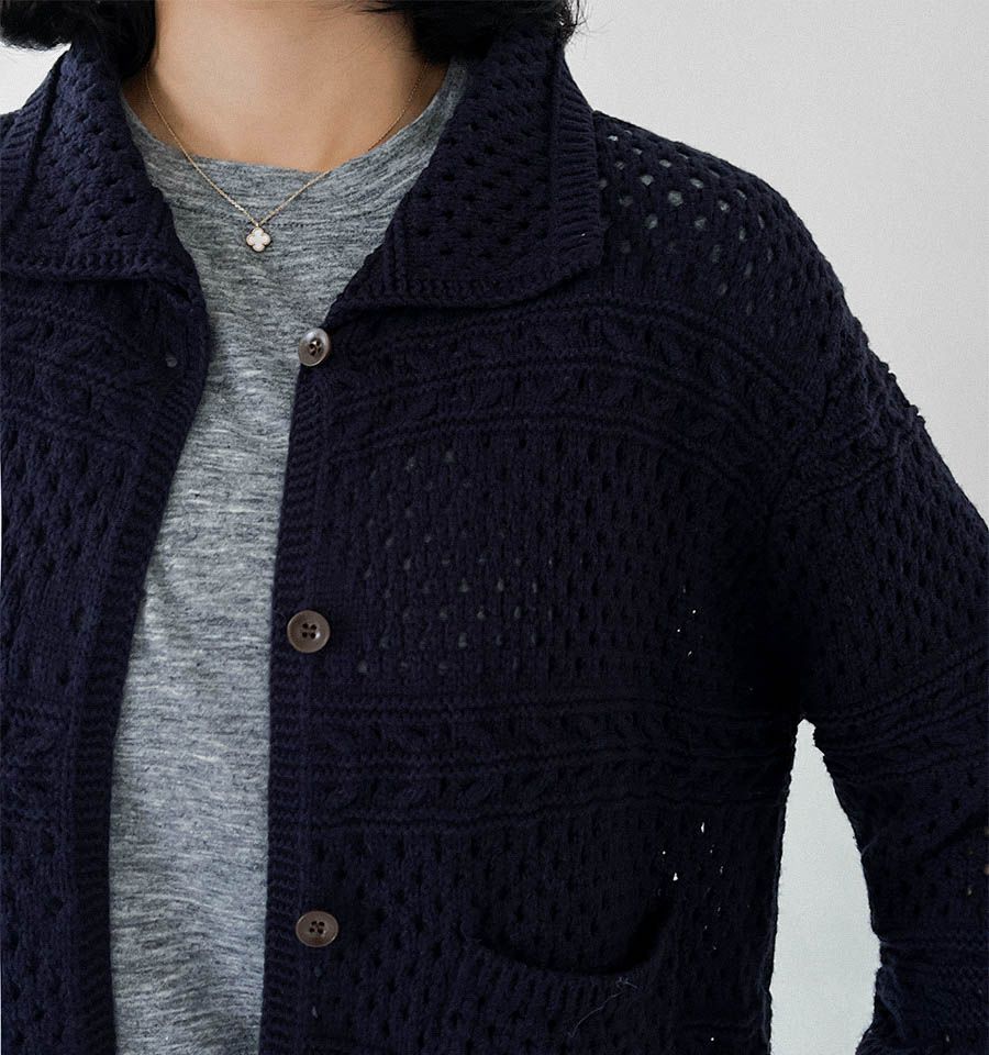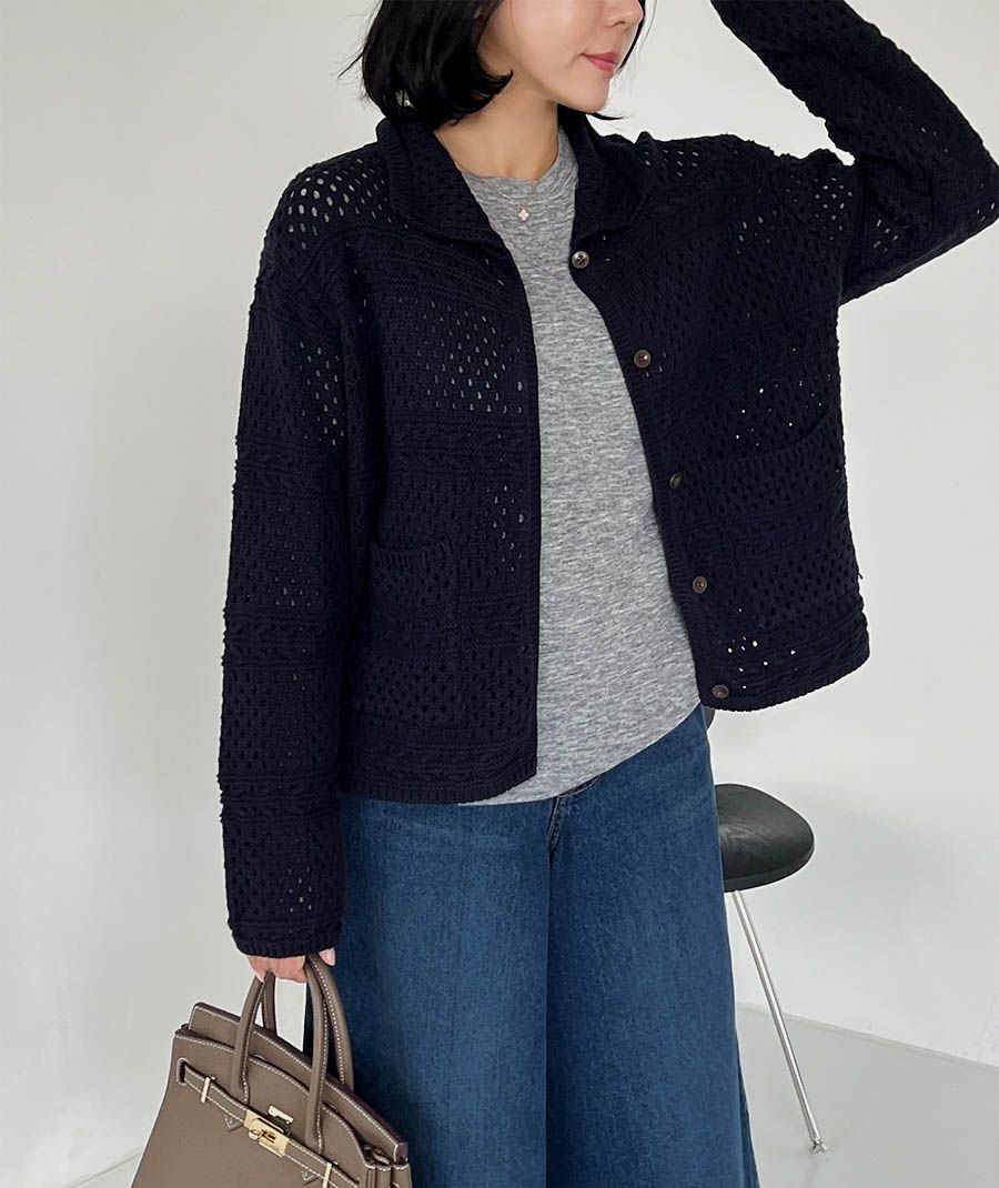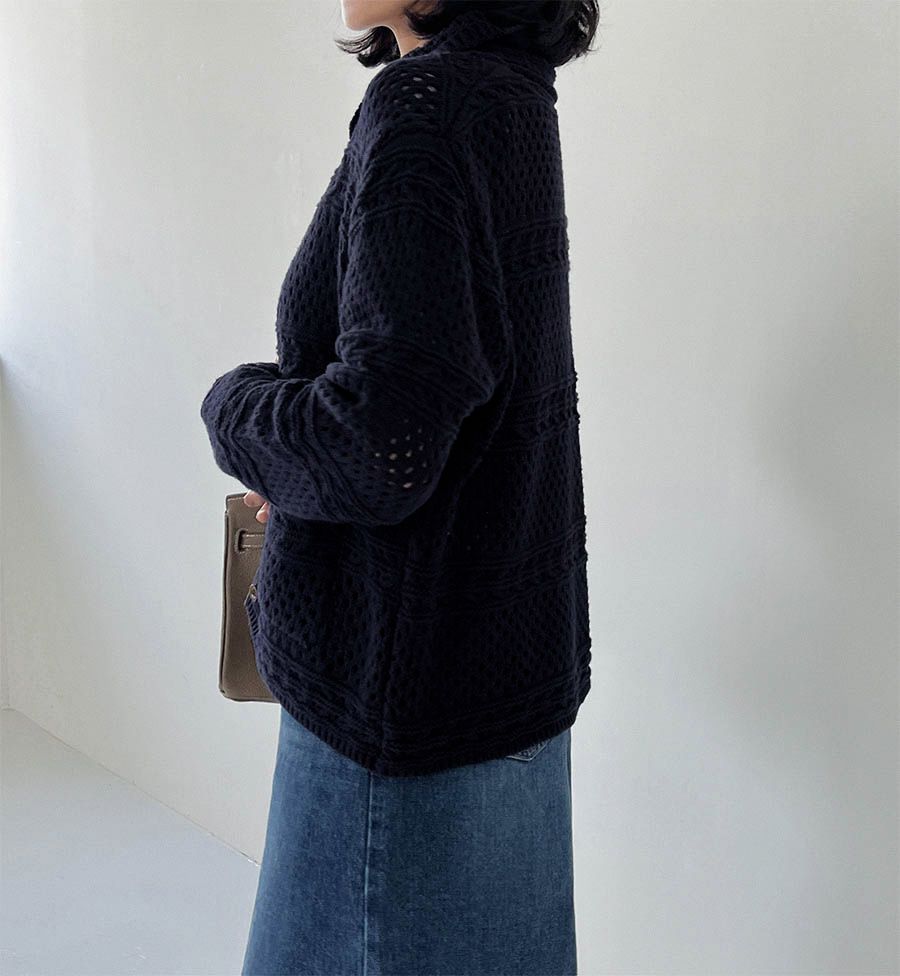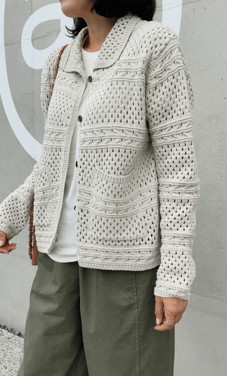 【C55556】韓國COJ 縷空雕花針織衫-素面翻領開襟排釦雙口袋長袖外套★★
