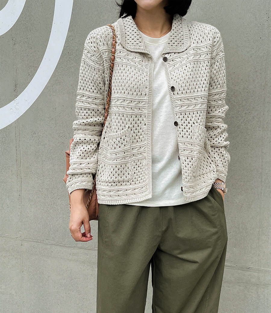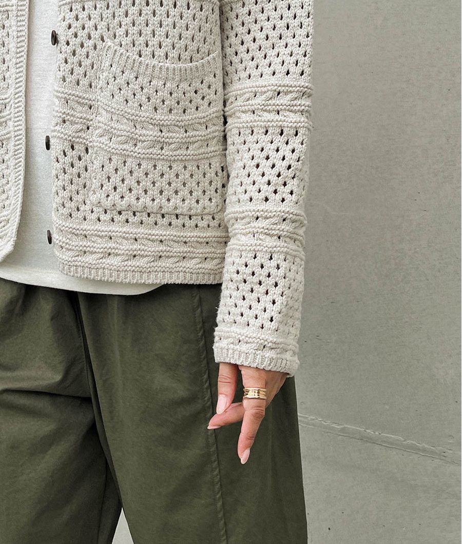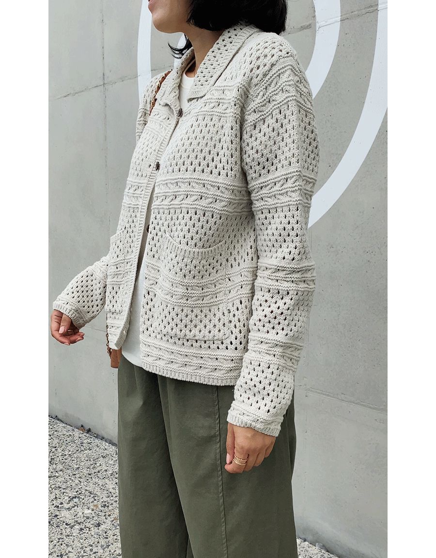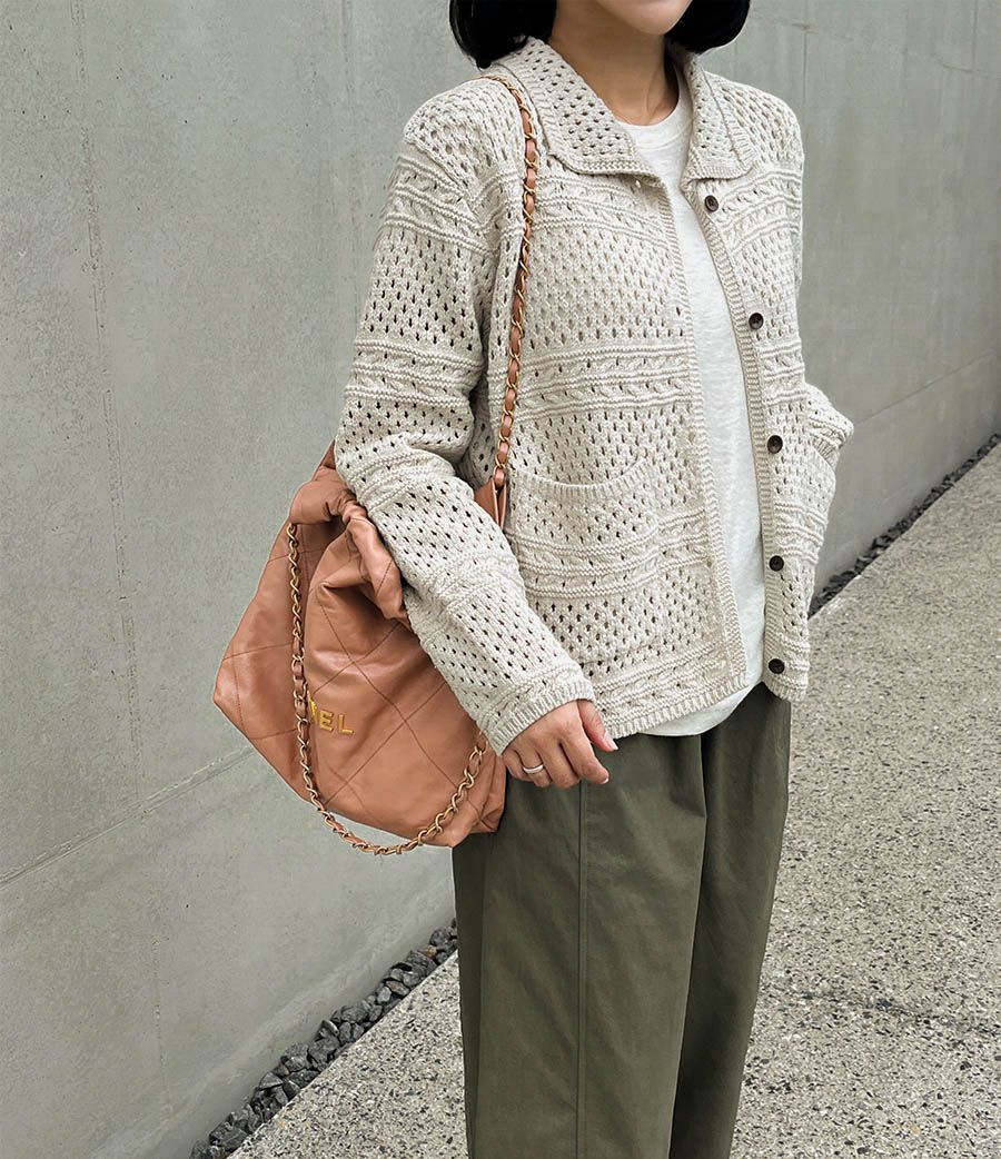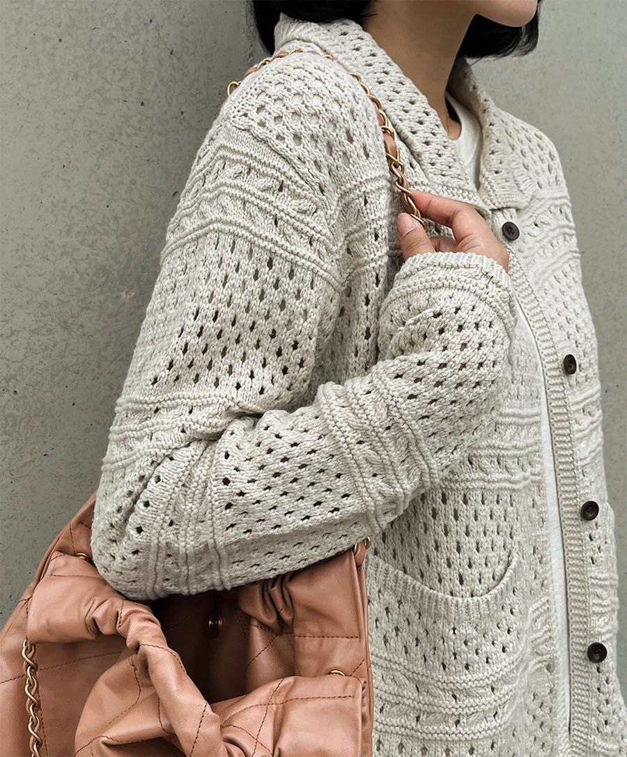 【C55556】韓國COJ 縷空雕花針織衫-素面翻領開襟排釦雙口袋長袖外套★★