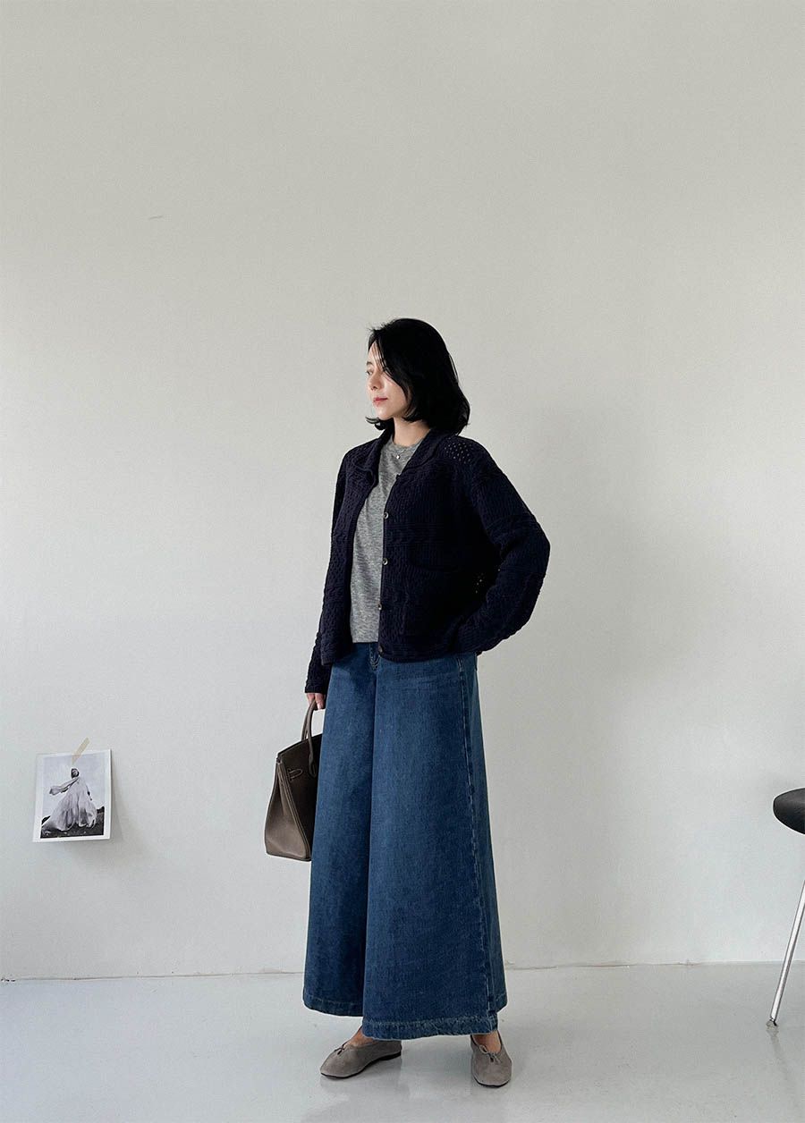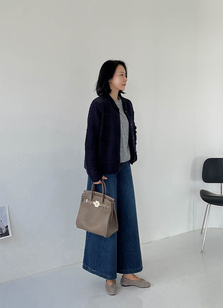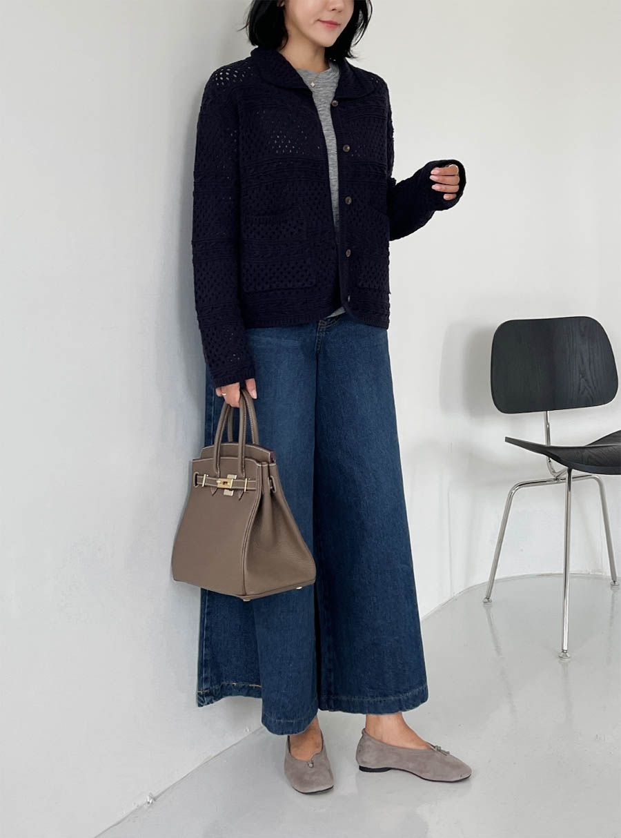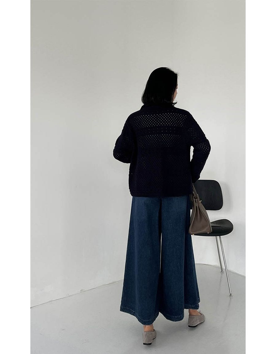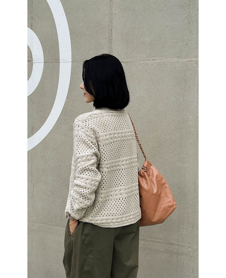 【C55556】韓國COJ 縷空雕花針織衫-素面翻領開襟排釦雙口袋長袖外套★★