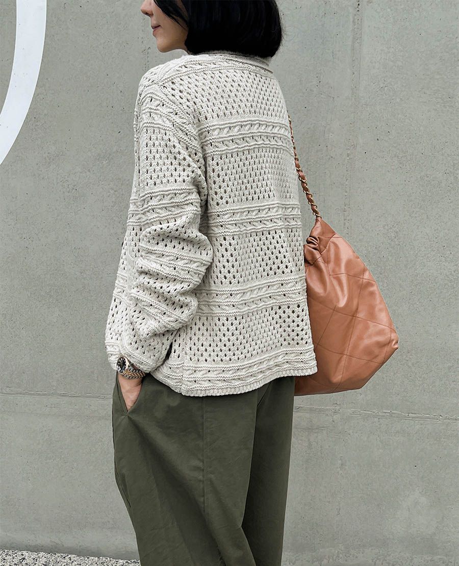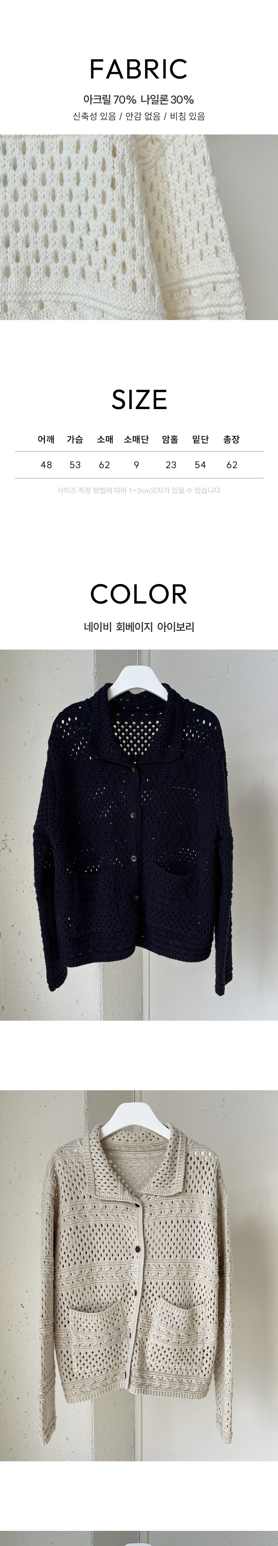 粗鉤針編織/洞洞裝/縷空蕾絲雕花/翻領/開襟排釦/雙口袋 - 休閒居家渡假婚禮簡約百搭素面縷空雕花針織衫外套長袖外套米色象牙色深藍色