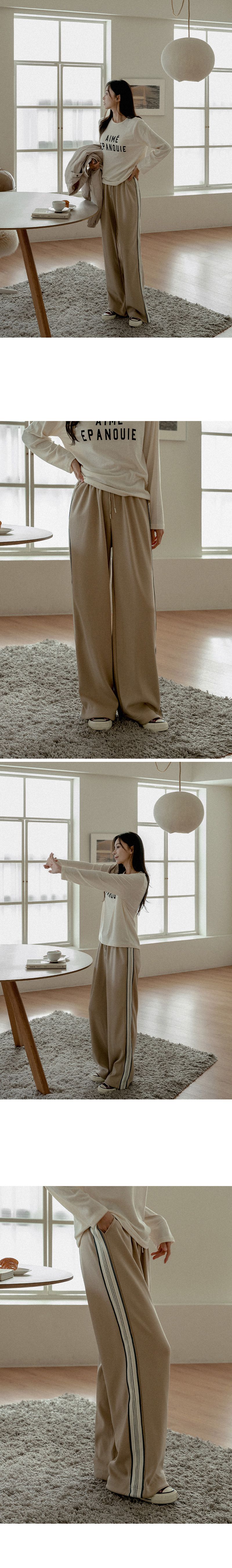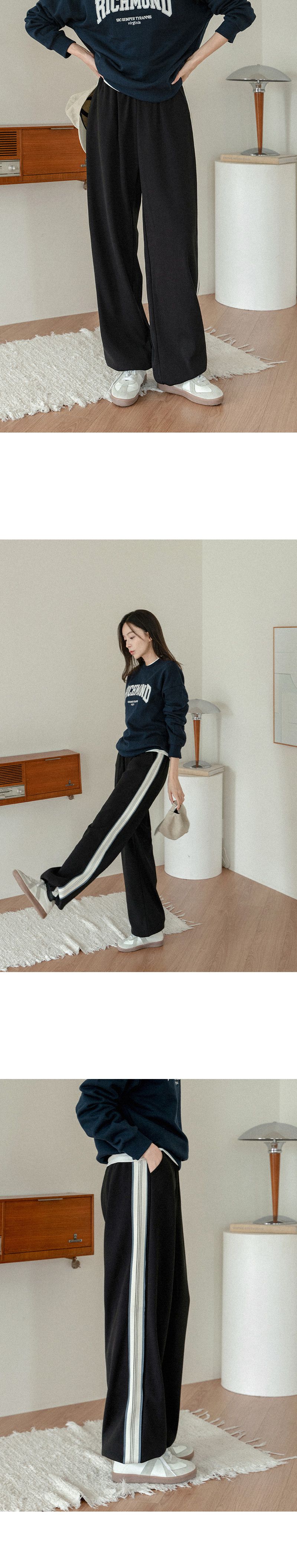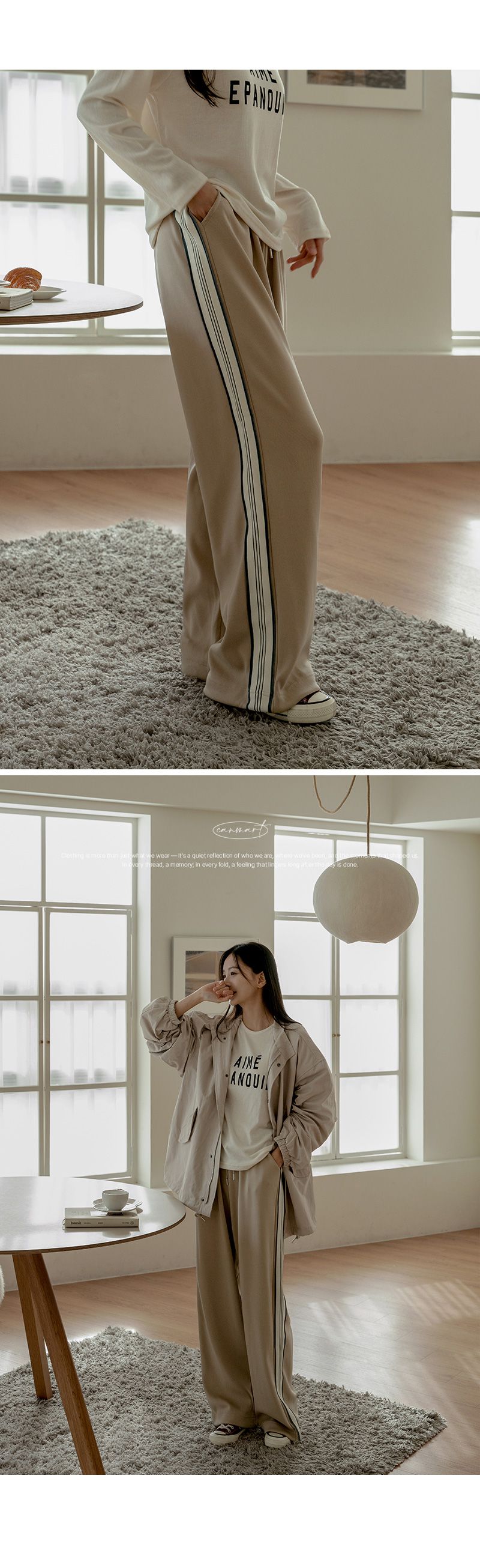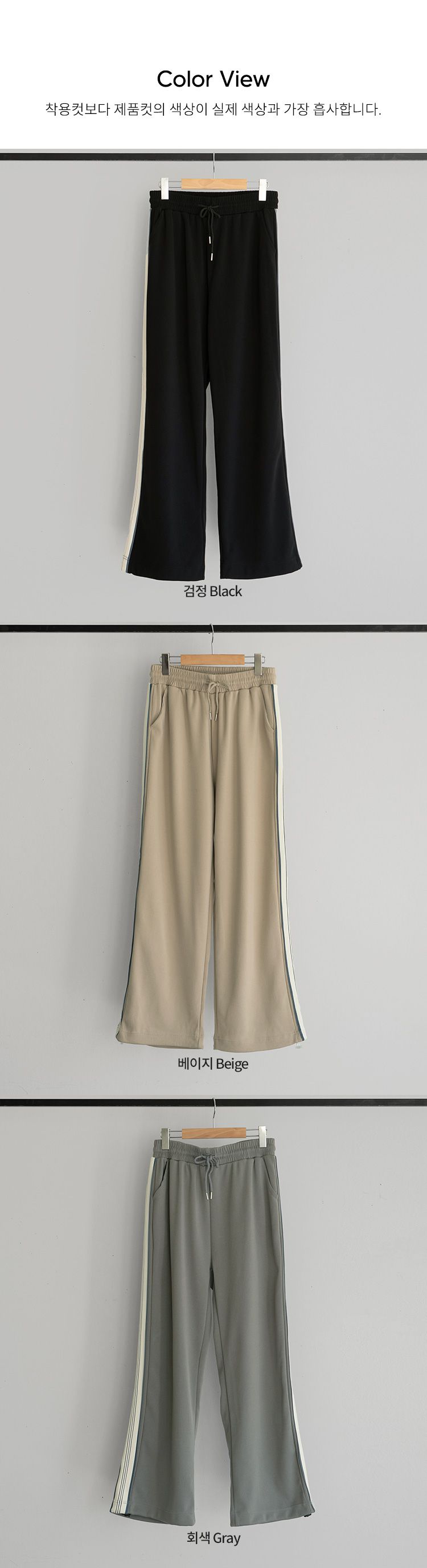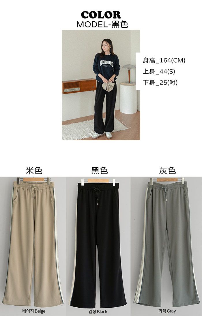 【C55568】韓國CAN 條紋束口運動褲-側邊白條抽繩收腰直筒褲長褲
