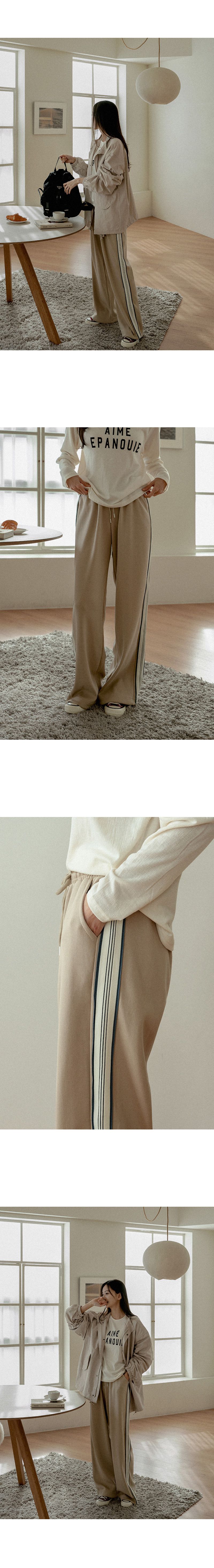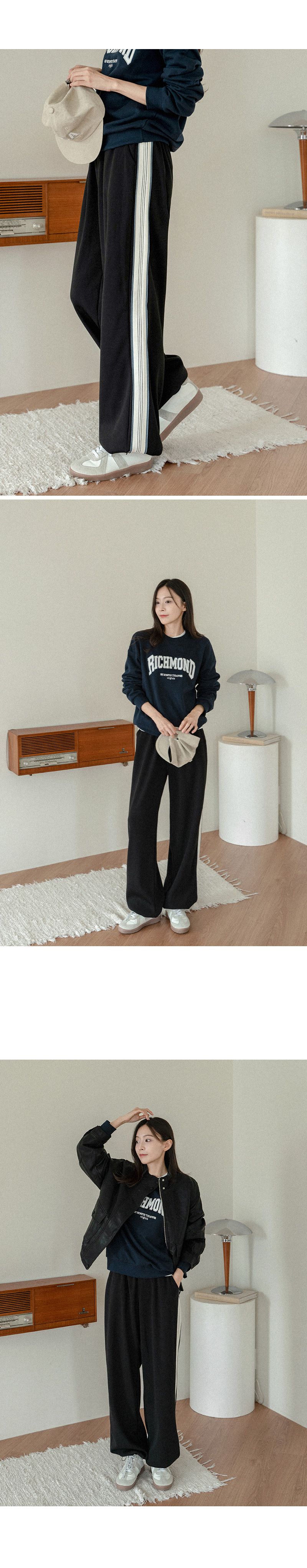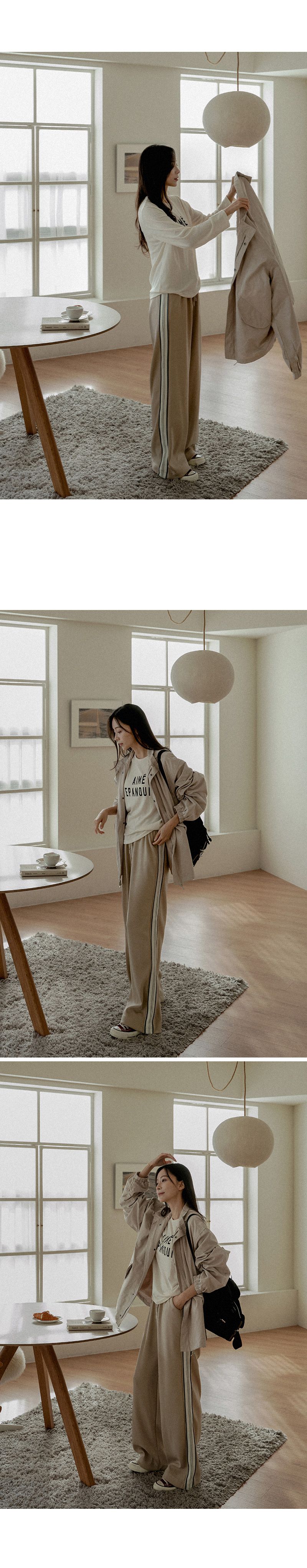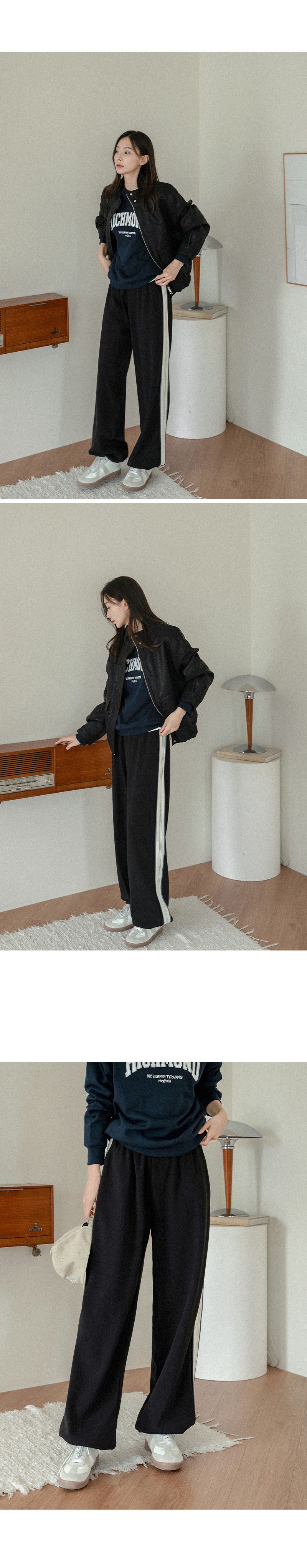 【C55568】韓國CAN 條紋束口運動褲-側邊白條抽繩收腰直筒褲長褲