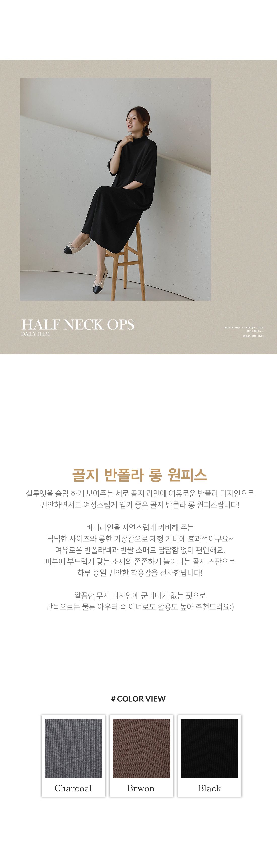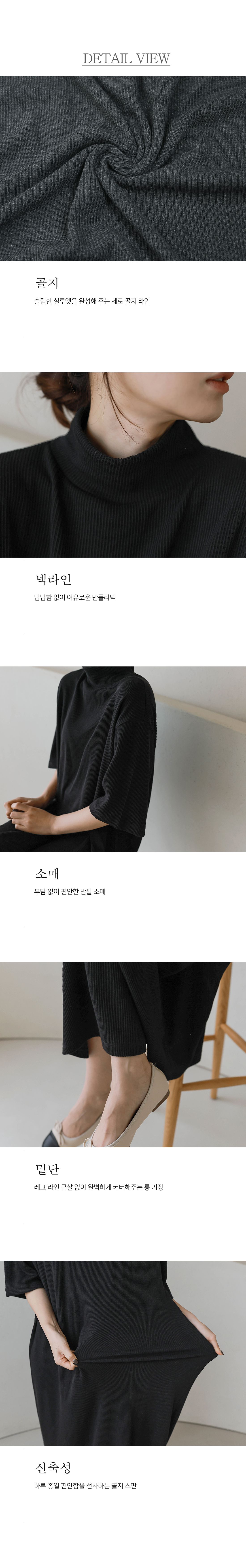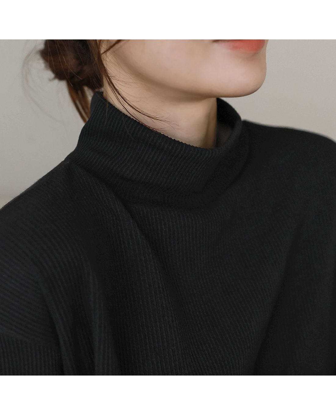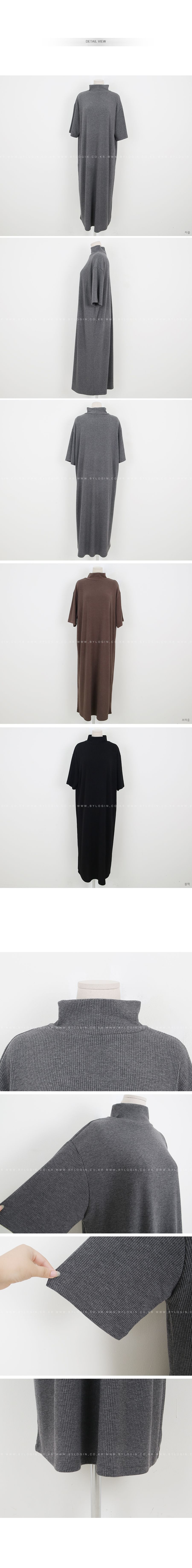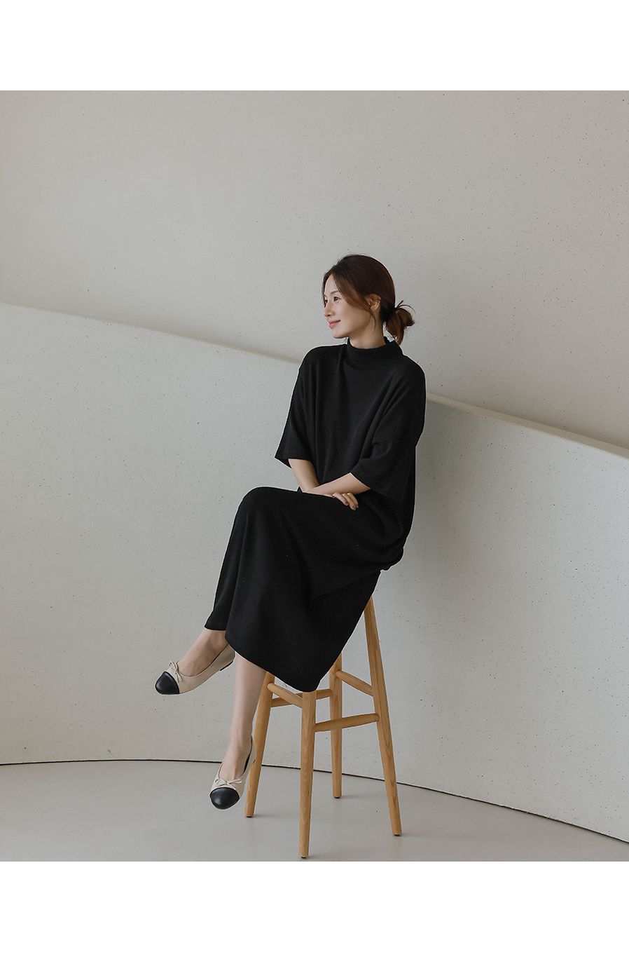 【C55573】韓國BLG 坑條立領洋裝-素面高領寬鬆直筒七分寬袖連身裙★★