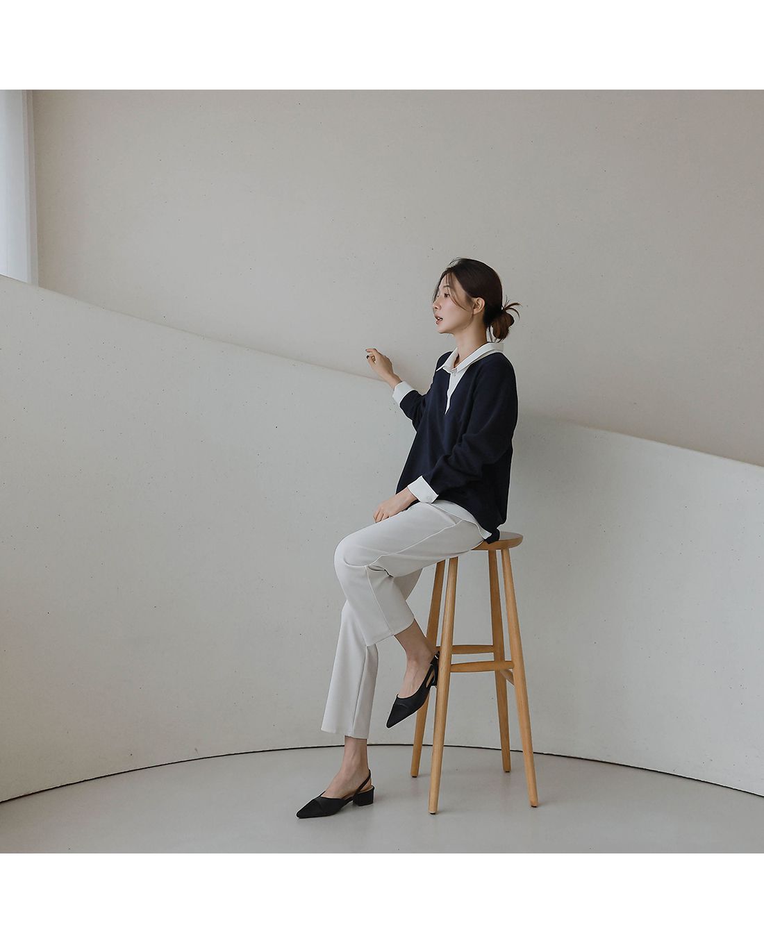 【C55586】韓國BLG 雪紡領針織衫-假兩件拼接素面寬鬆長版長袖上衣★★