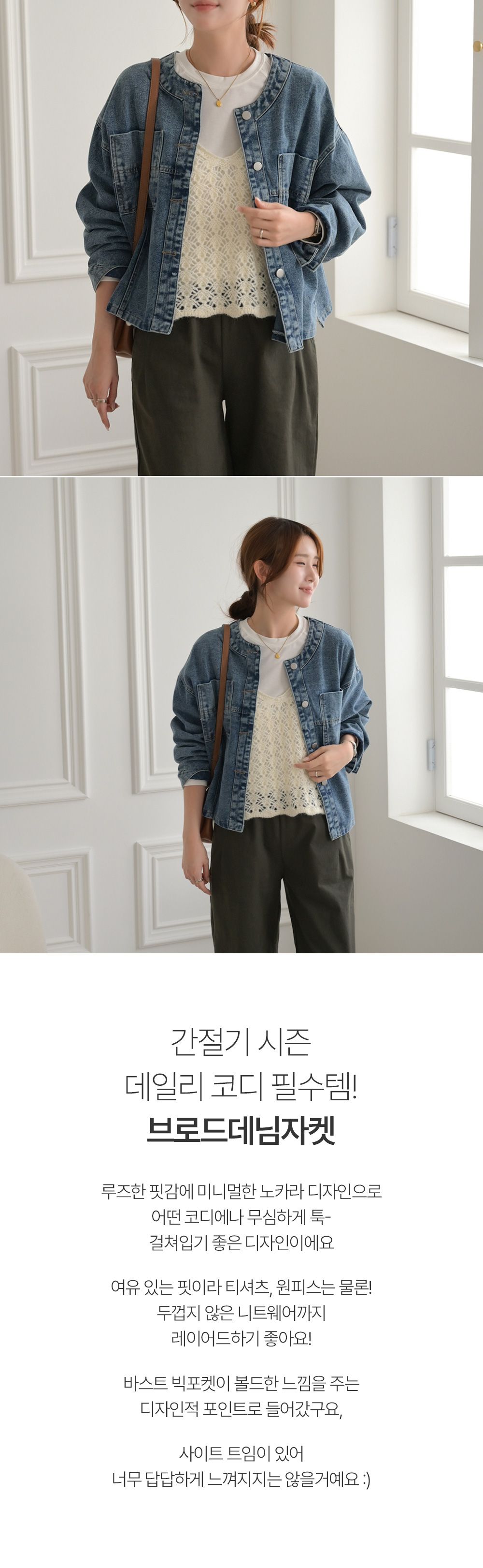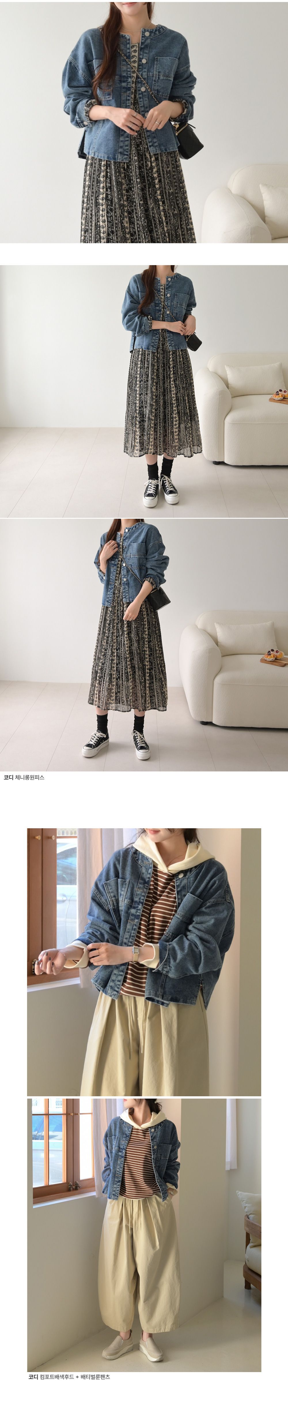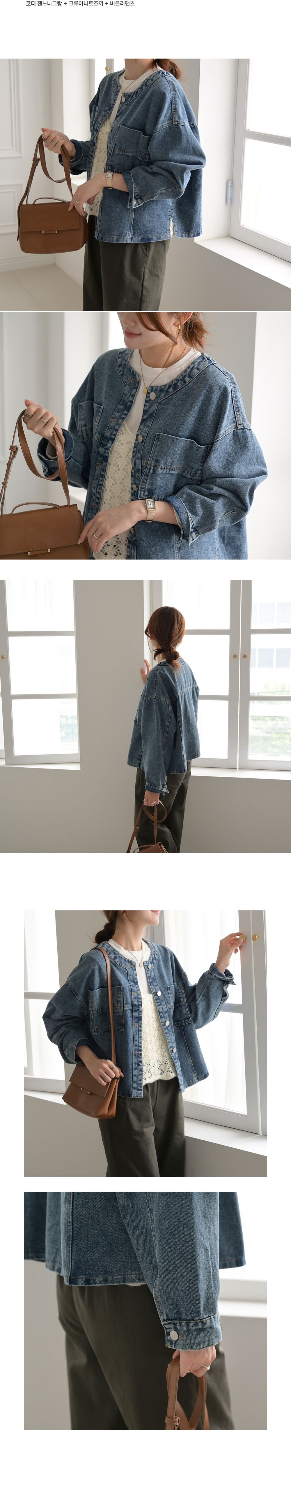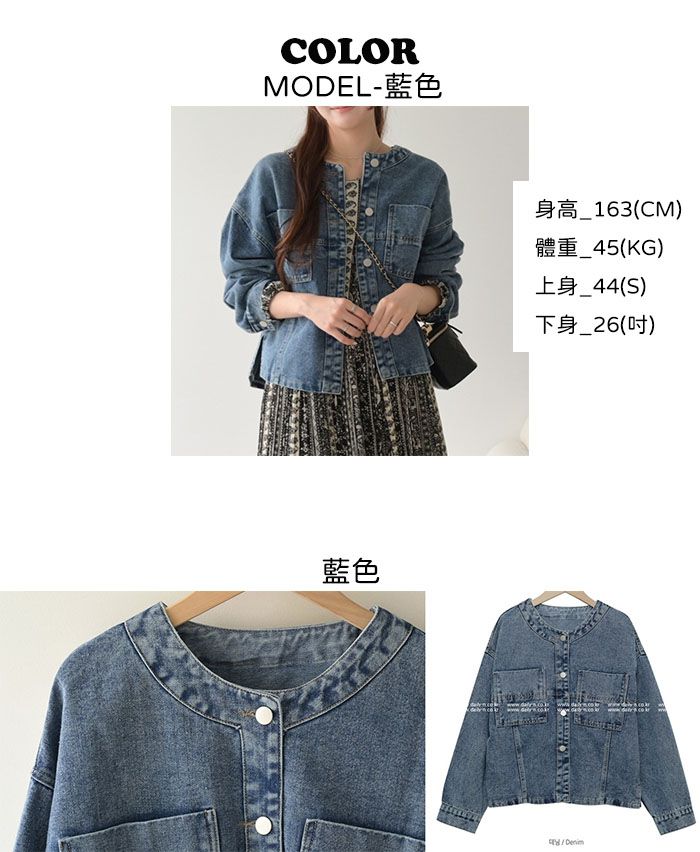 【C55593】韓國DLY 圓弧領牛仔外套-素面雙口袋側開衩寬鬆短版長袖★★