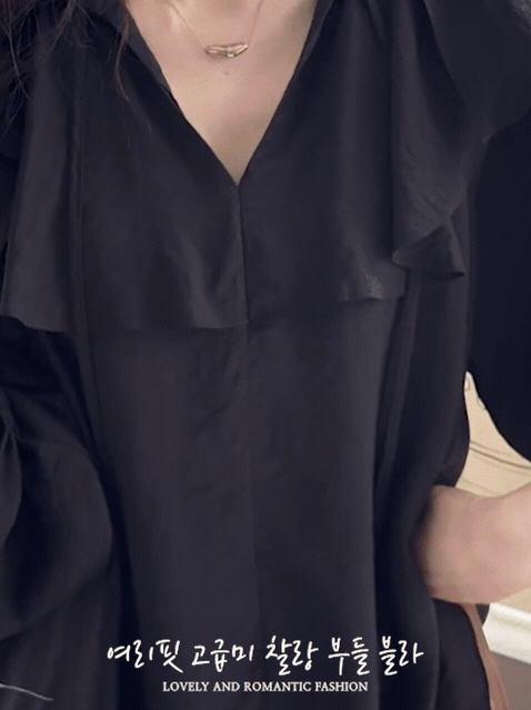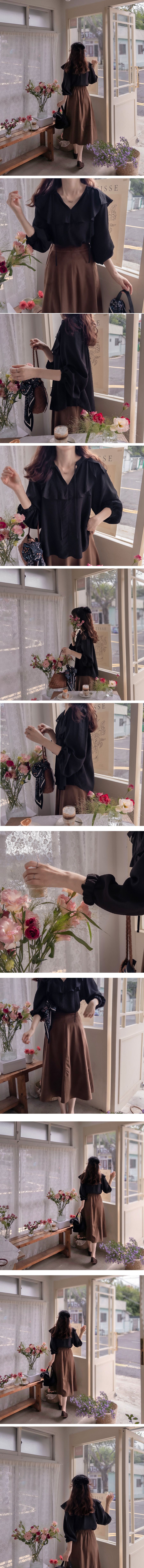 【C55601】韓國LEE 綁帶荷葉領襯衫-婚禮素面V領束口泡泡長袖上衣★★