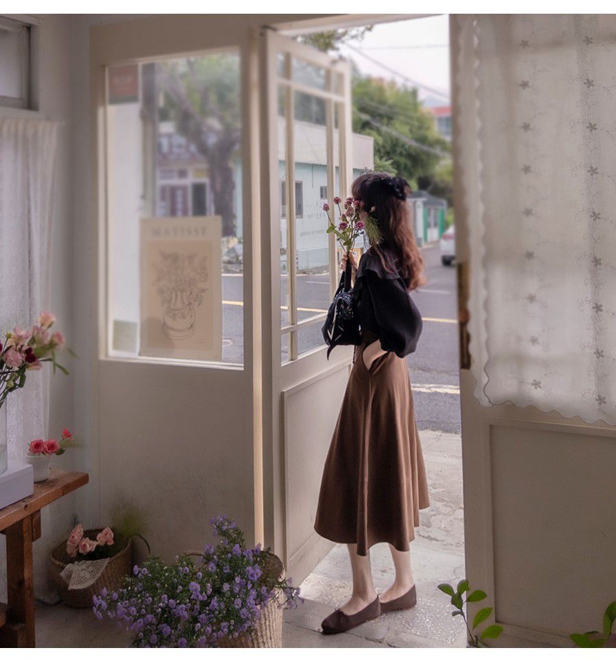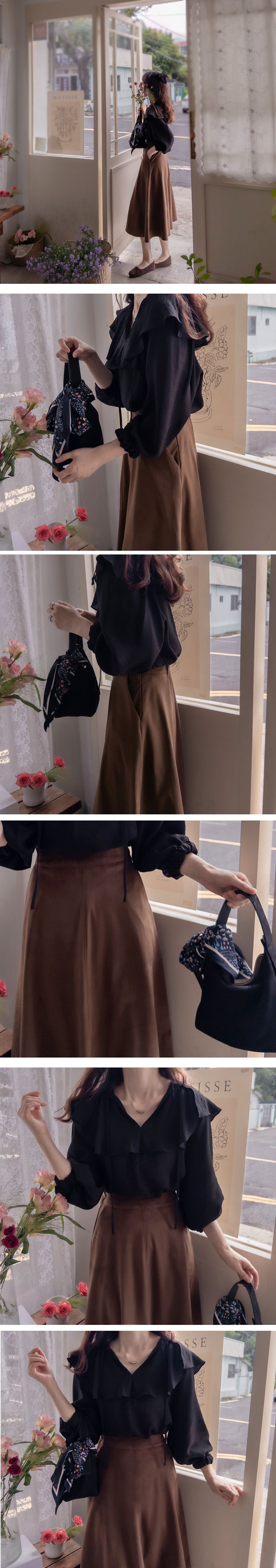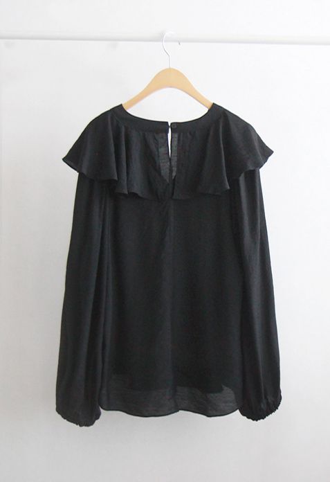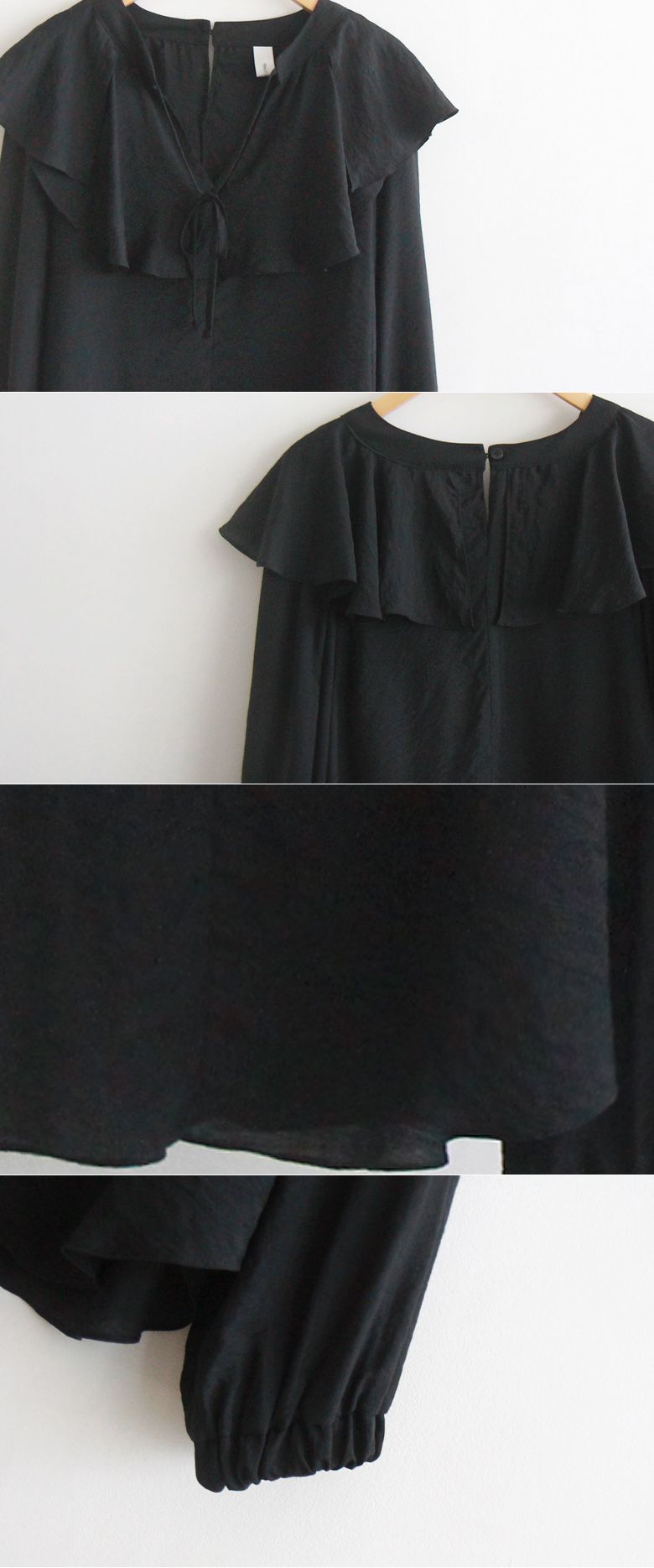 荷葉領/花瓣領/花邊領/綁帶V領/後領單釦/公主袖/寬袖/束口袖 - 休閒居家渡假婚禮OL上班族簡約百搭素面綁帶荷葉領襯衫上衣長袖上衣奶油色黑色