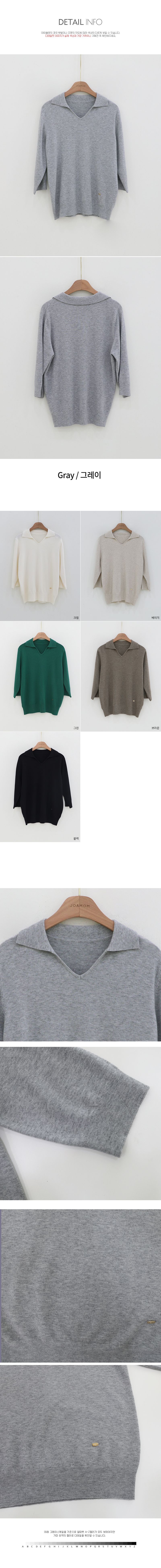 【C55606】韓國JAM 翻領針織衫-素面V領金屬LOGO標七分袖上衣