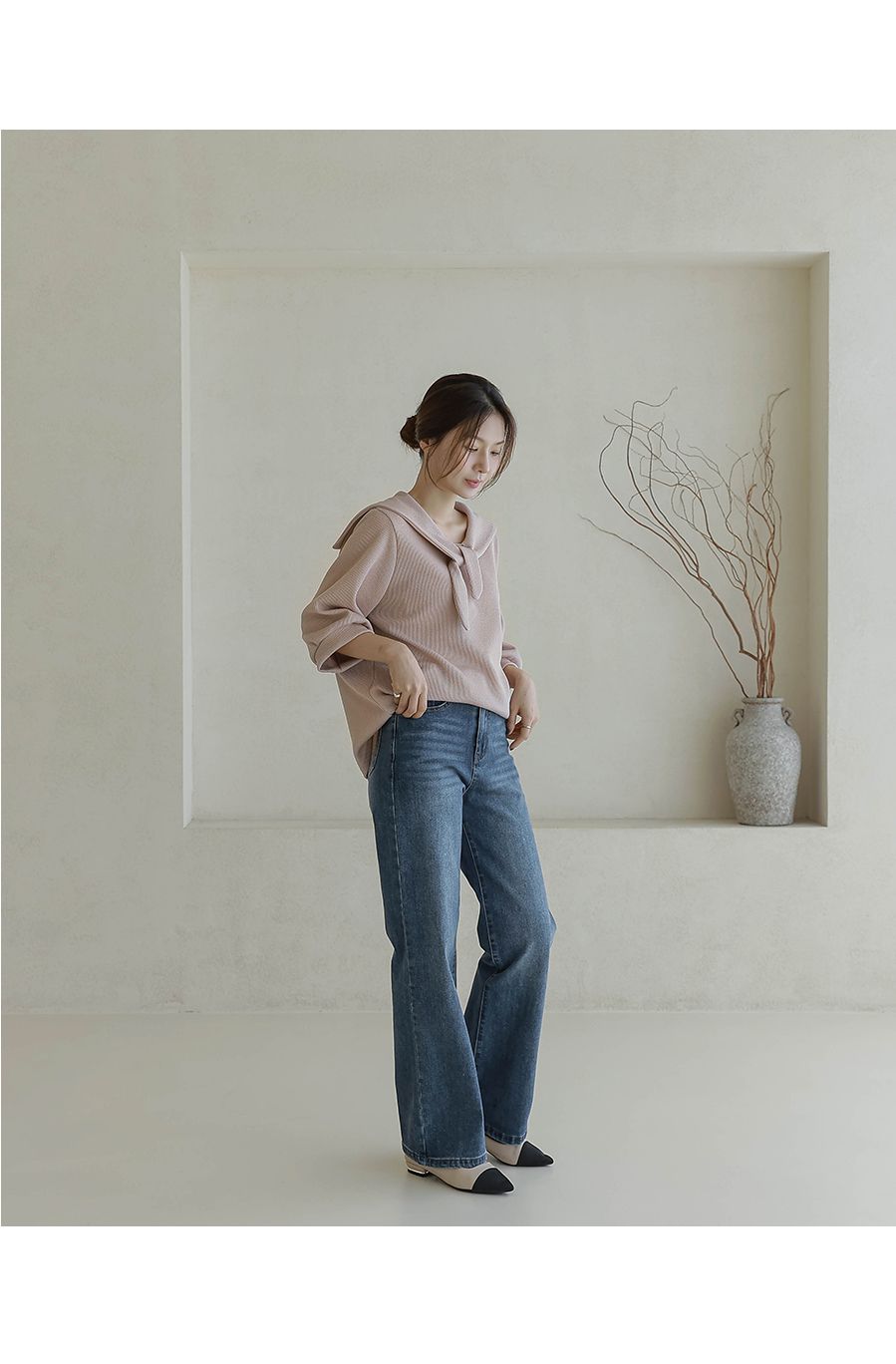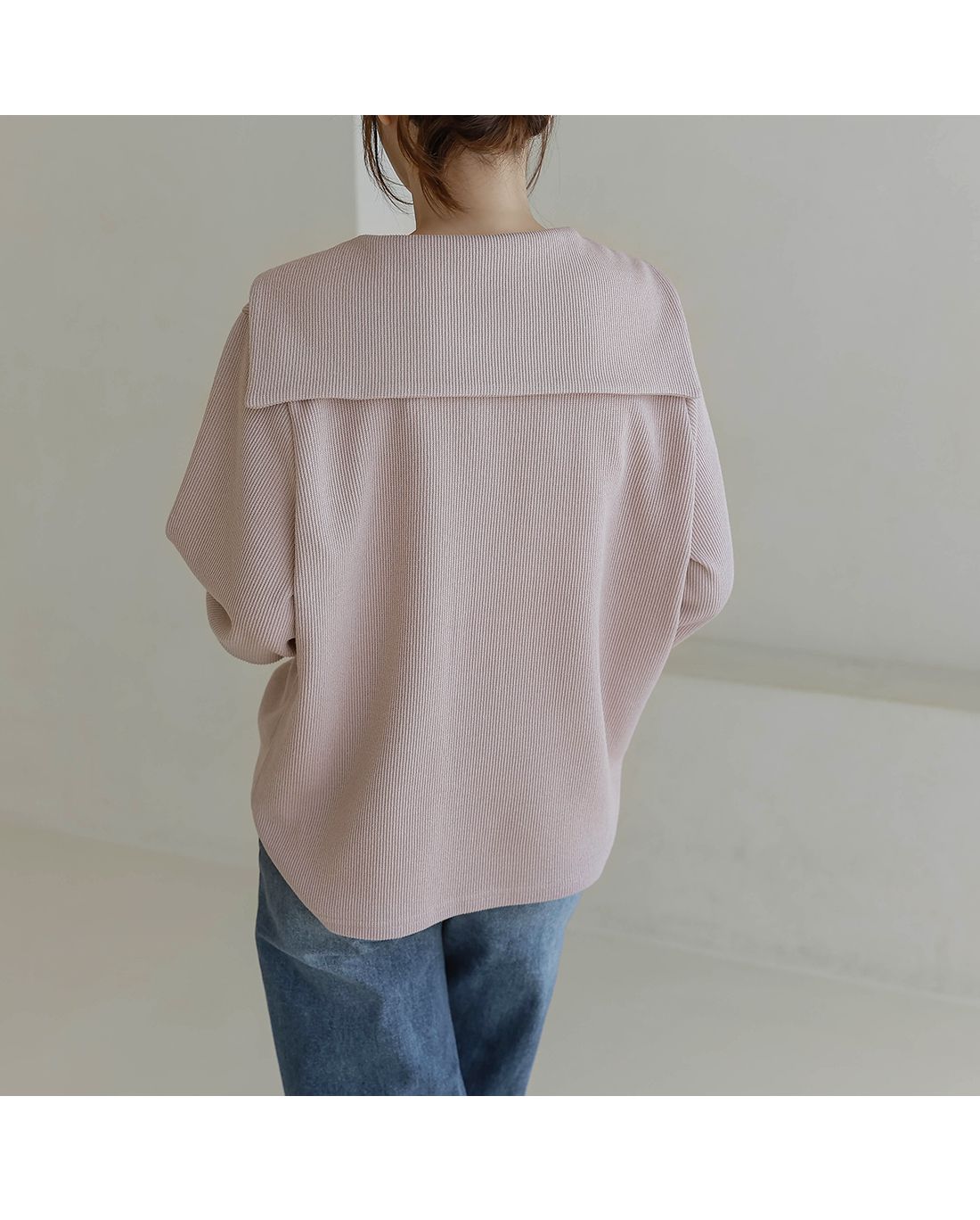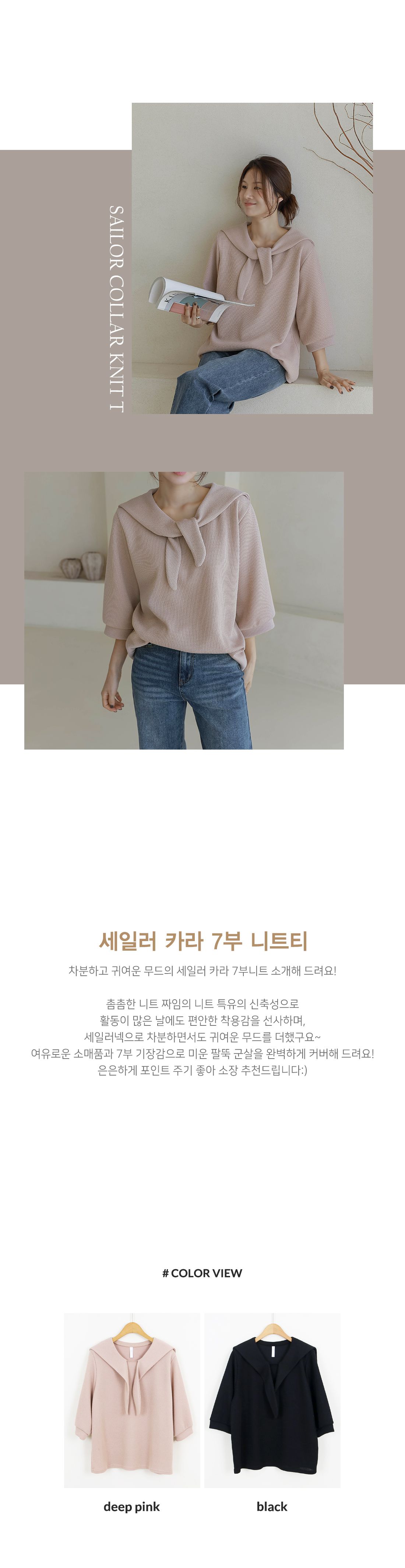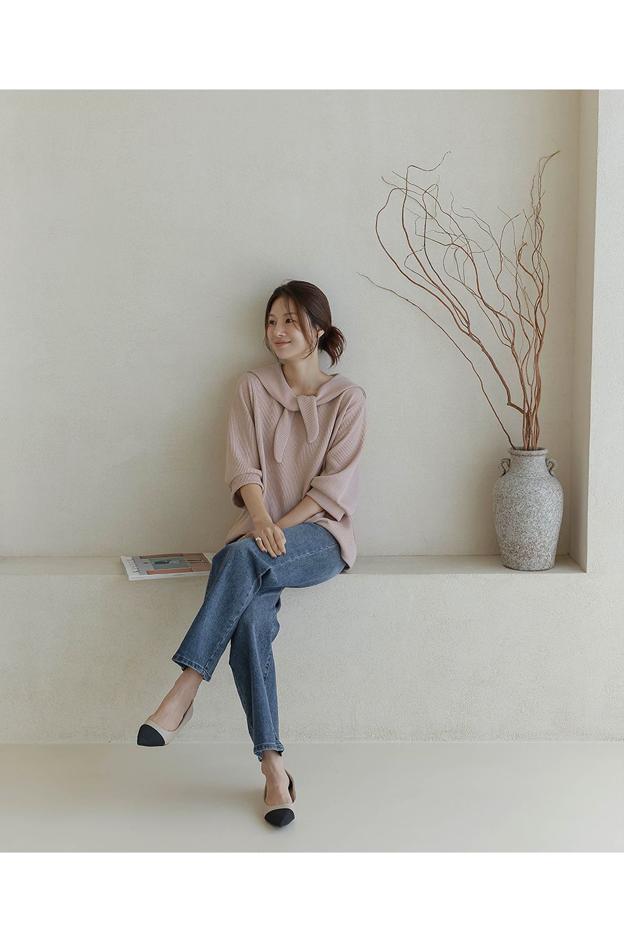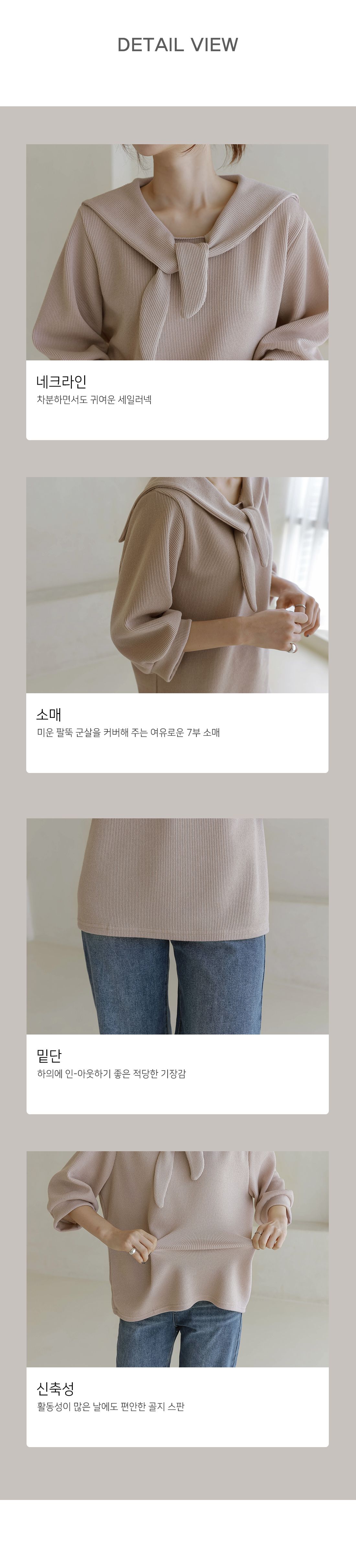 【C55608】韓國BLG 綁結水手領上衣-坑條素面好氣色V領七分袖寬袖★★