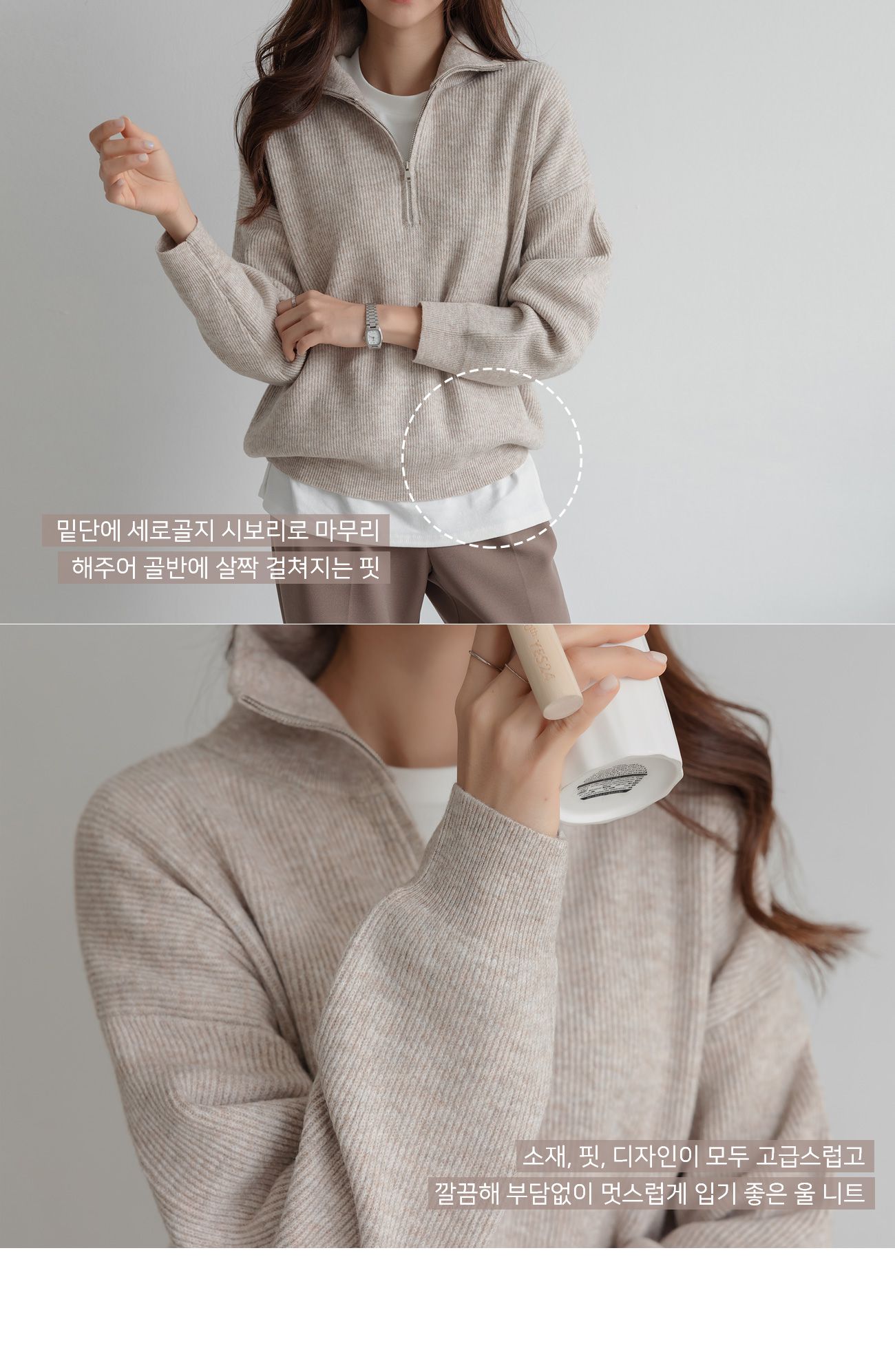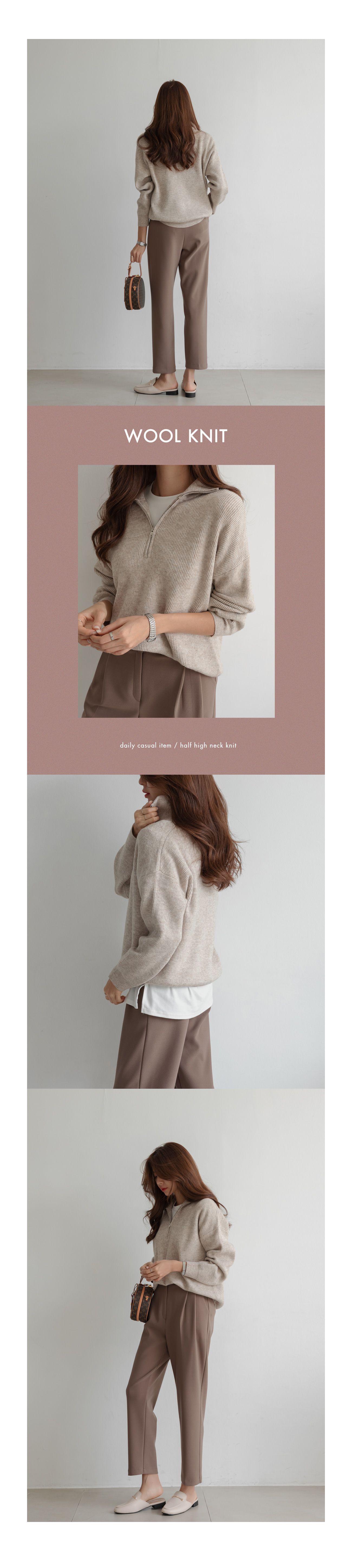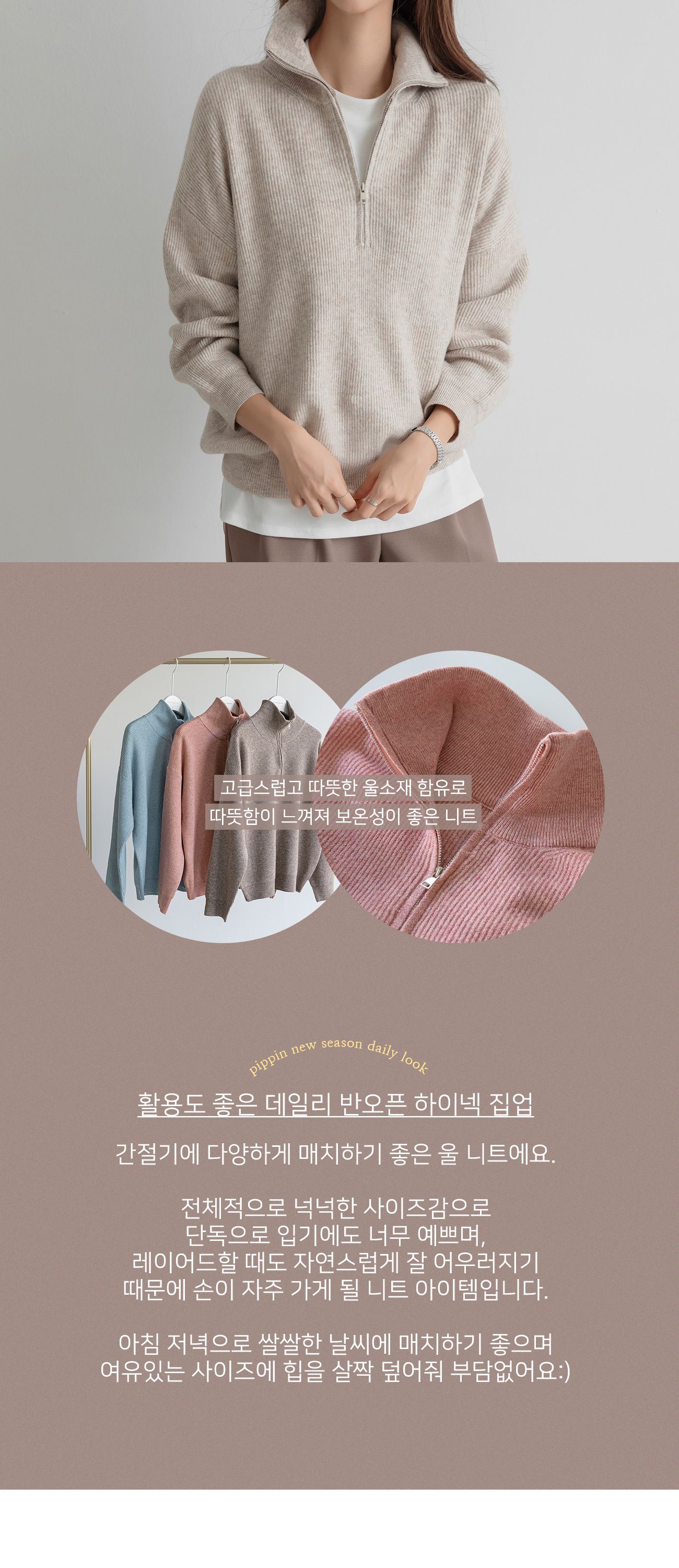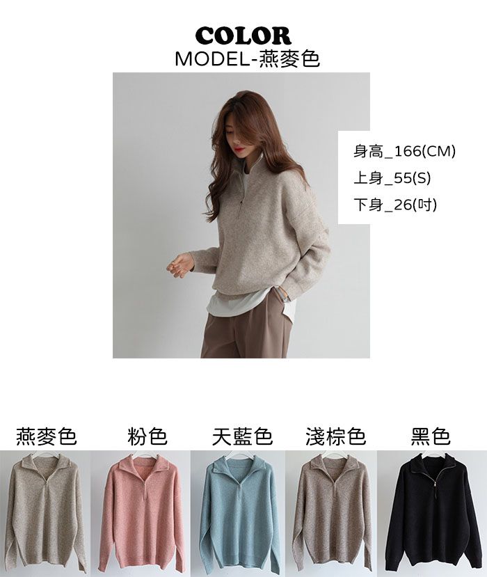 【C55611】韓國PPI 混羊毛高領上衣-素面壓紋半開襟拉鍊長袖針織衫★★