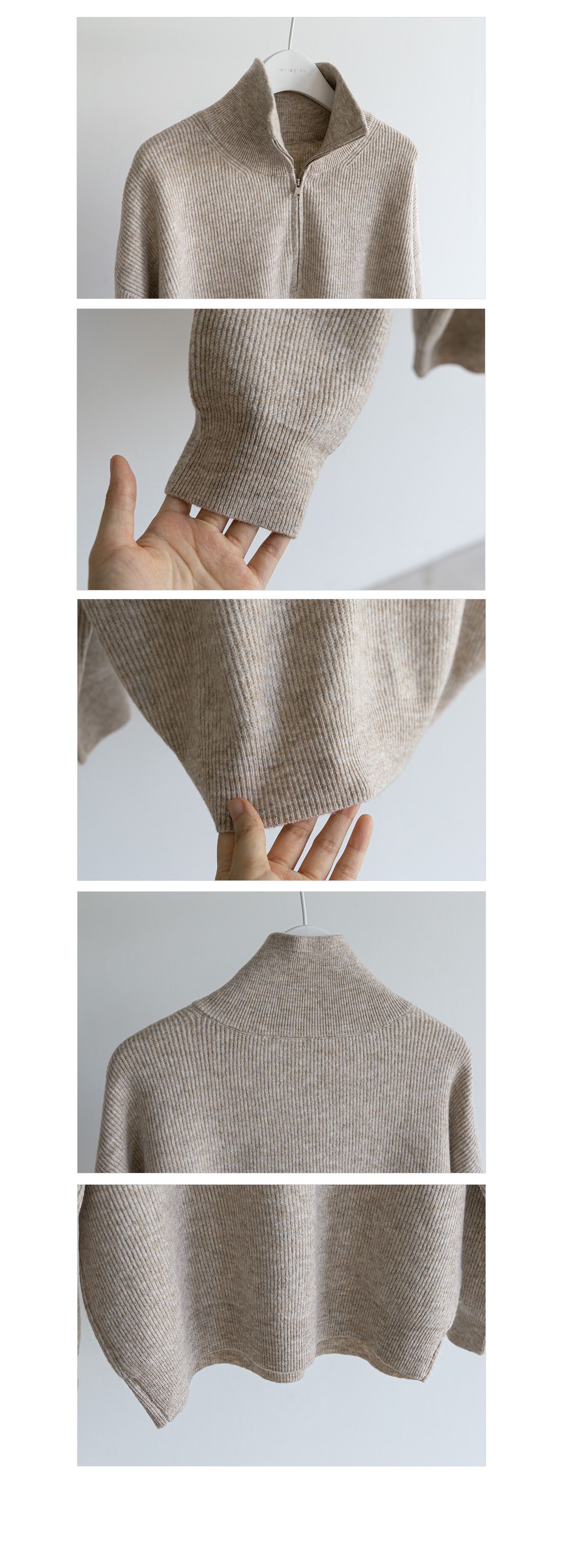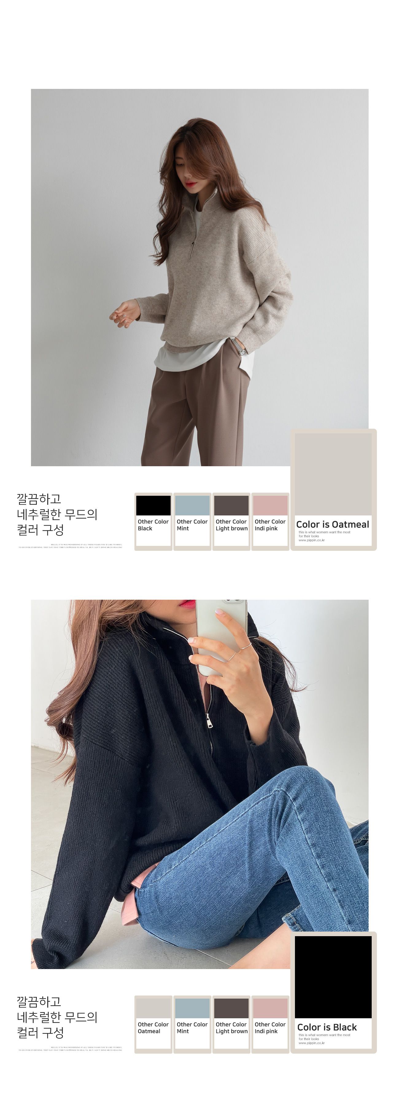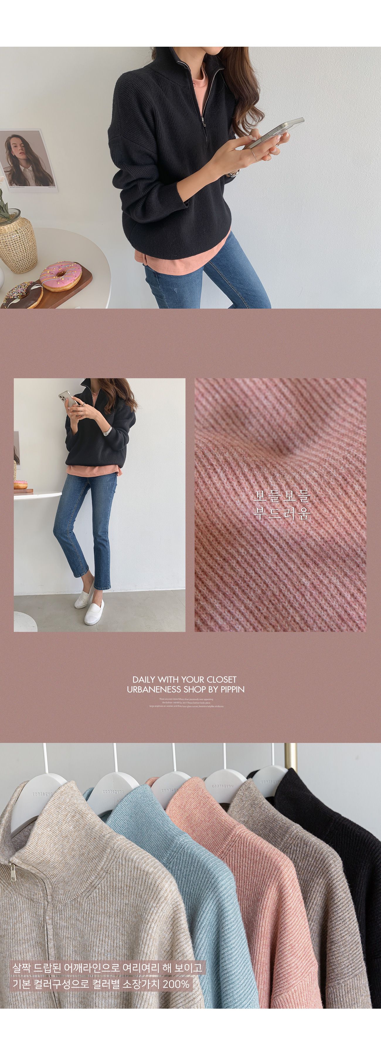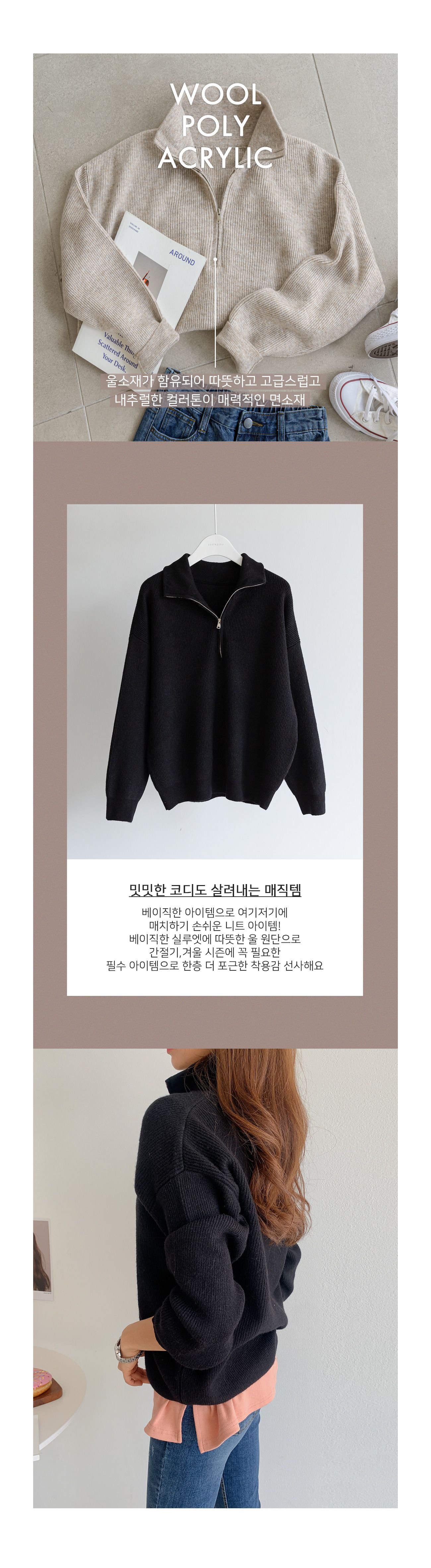 【C55611】韓國PPI 混羊毛高領上衣-素面壓紋半開襟拉鍊長袖針織衫★★