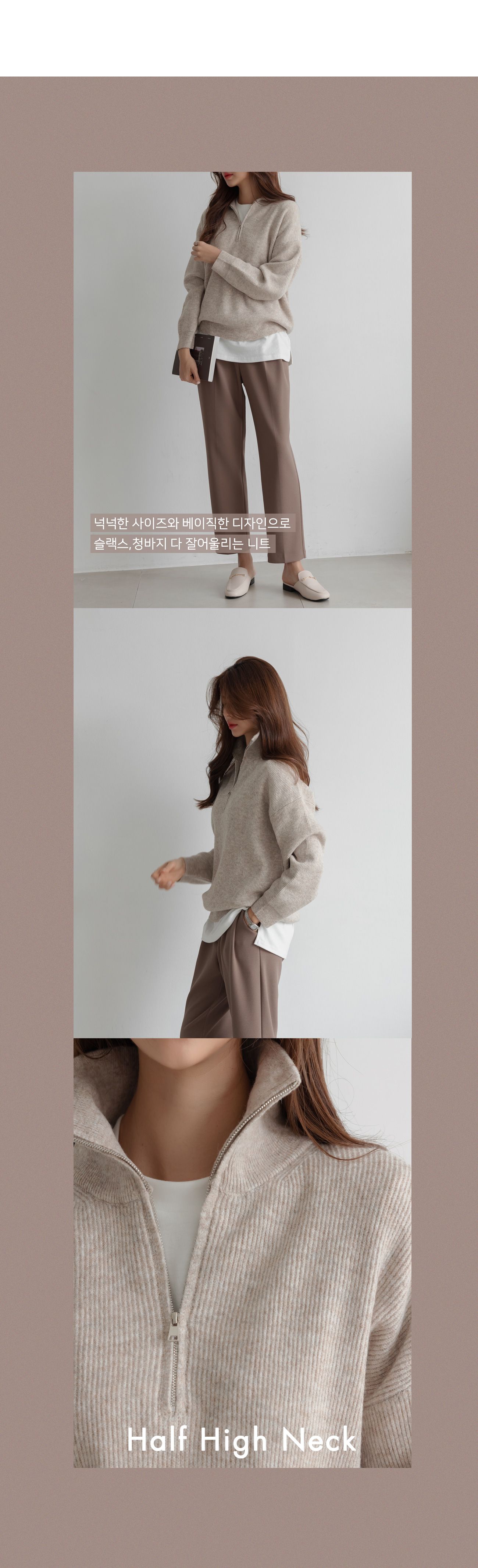 日常休閒針織/混羊毛更保暖/自由調節拉鍊高度-休閒居家簡約百搭混羊毛高領立領素面壓紋半開襟拉鍊長袖針織衫上衣燕麥色粉色天藍色淺棕色黑色