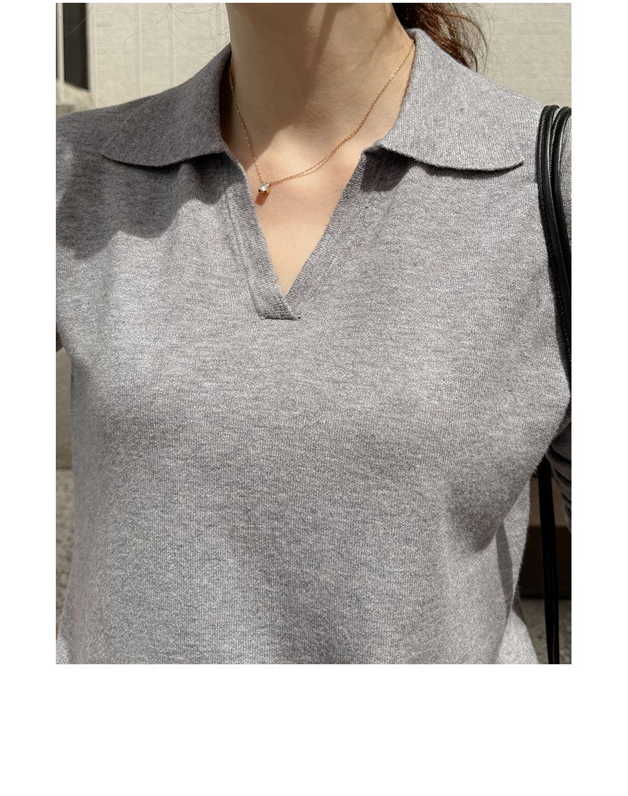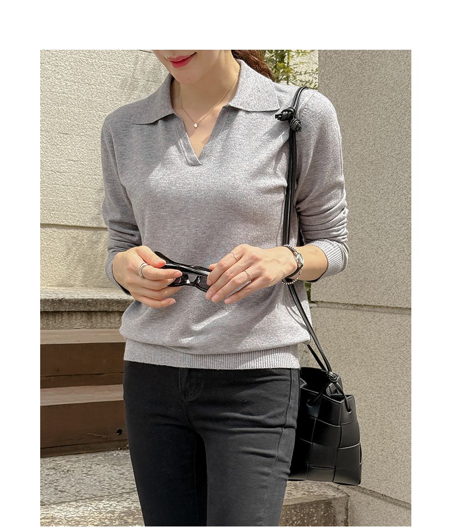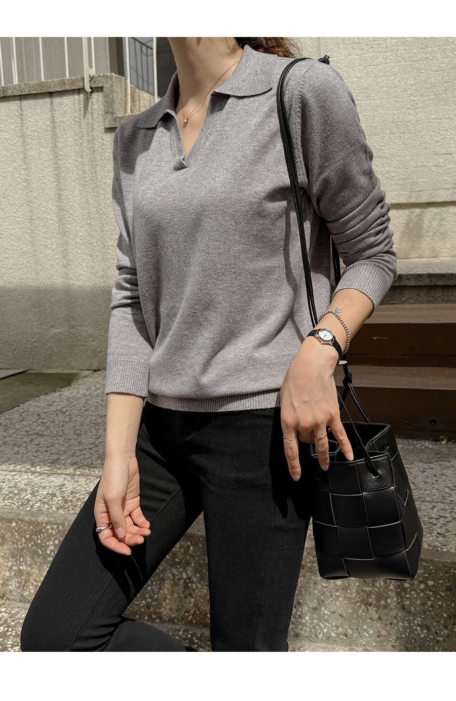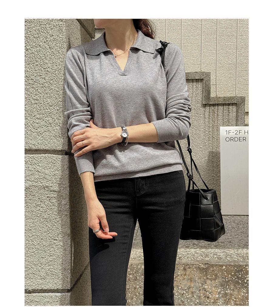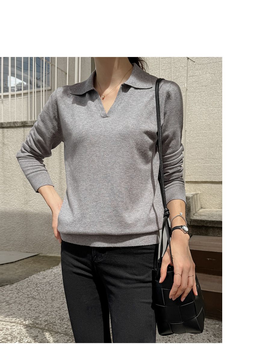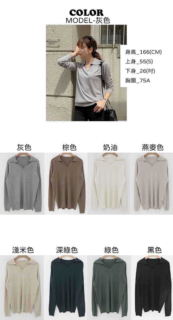 OL必備基本款/深V領修飾小臉蛋/混羊絨更柔軟-休閒居家簡約百搭素面深V領混羊絨OL翻領內搭柔軟長袖針織衫上衣灰色棕色奶油色燕麥色淺米色深綠色綠色黑色