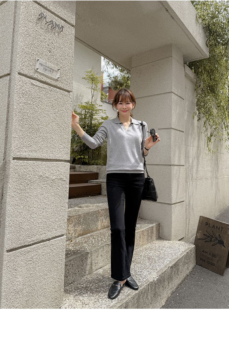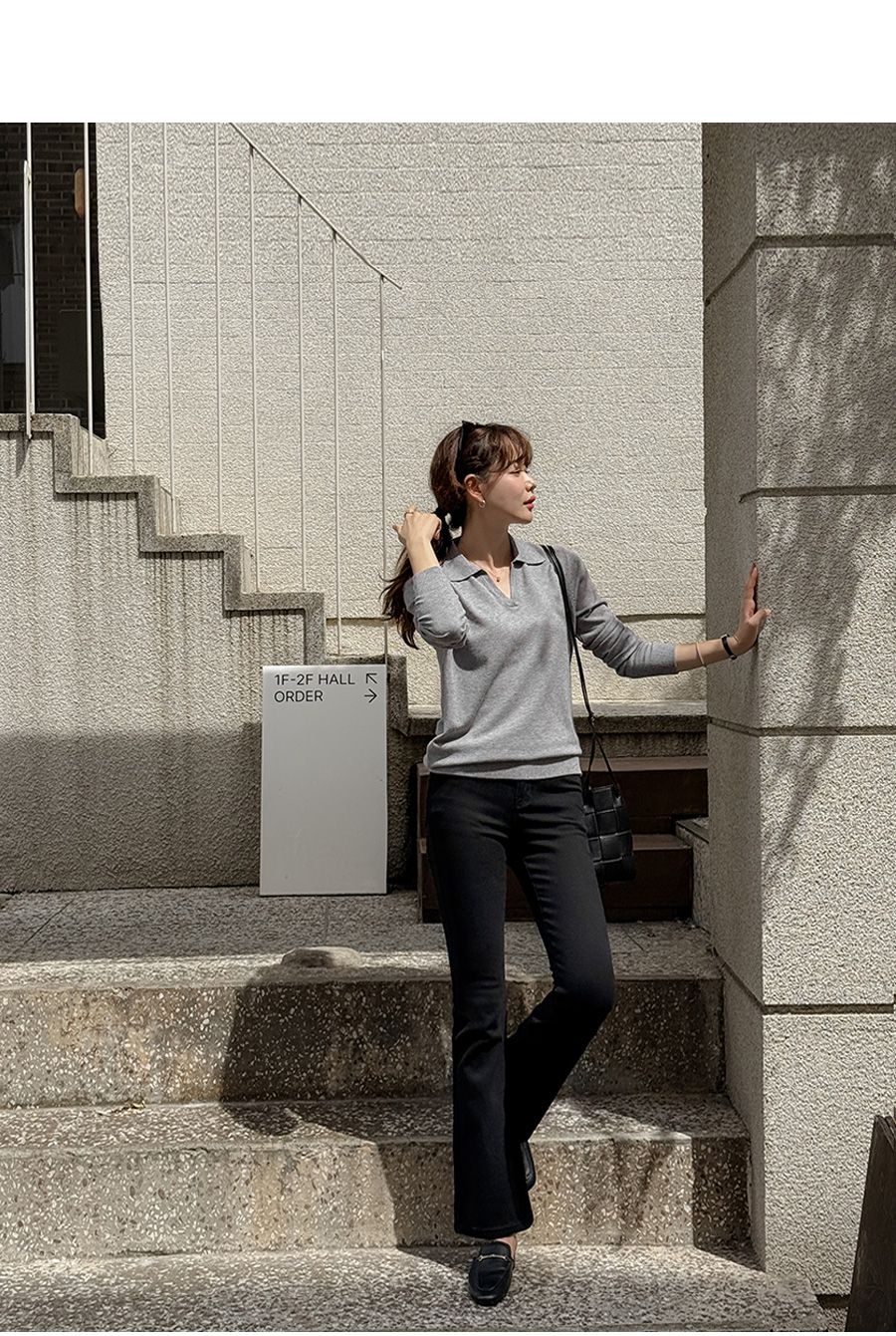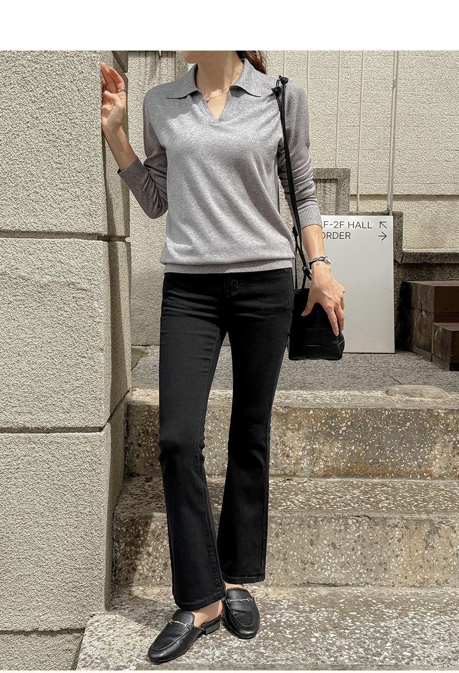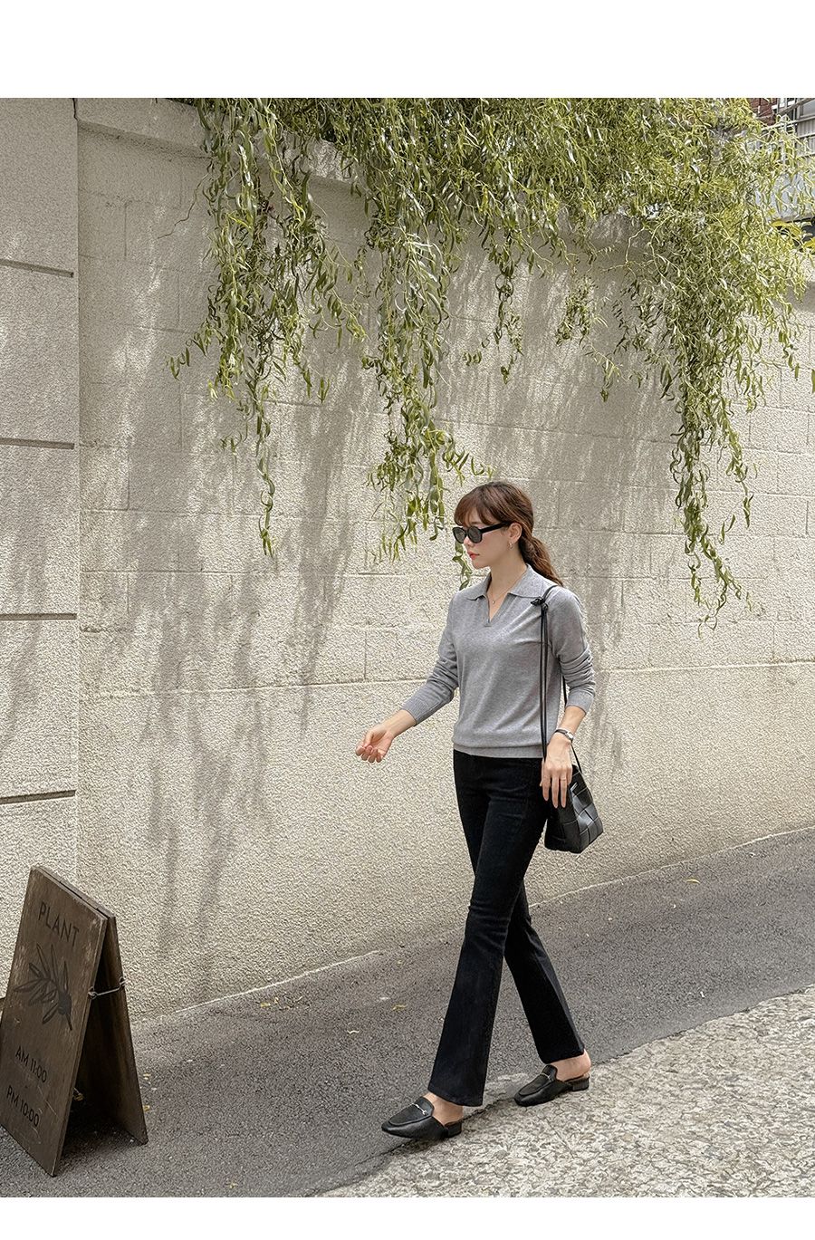【C55618】韓國JOA 素面深V領上衣-混羊絨OL翻領內搭長袖針織衫