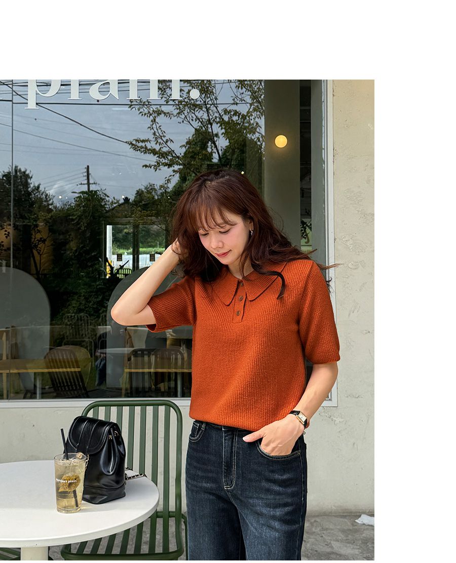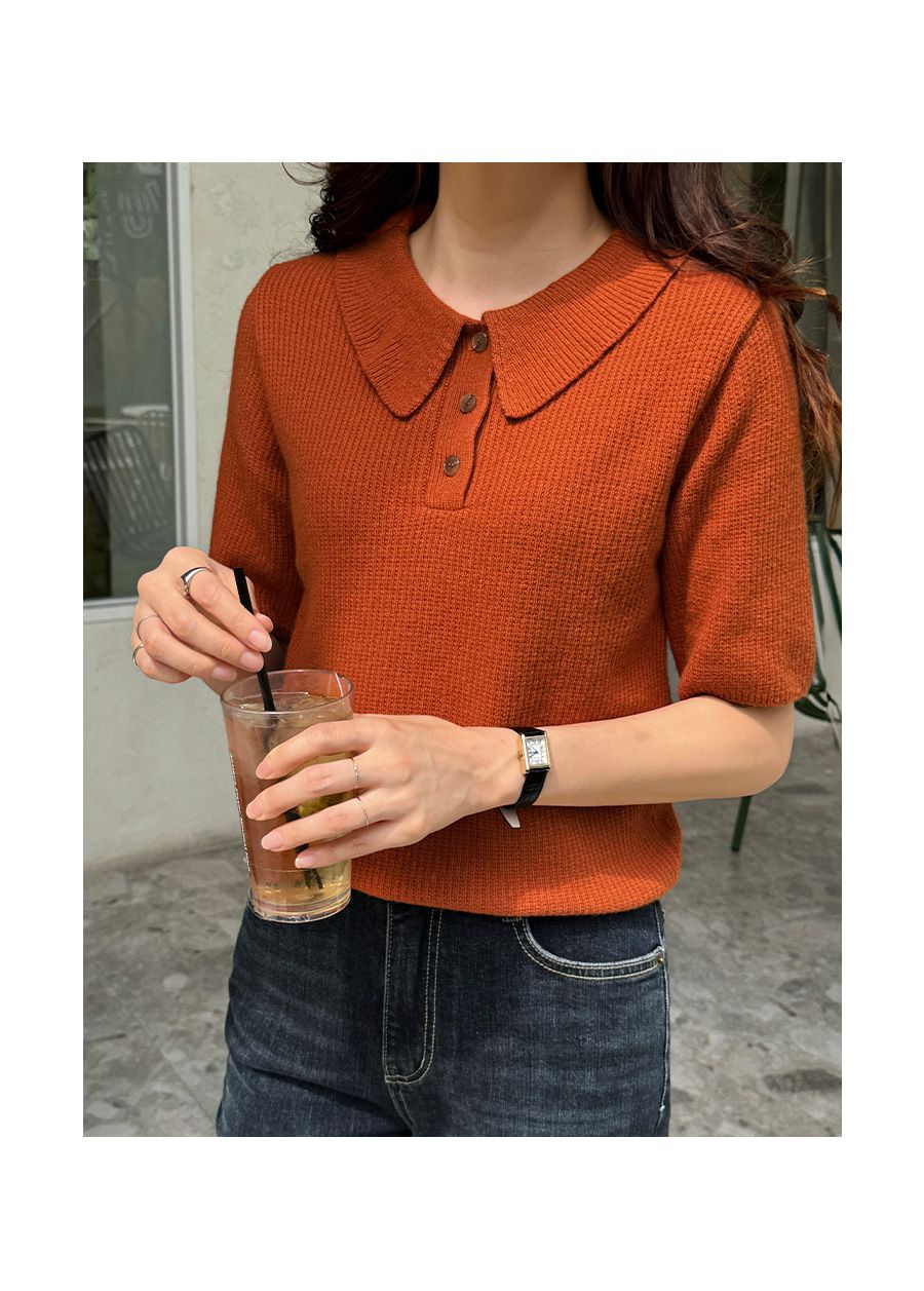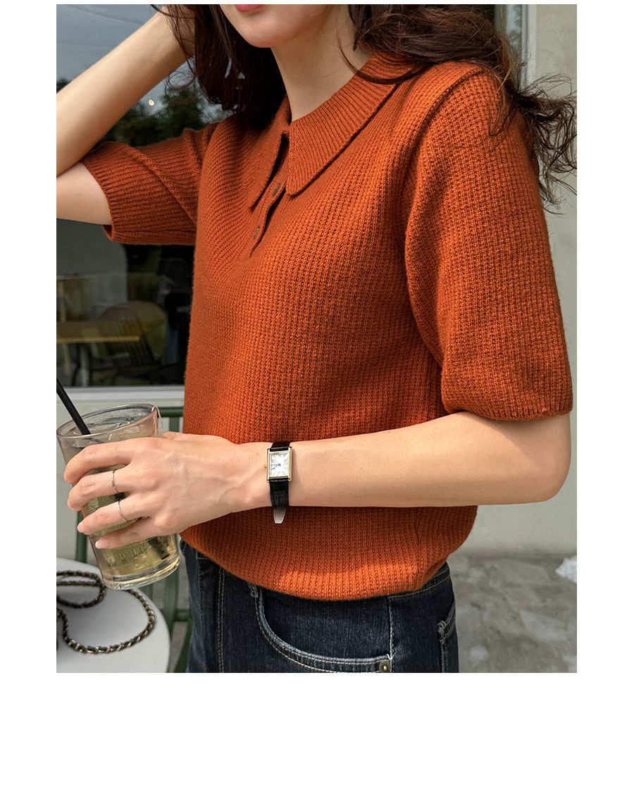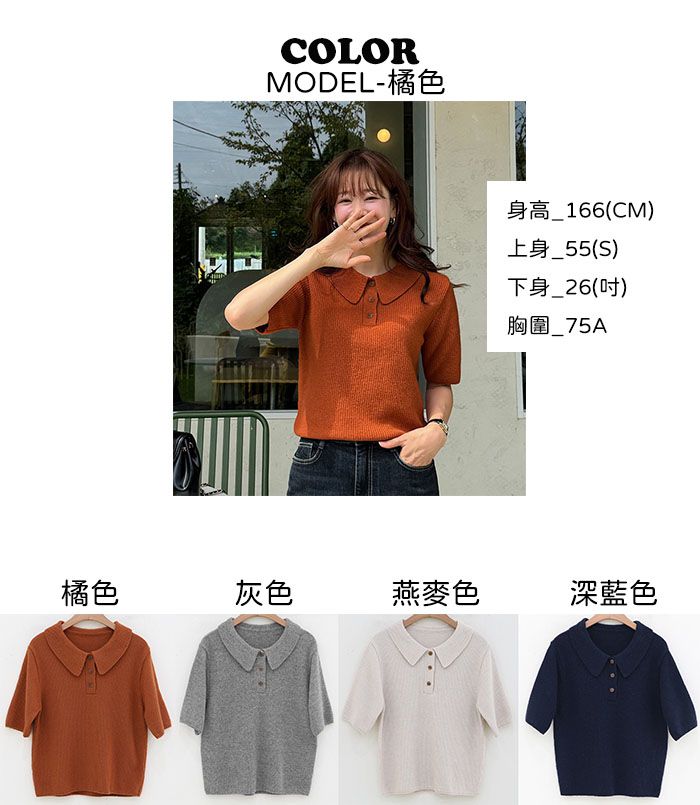 蓬鬆針織設計可愛感加倍/秋冬日常穿搭/OL必備單品-休閒居家簡約百搭半開襟素面跳色排釦混羊毛OL五分袖上衣針織衫橘色灰色燕麥色深藍色