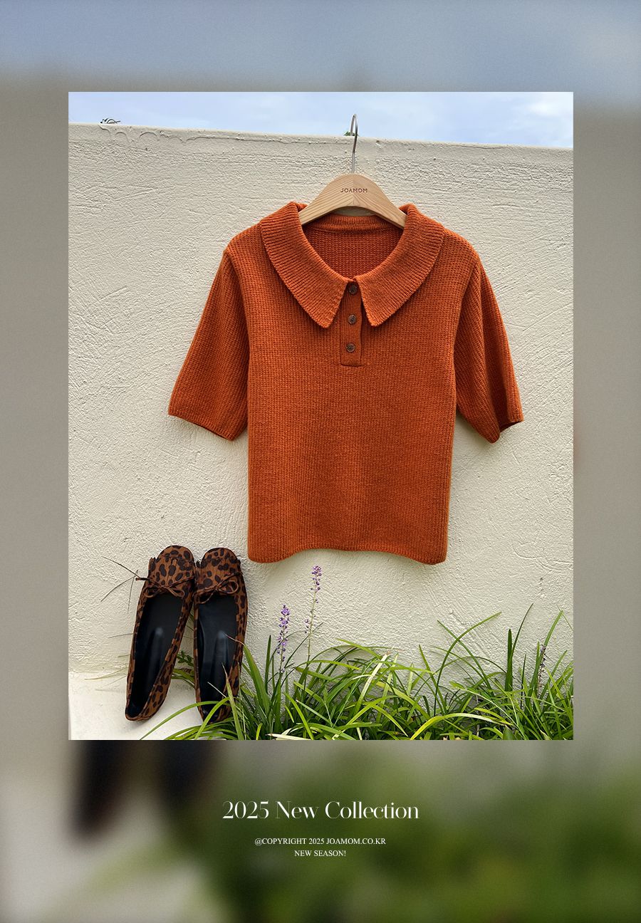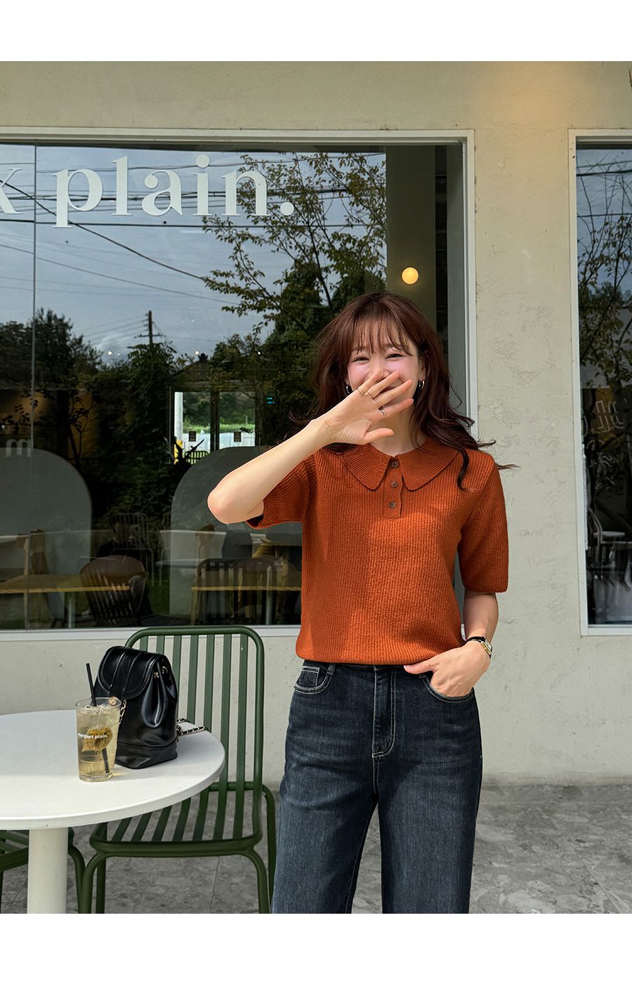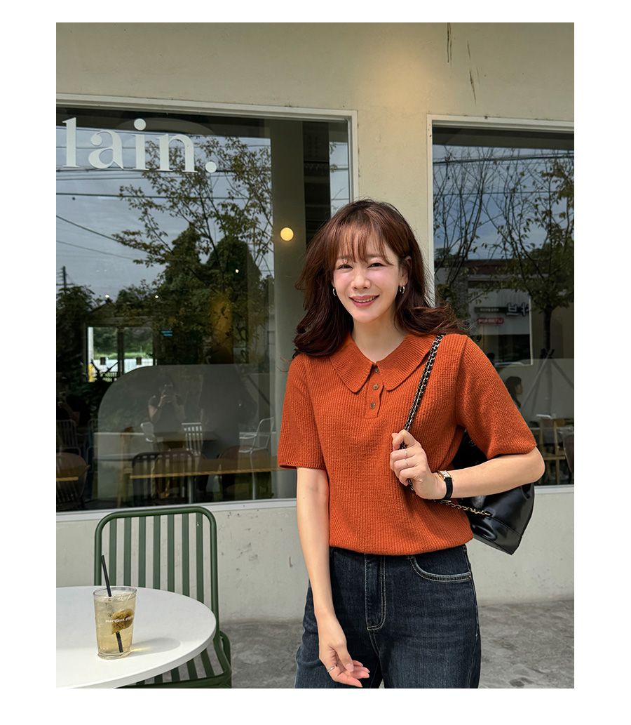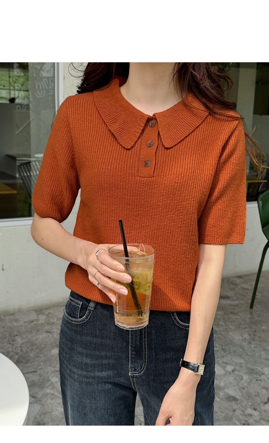 蓬鬆針織設計可愛感加倍/秋冬日常穿搭/OL必備單品-休閒居家簡約百搭半開襟素面跳色排釦混羊毛OL五分袖上衣針織衫橘色灰色燕麥色深藍色