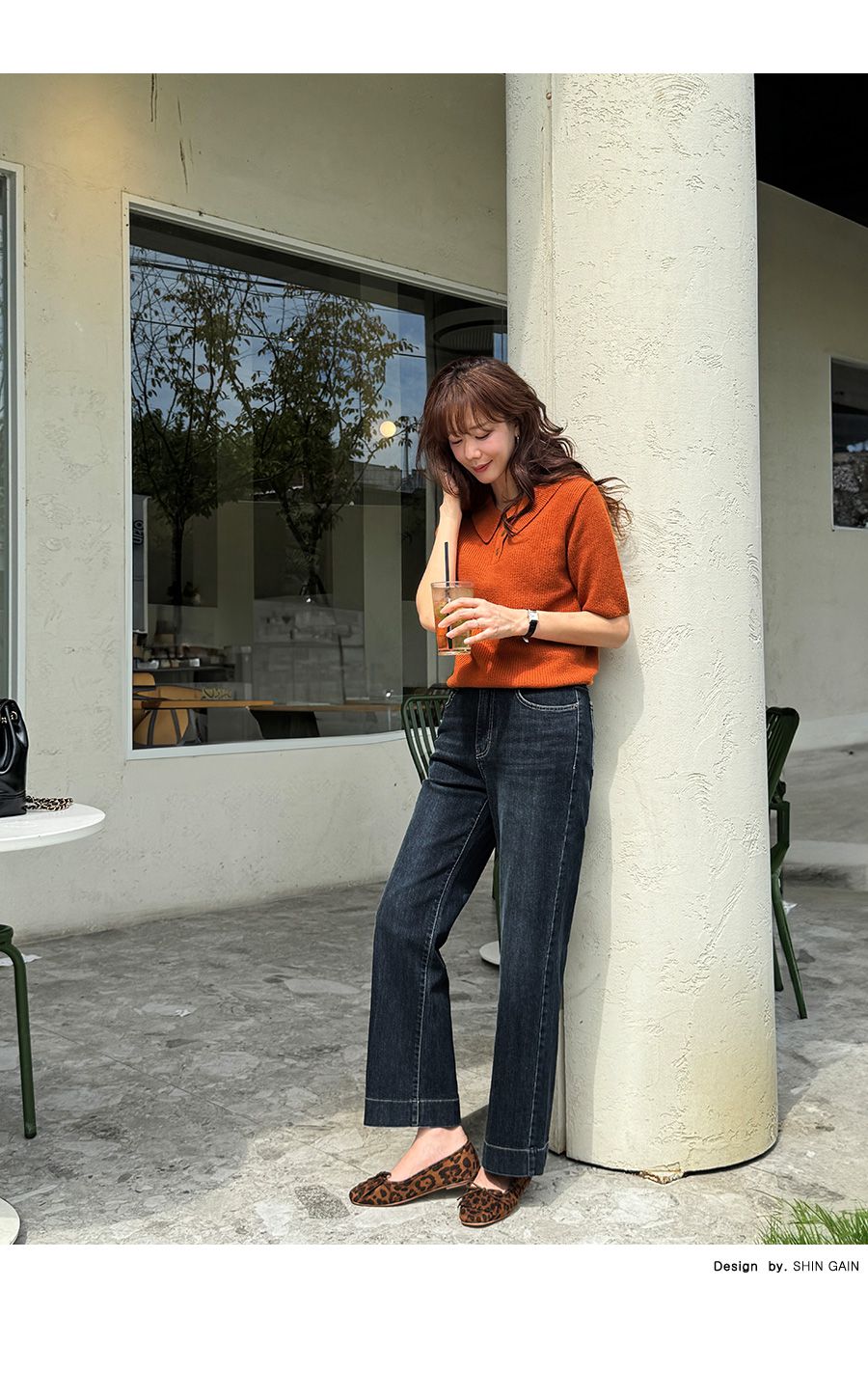 【C55619】韓國JOA 半開襟針織衫-素面好氣色混羊毛OL五分袖上衣★★