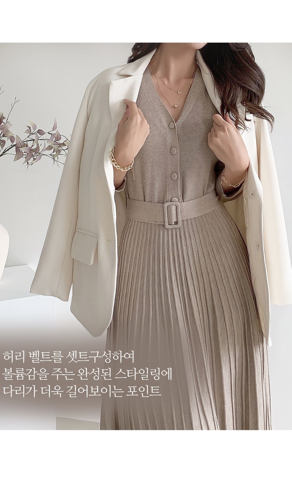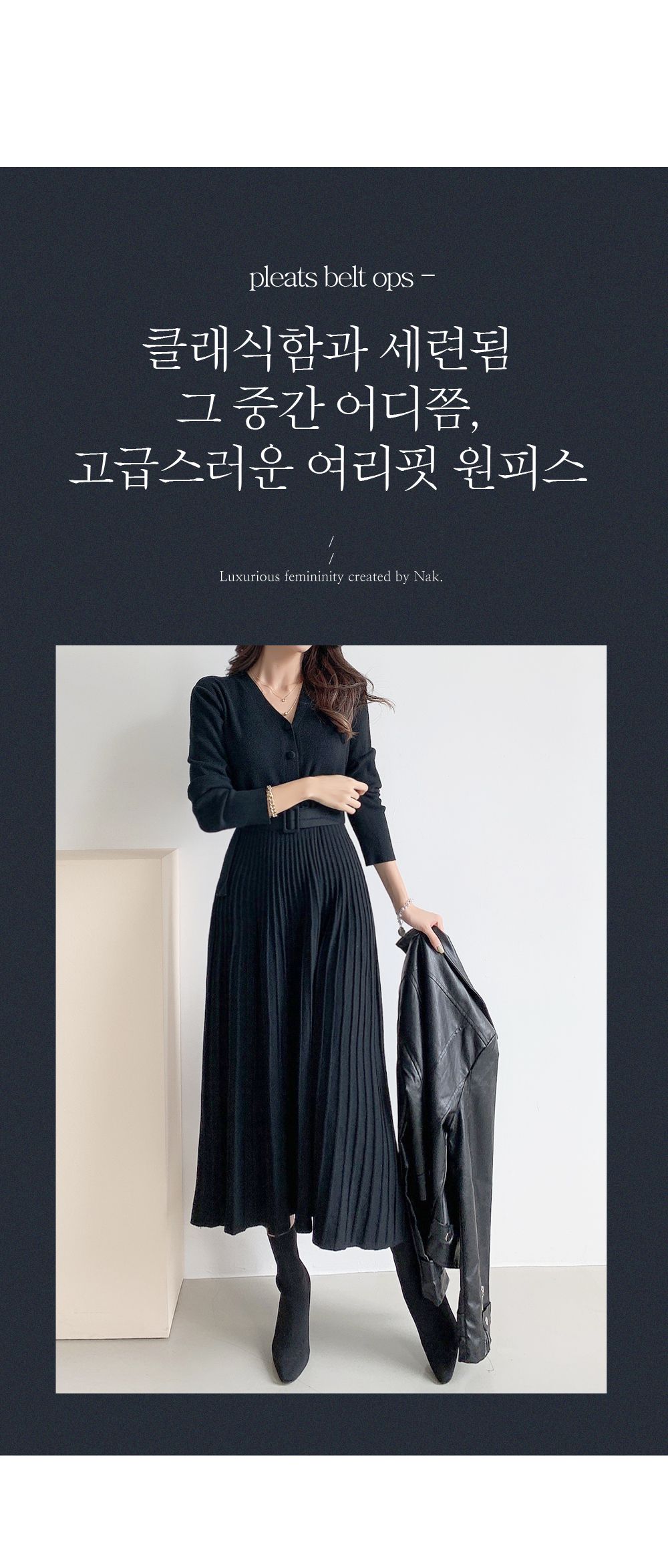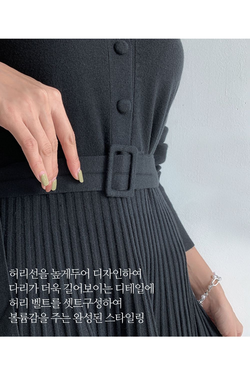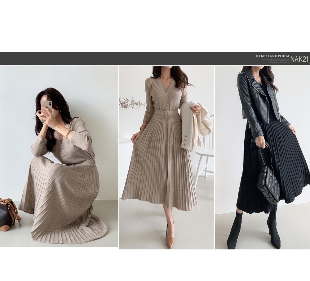 【C55621】韓國NK2 針織V領洋裝-半開襟立體坑條素面皮帶長袖連身裙★★