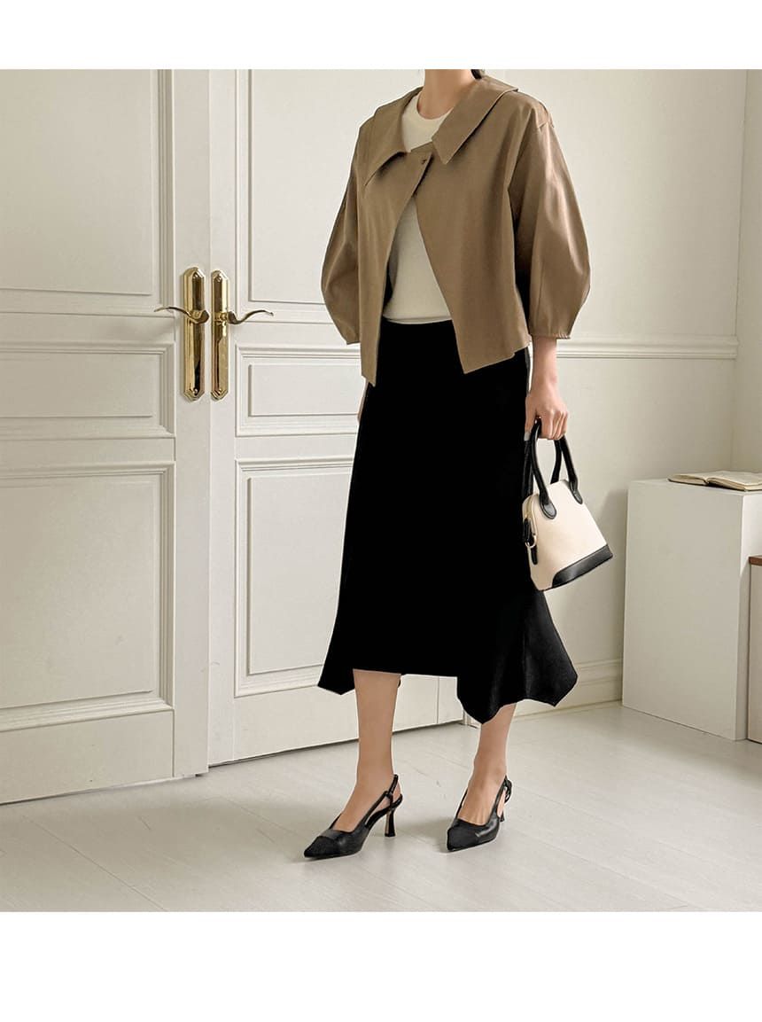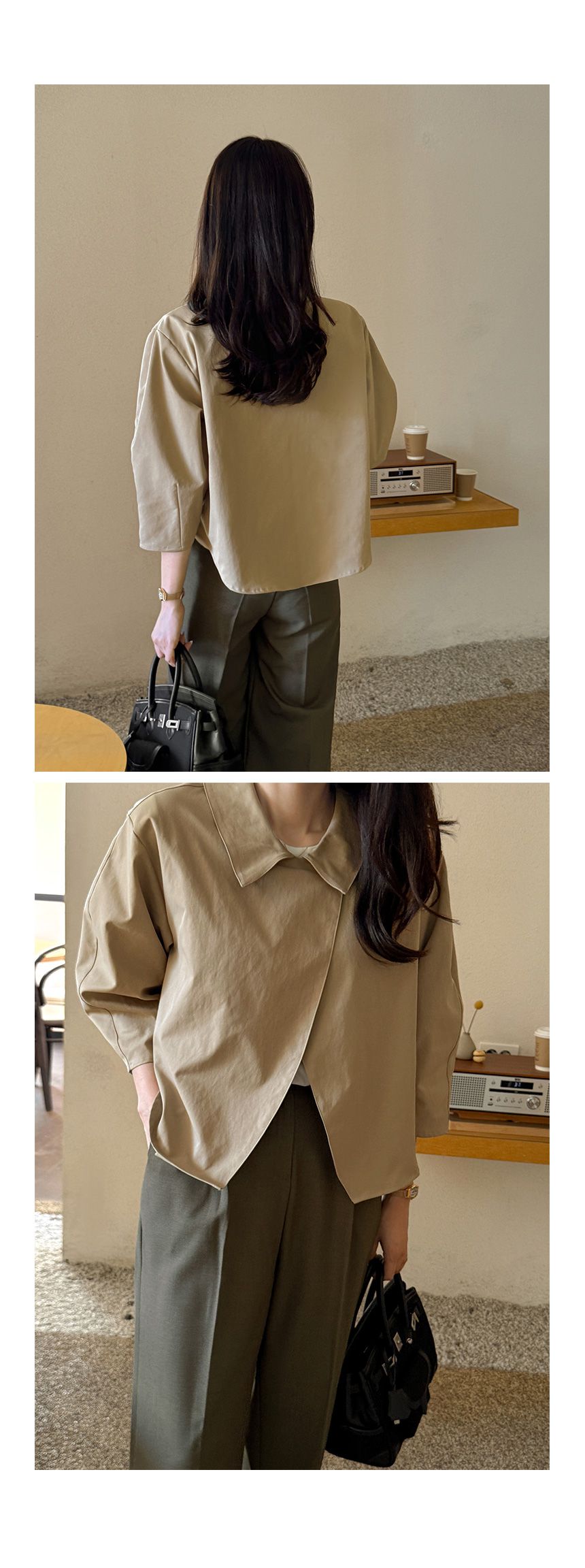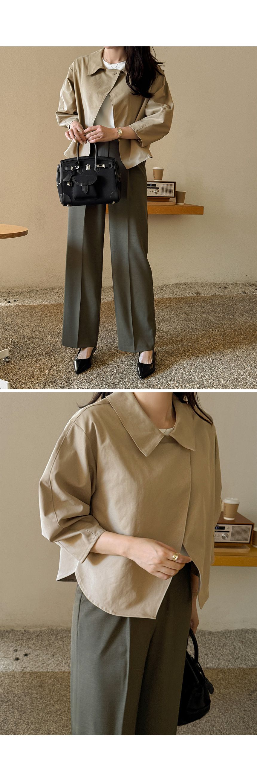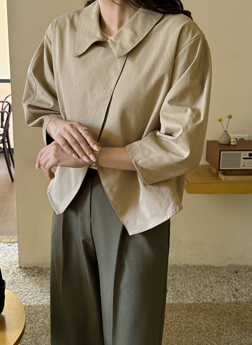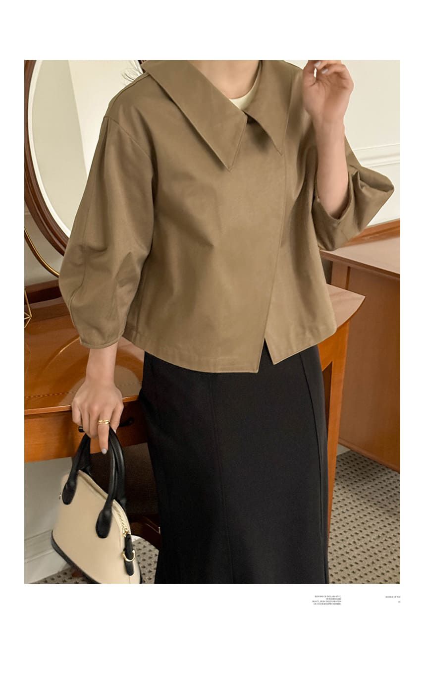 【C55624】韓國MAZ 不規則開襟風衣-單釦素面七分燈籠袖OL斗篷外套