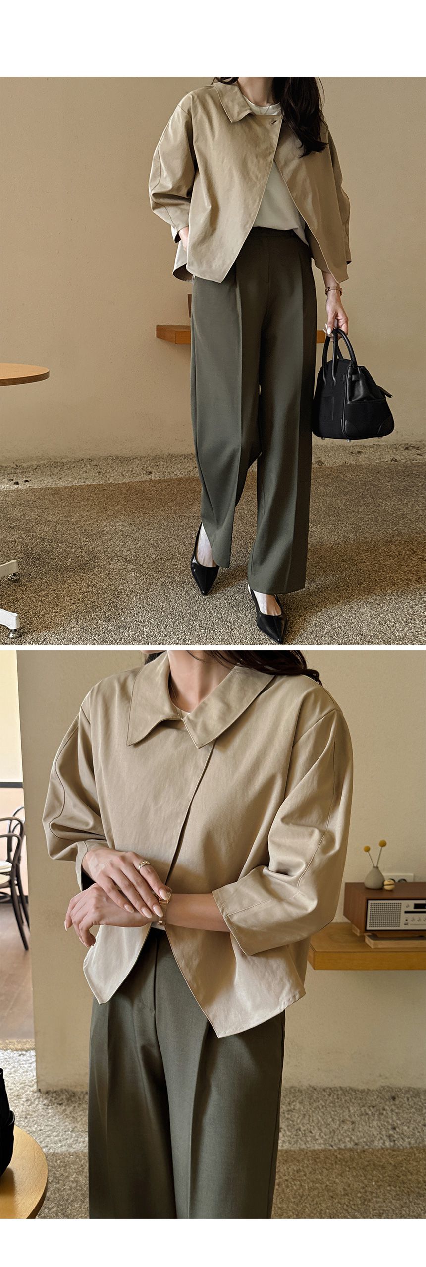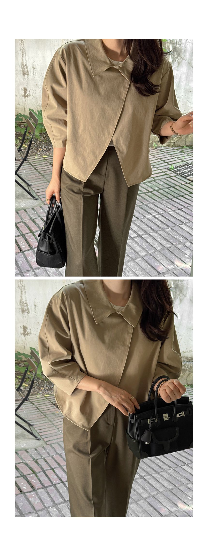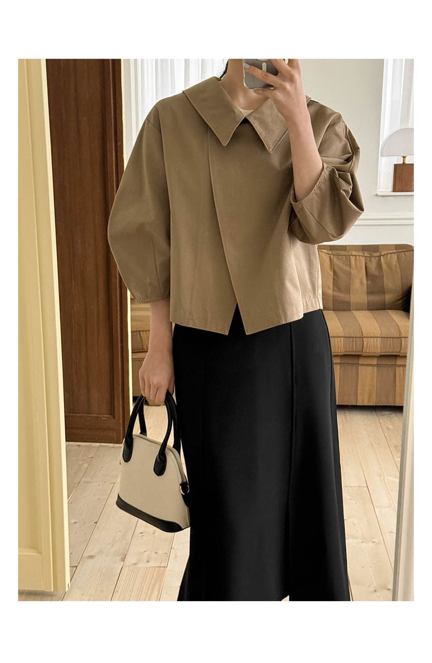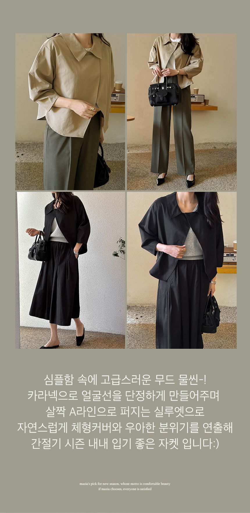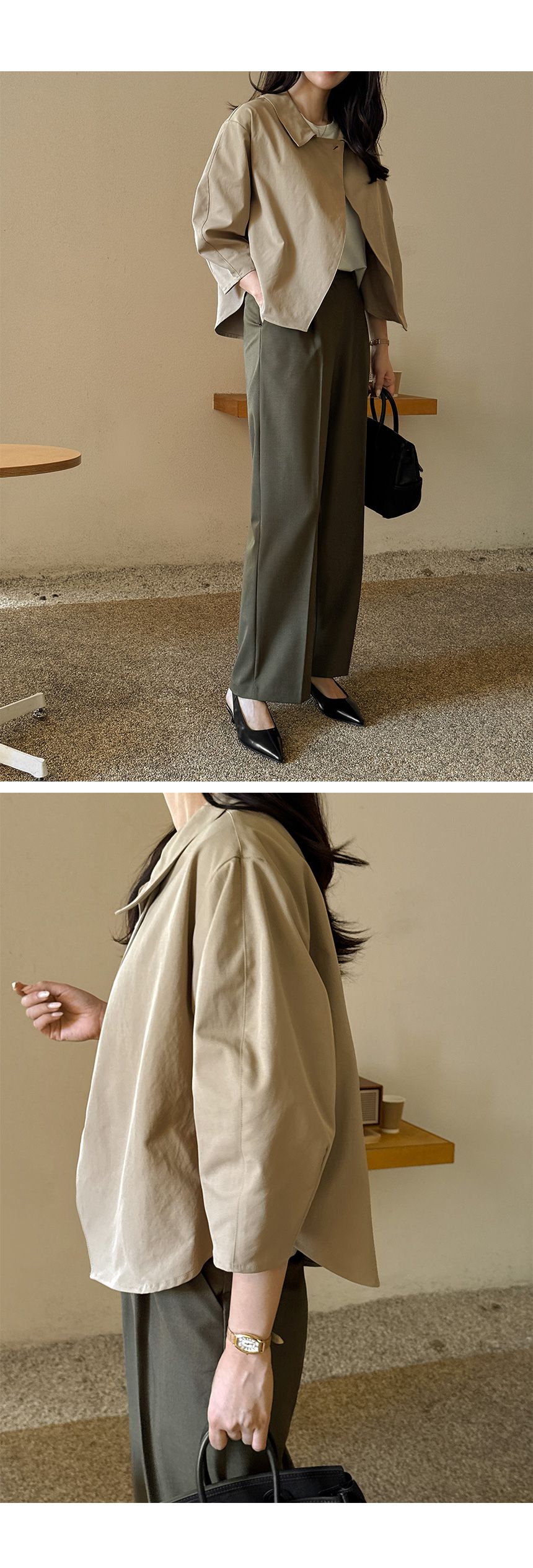【C55624】韓國MAZ 不規則開襟風衣-單釦素面七分燈籠袖OL斗篷外套