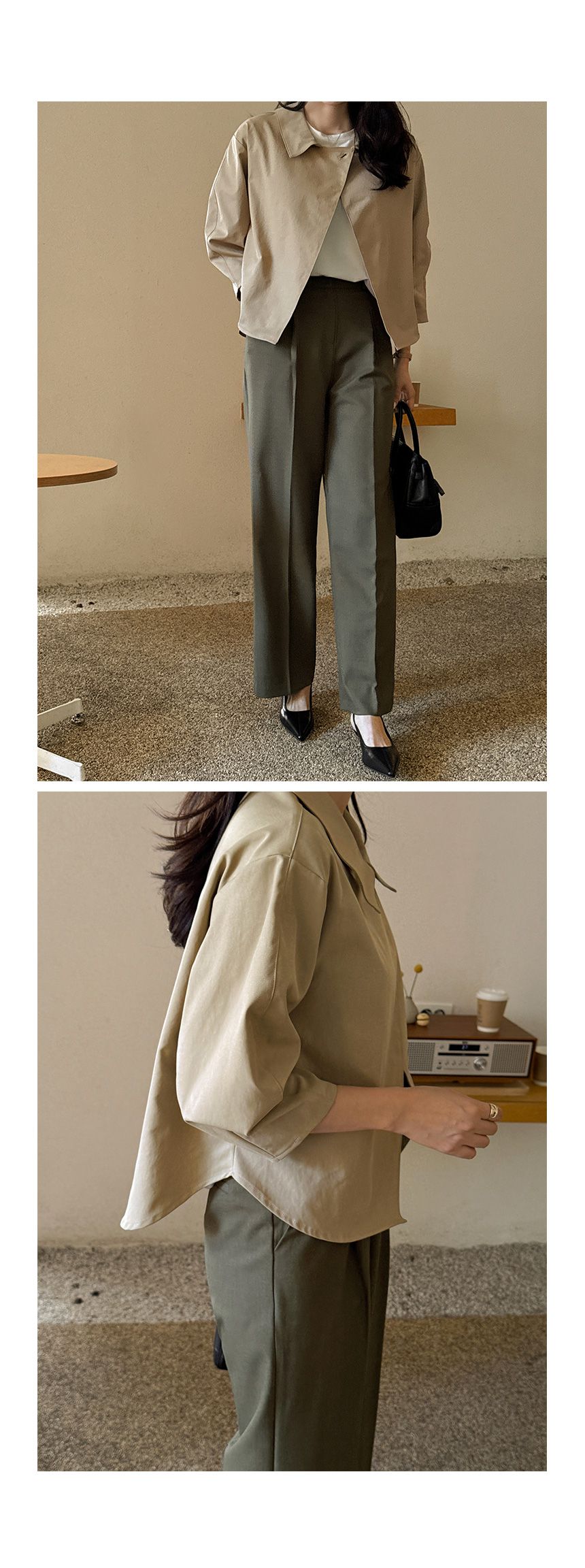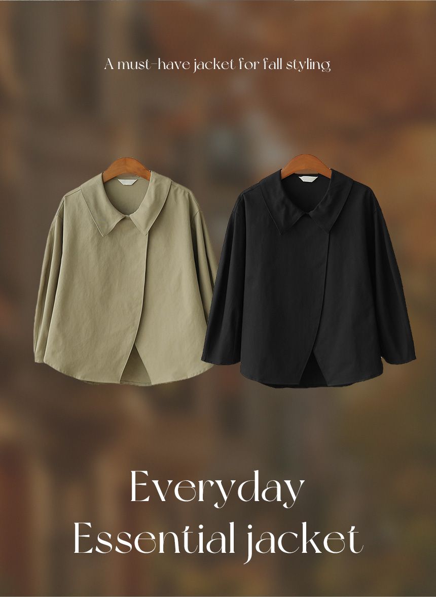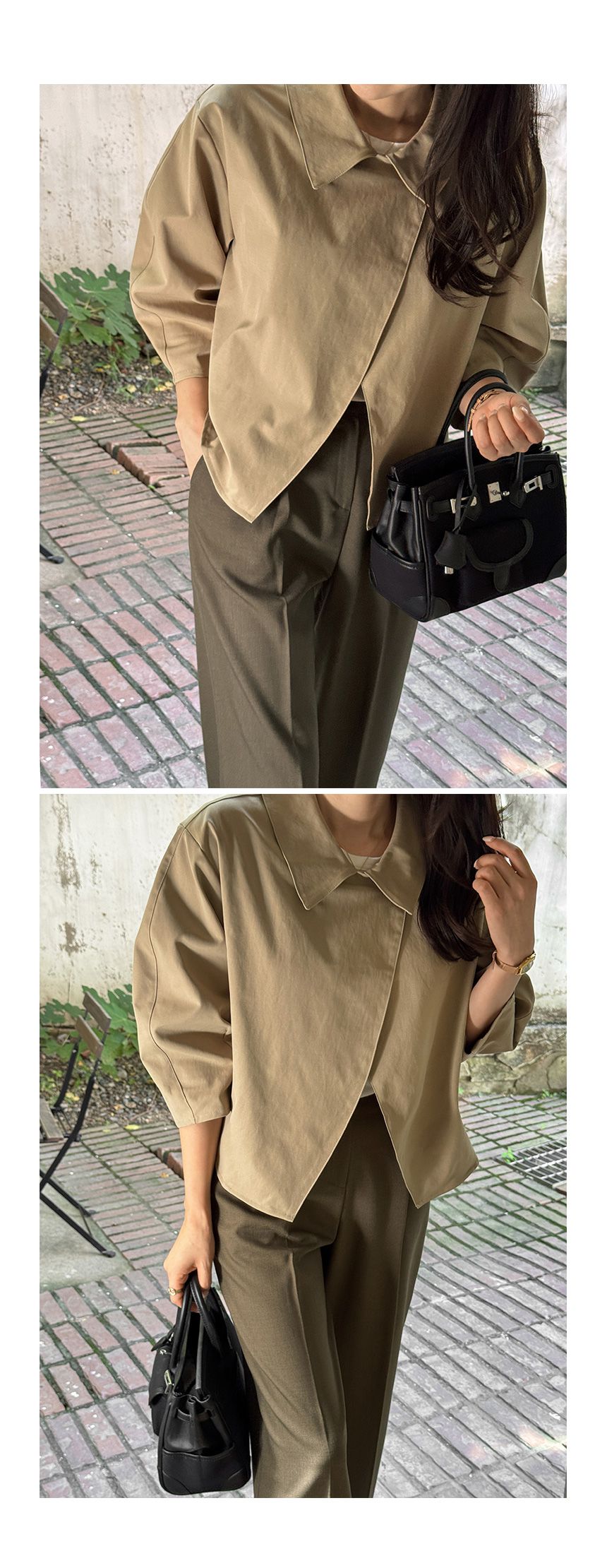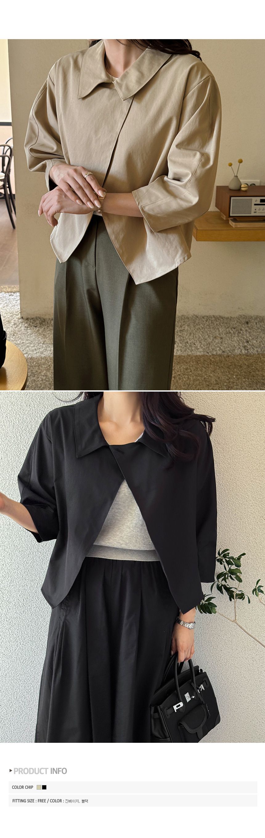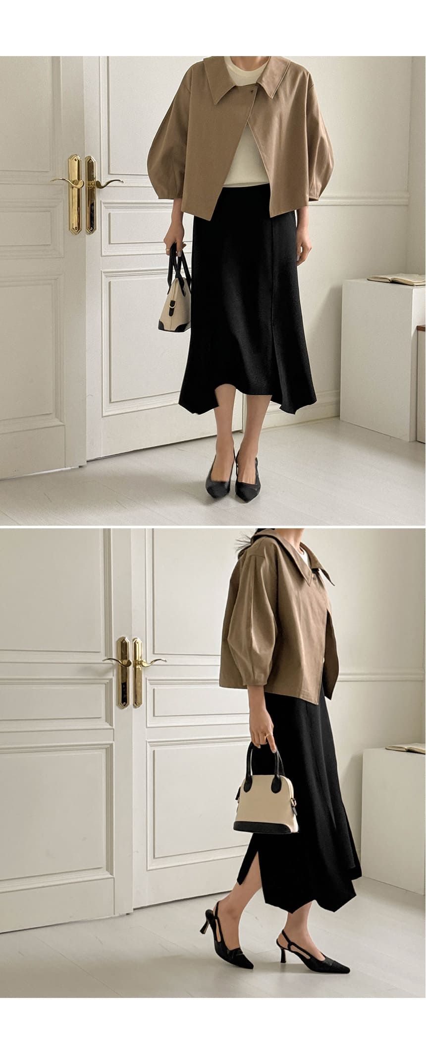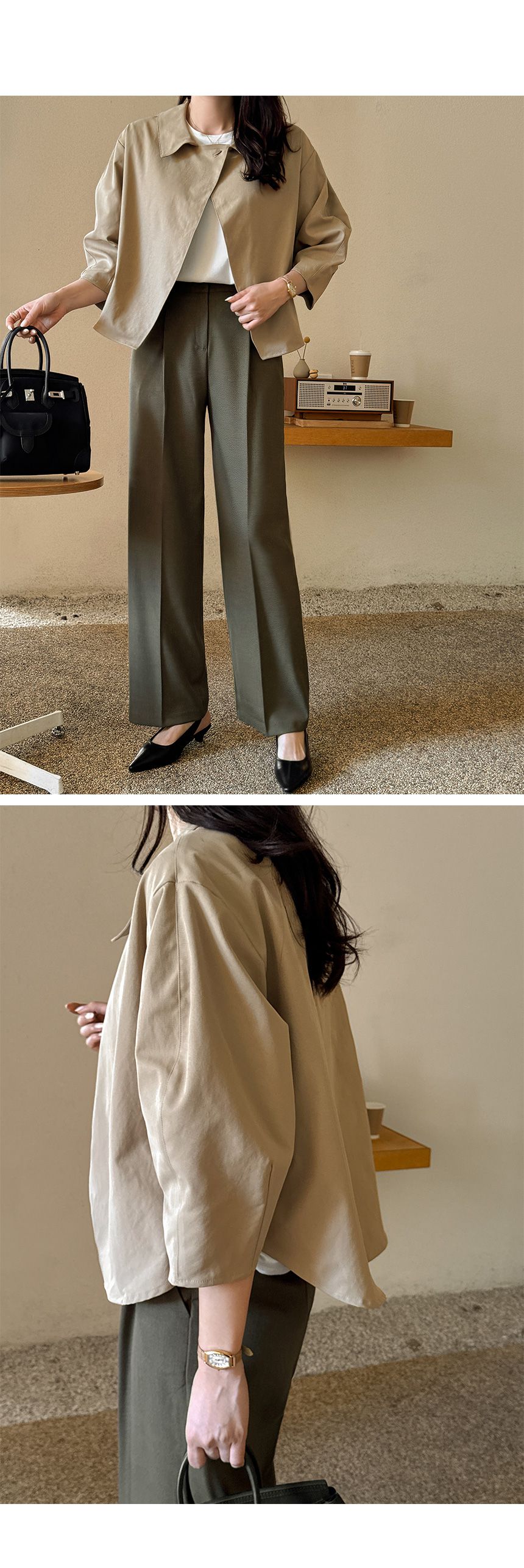 【C55624】韓國MAZ 不規則開襟風衣-單釦素面七分燈籠袖OL斗篷外套