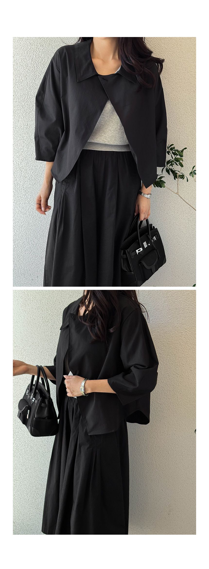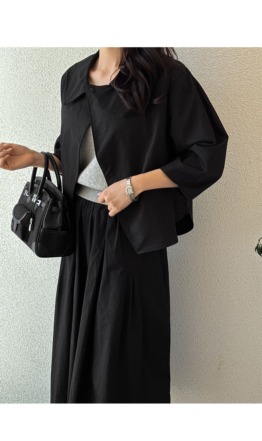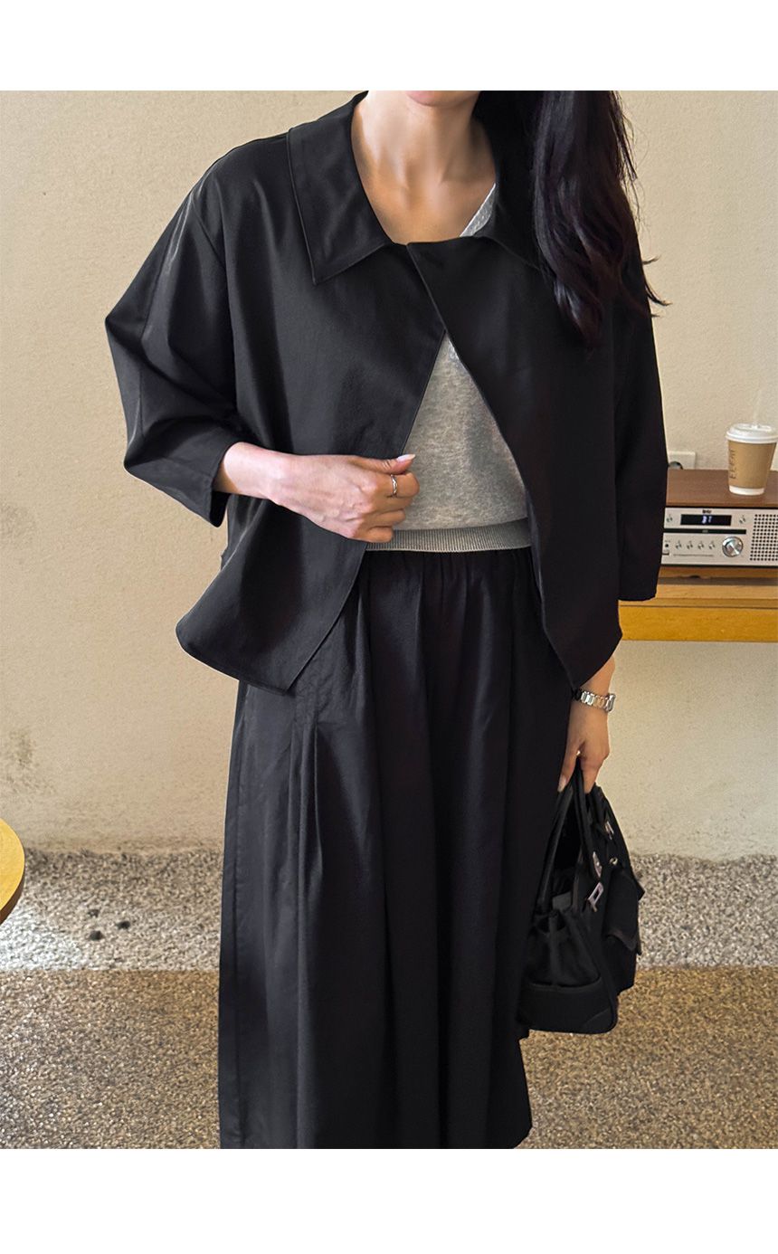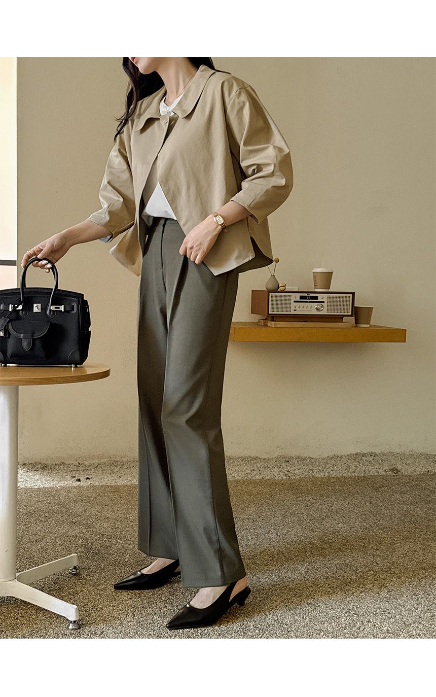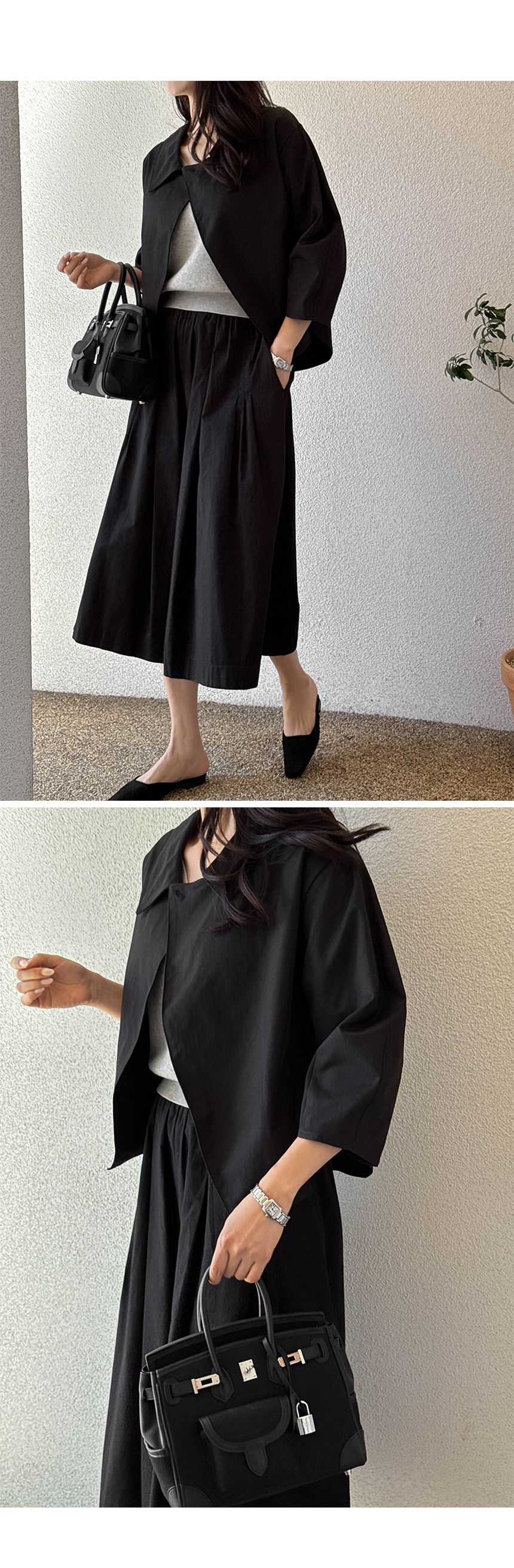 【C55624】韓國MAZ 不規則開襟風衣-單釦素面七分燈籠袖OL斗篷外套