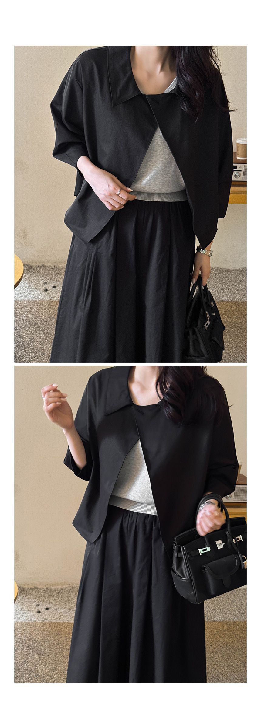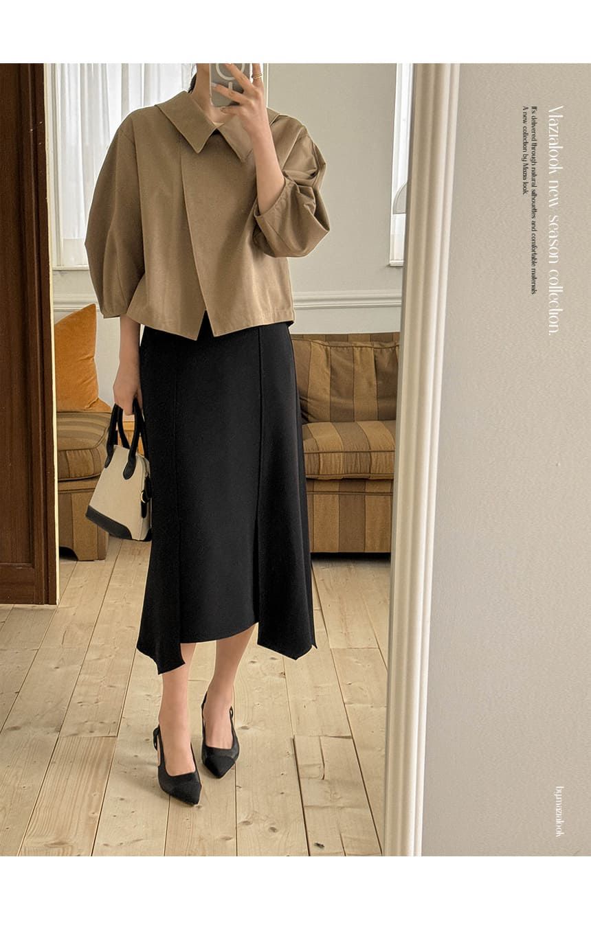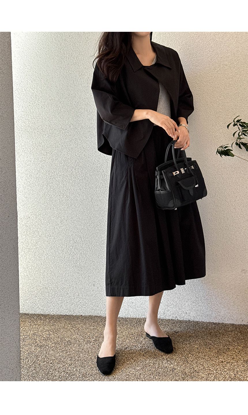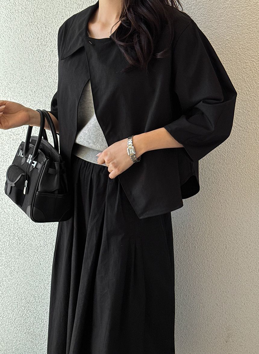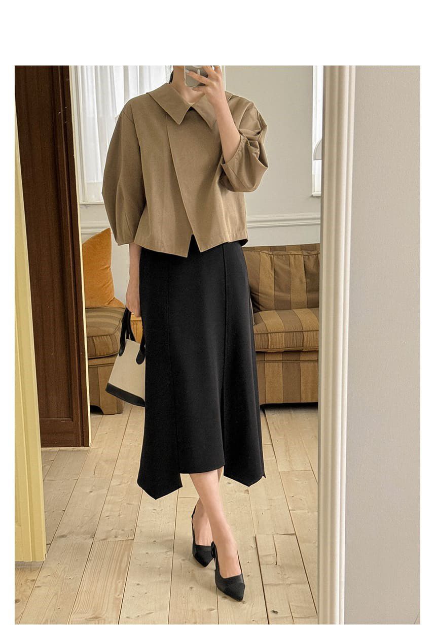 【C55624】韓國MAZ 不規則開襟風衣-單釦素面七分燈籠袖OL斗篷外套