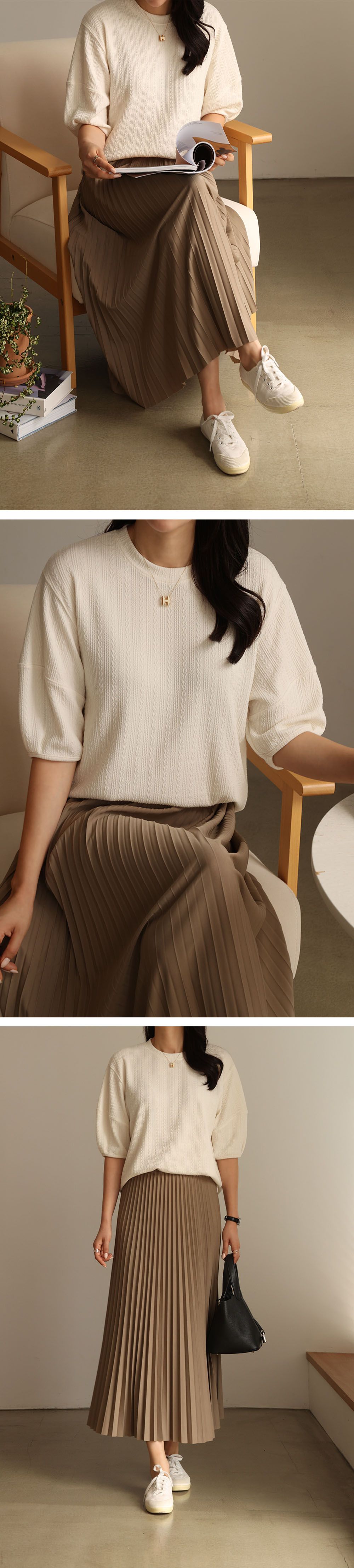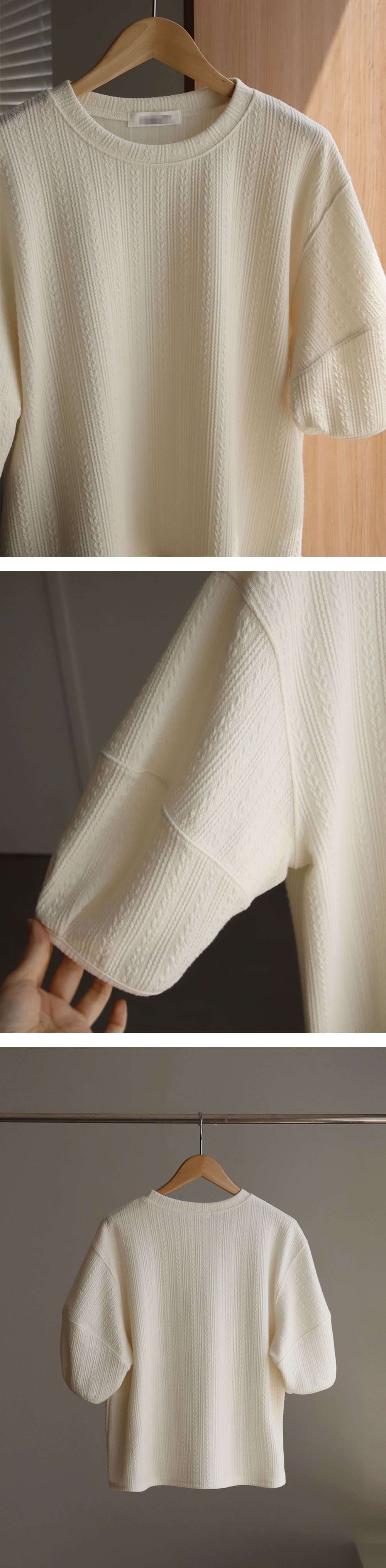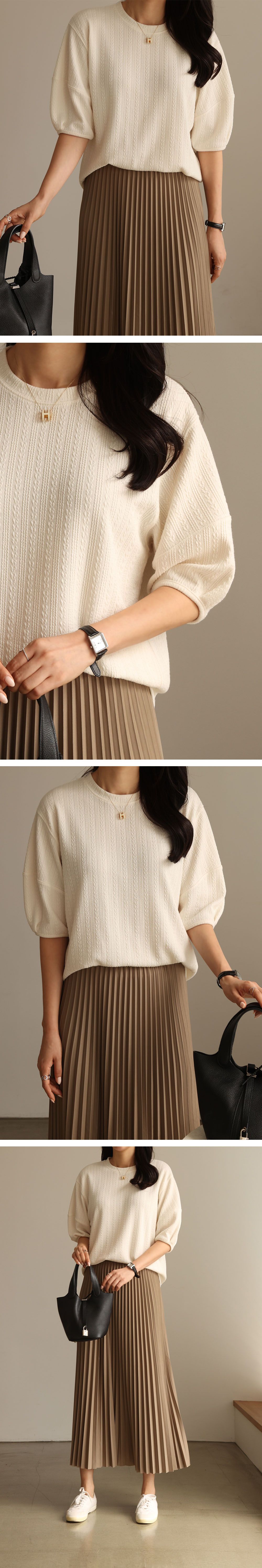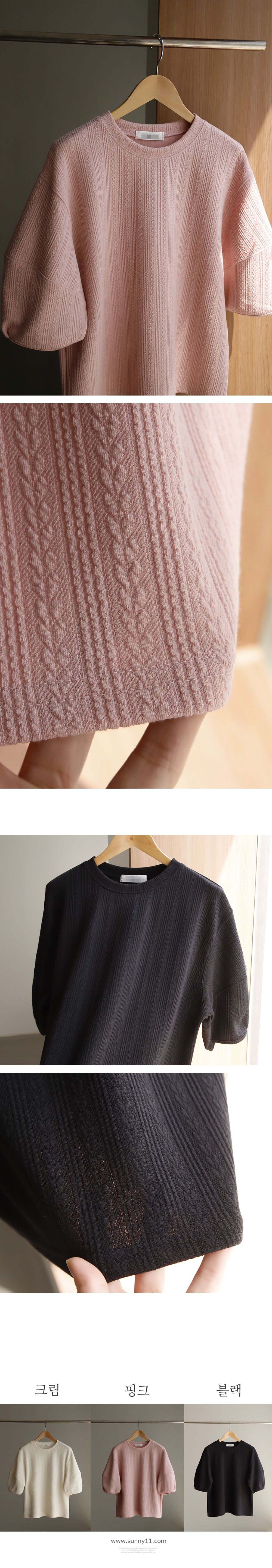 【C55627】韓國S11 立體雕花上衣-圓領素面麻花針織造型澎澎袖五分袖