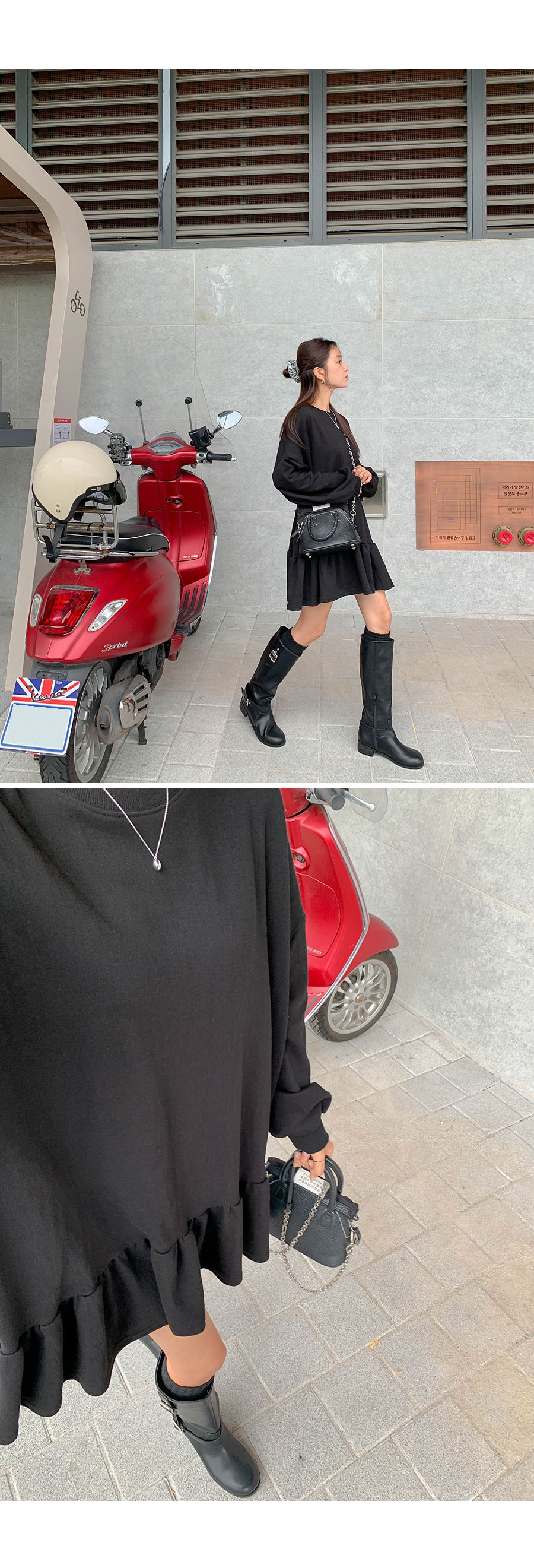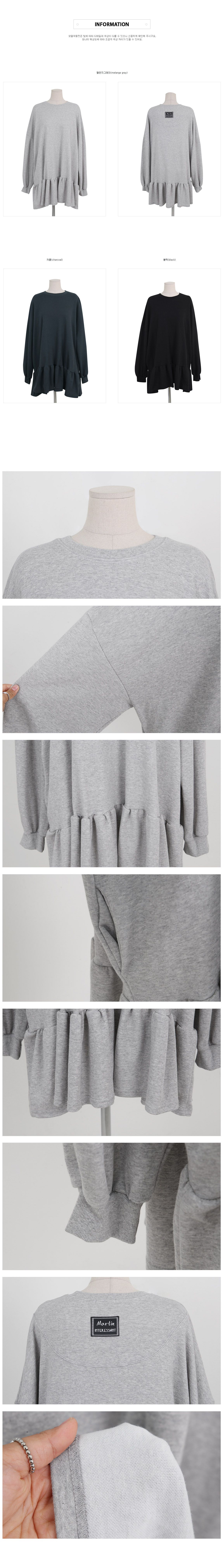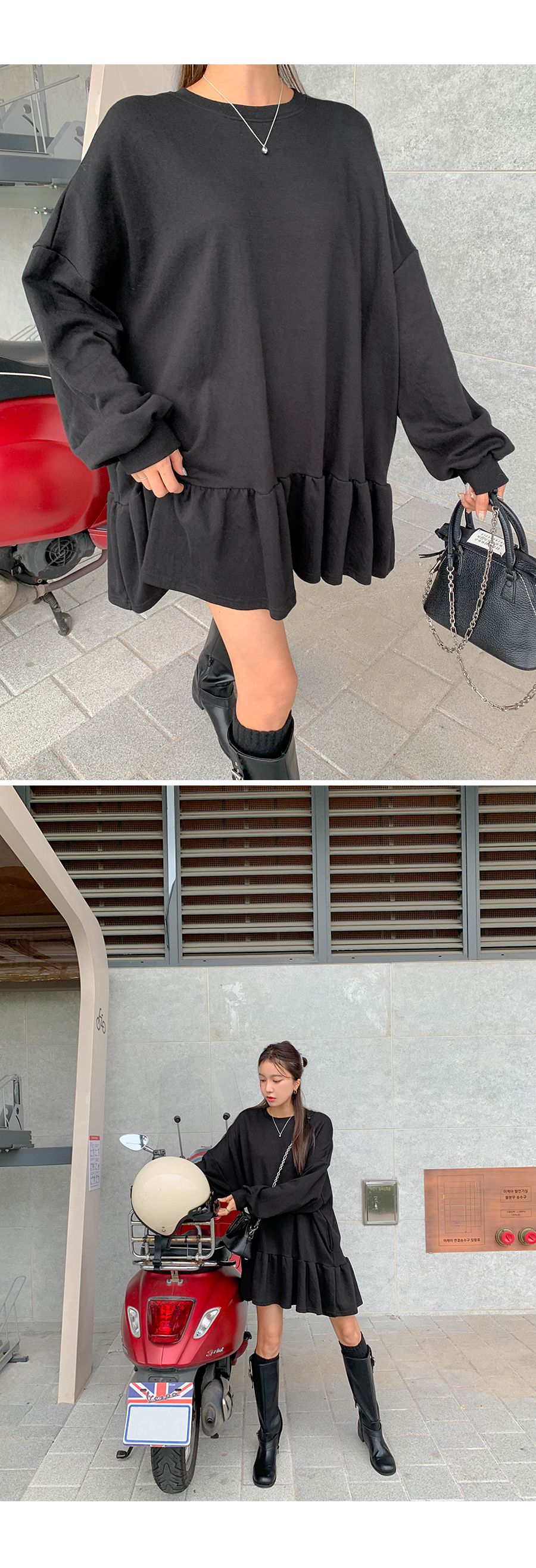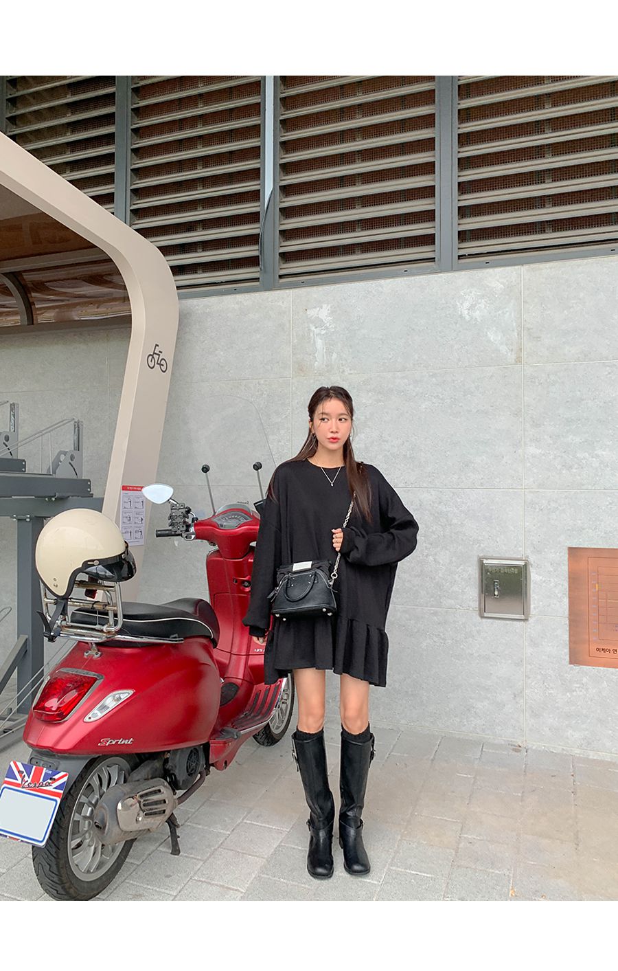 【C55631】韓國LLN 花邊裙襬短洋裝-寬鬆圓領後背字母布標長袖連身裙