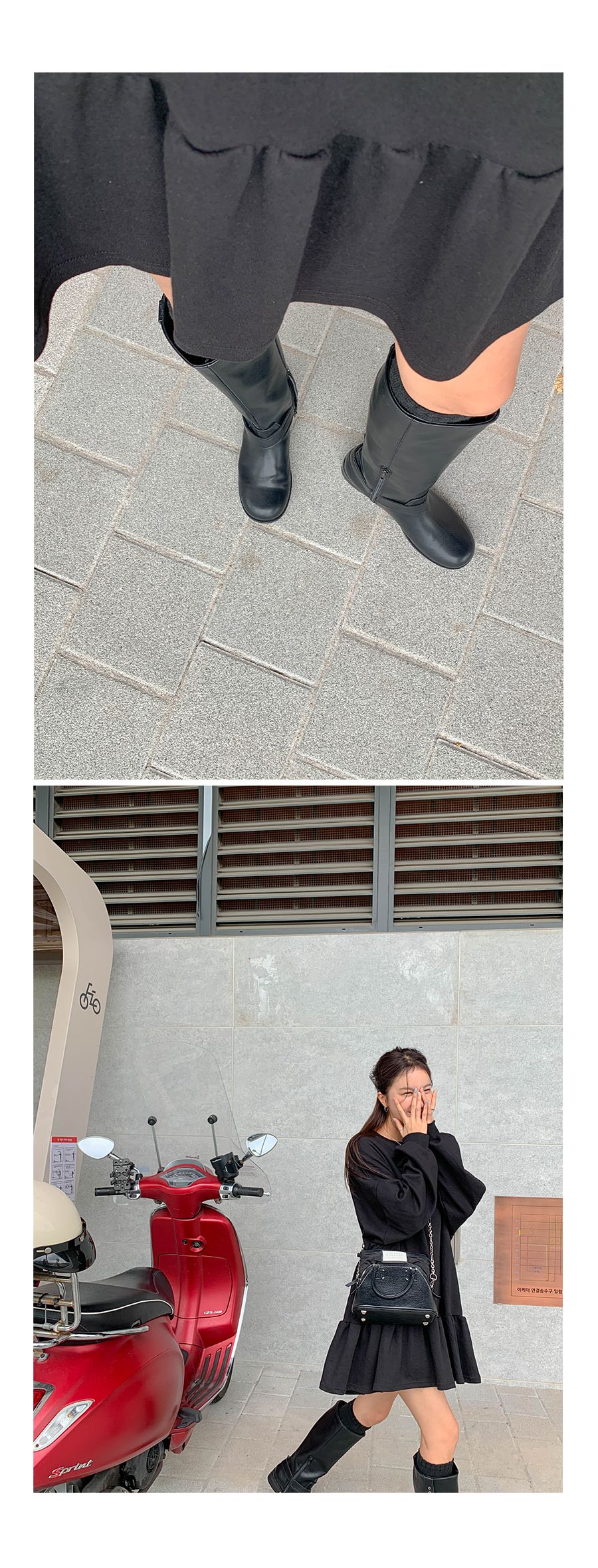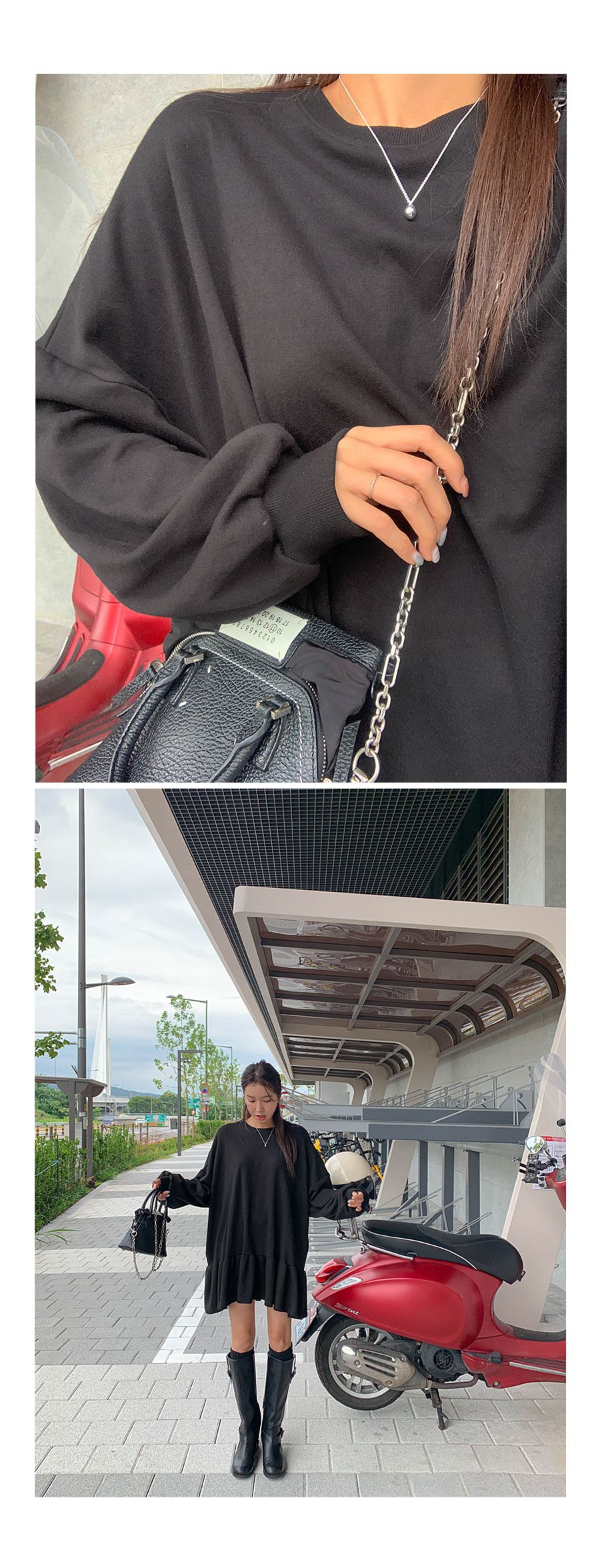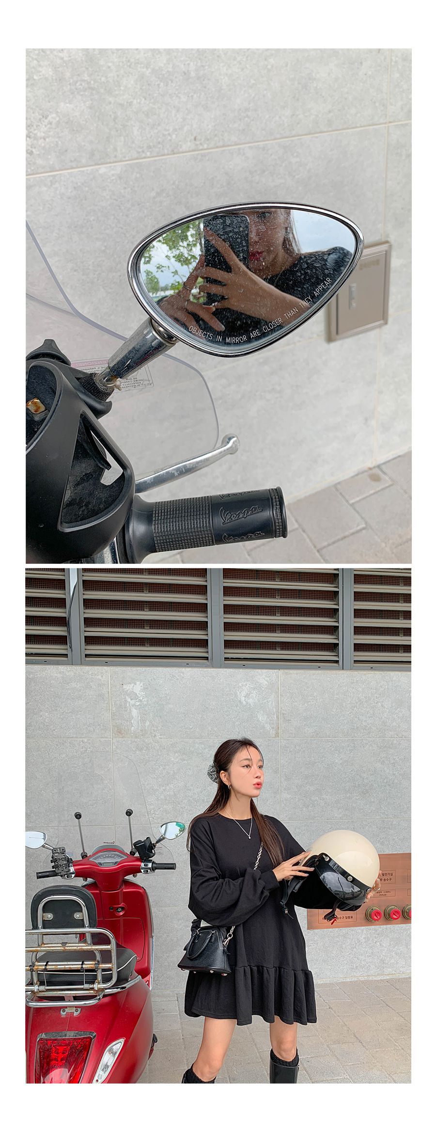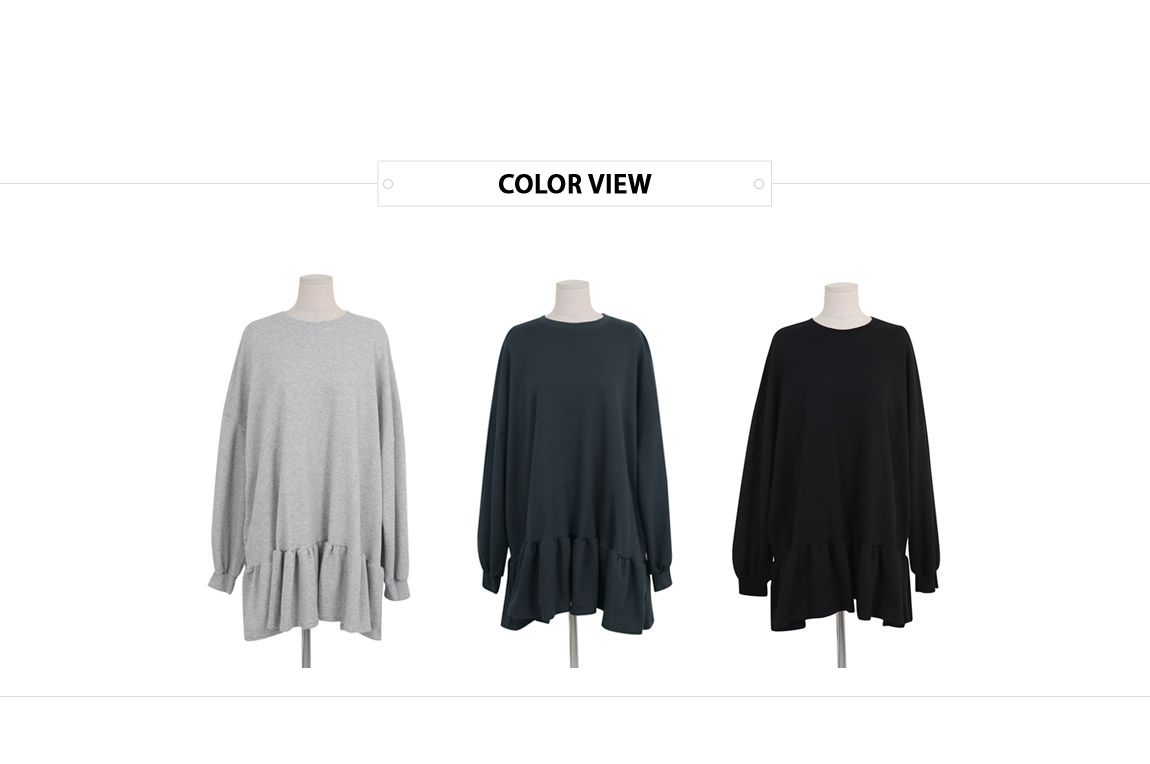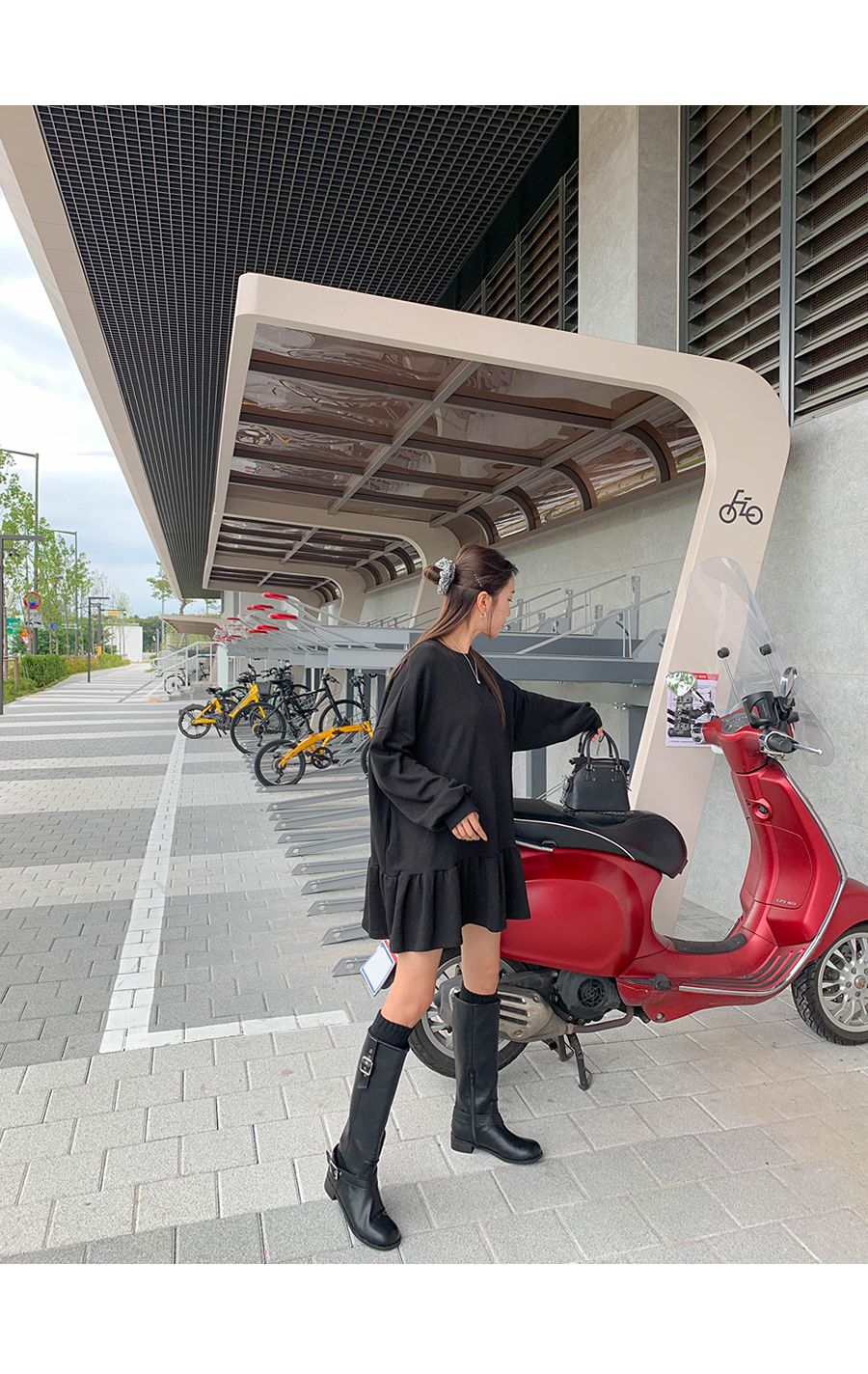 【C55631】韓國LLN 花邊裙襬短洋裝-寬鬆圓領後背字母布標長袖連身裙