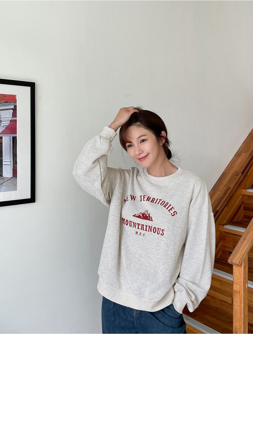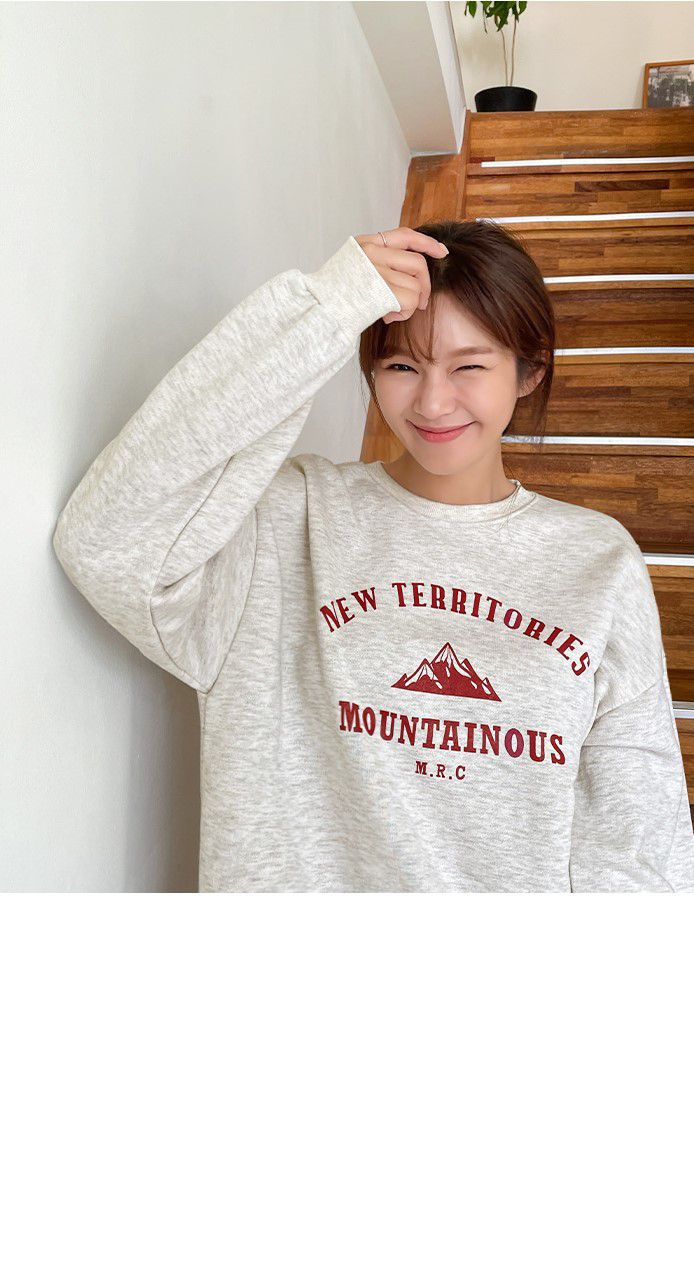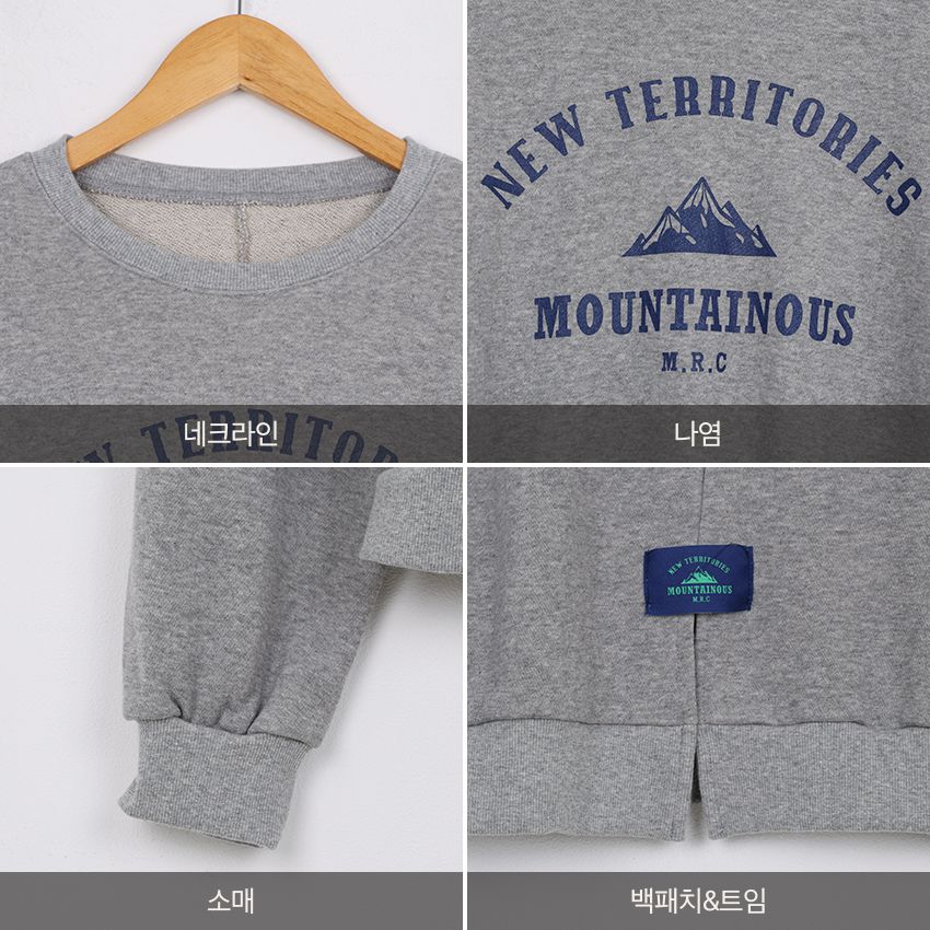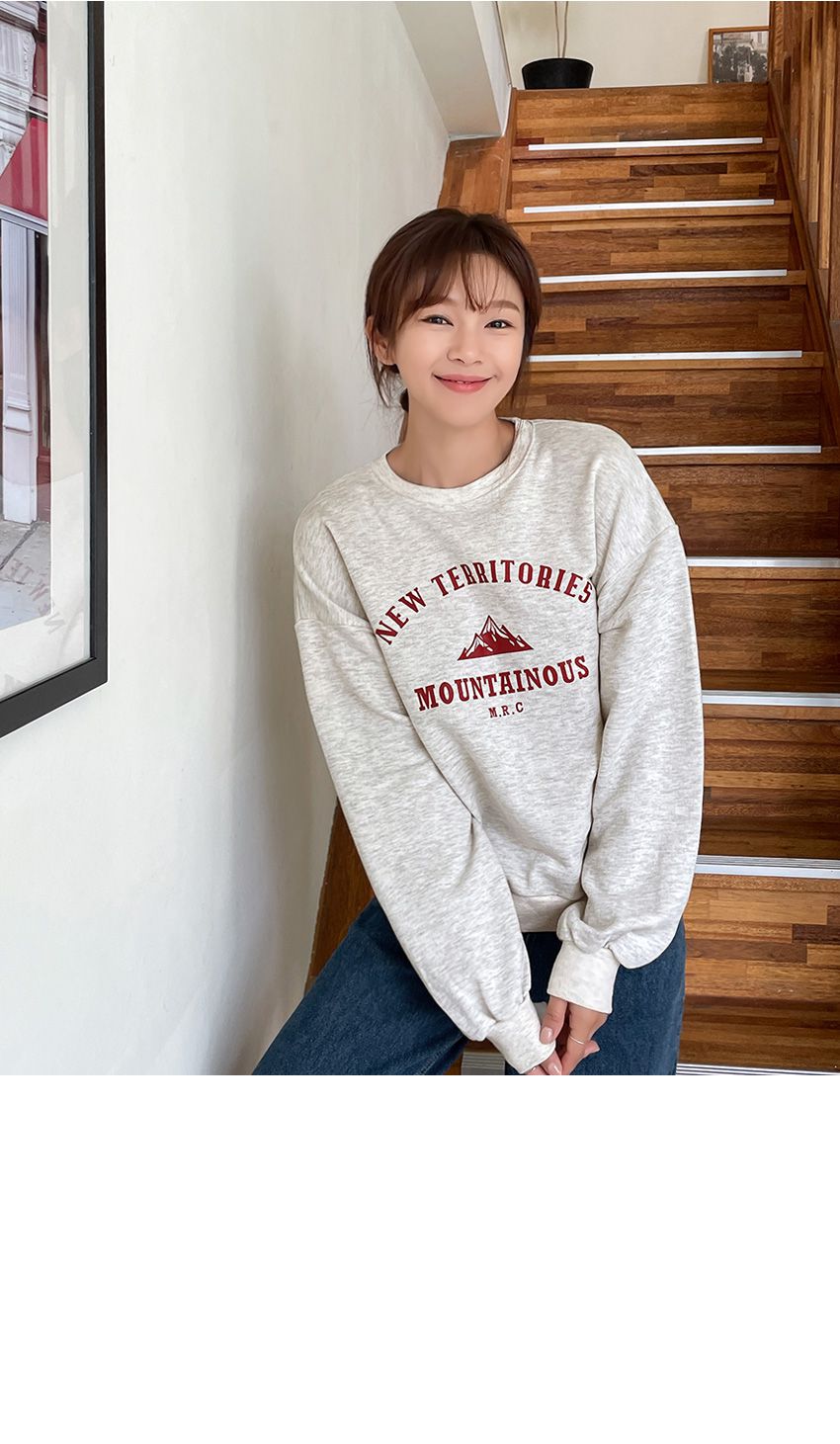 【C55638】韓國PSS 山脈印花大學T-字母圓領後襬開衩布標長袖上衣★★