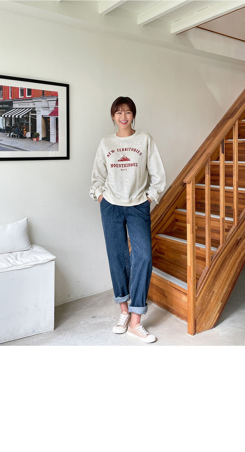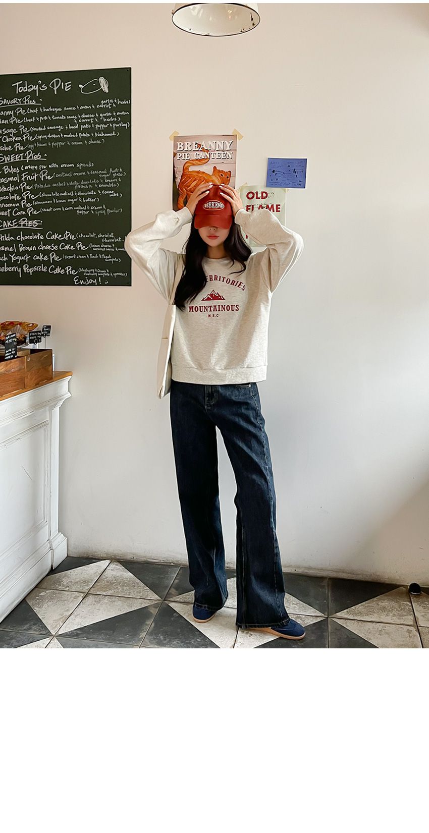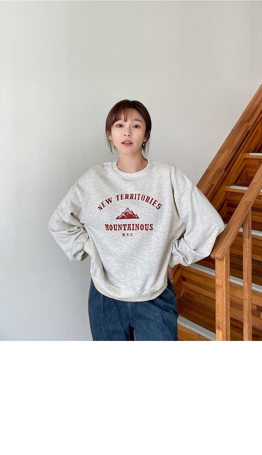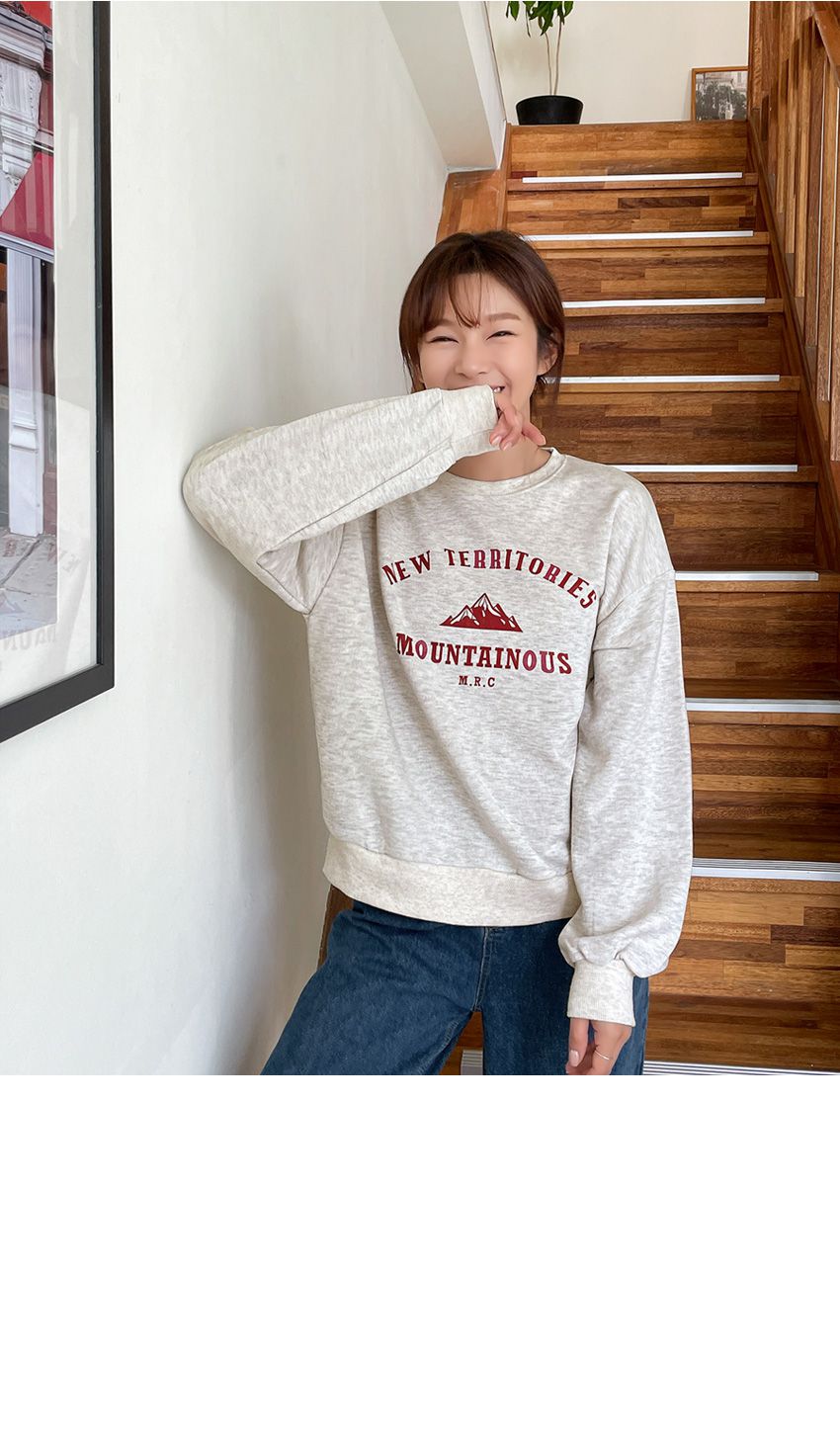 【C55638】韓國PSS 山脈印花大學T-字母圓領後襬開衩布標長袖上衣★★
