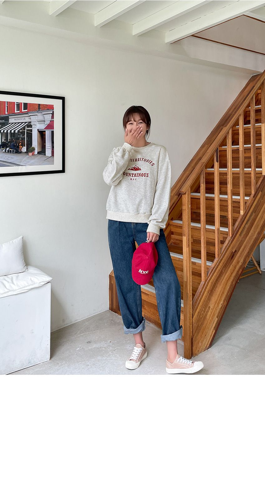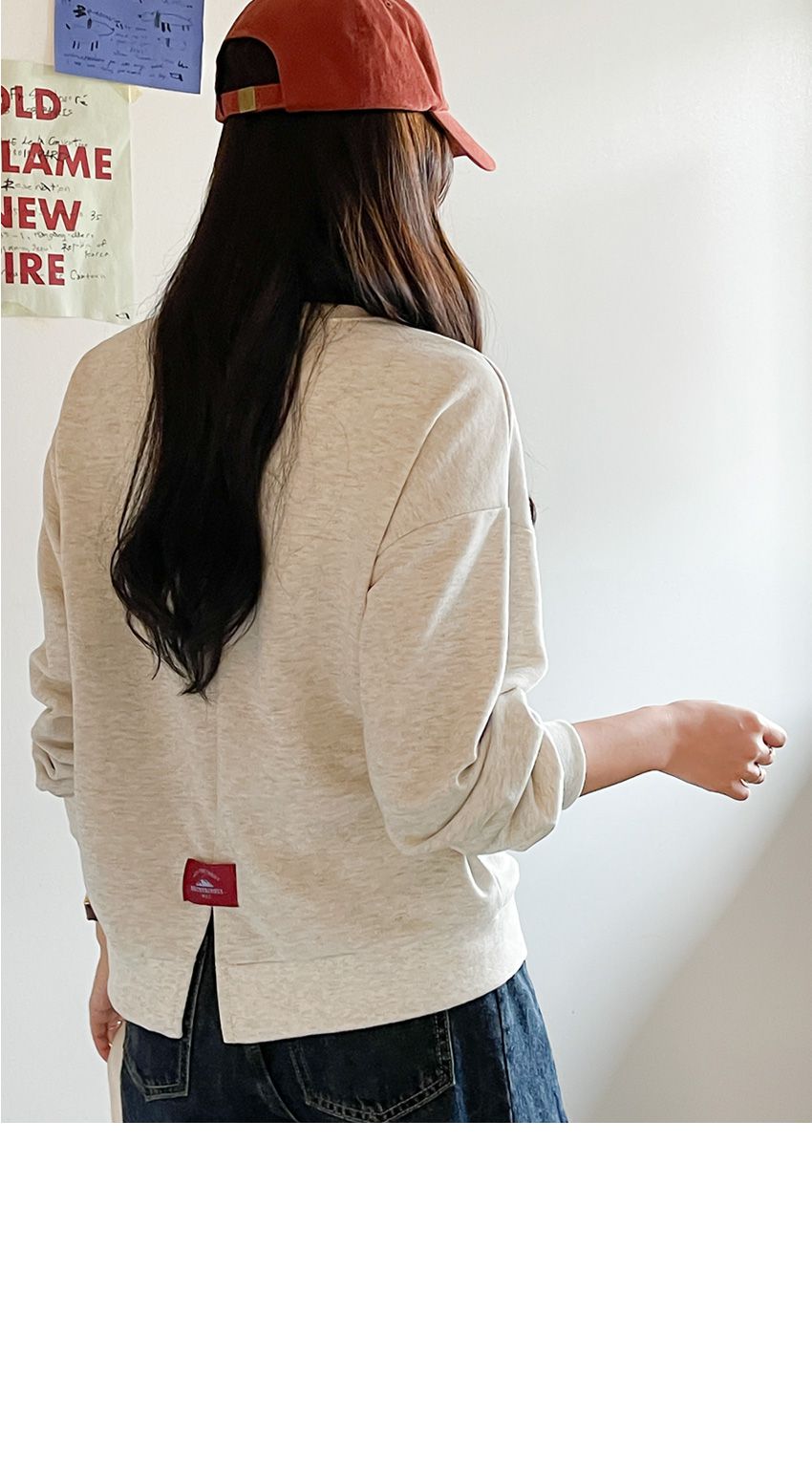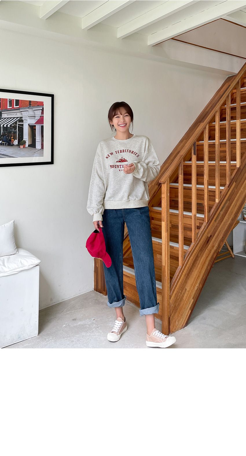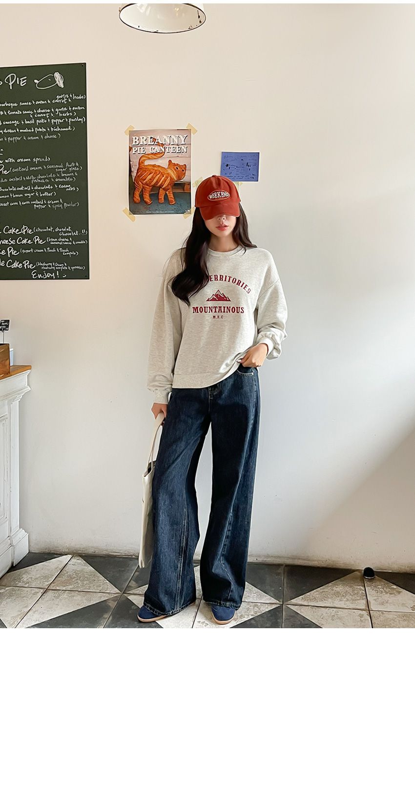 【C55638】韓國PSS 山脈印花大學T-字母圓領後襬開衩布標長袖上衣★★