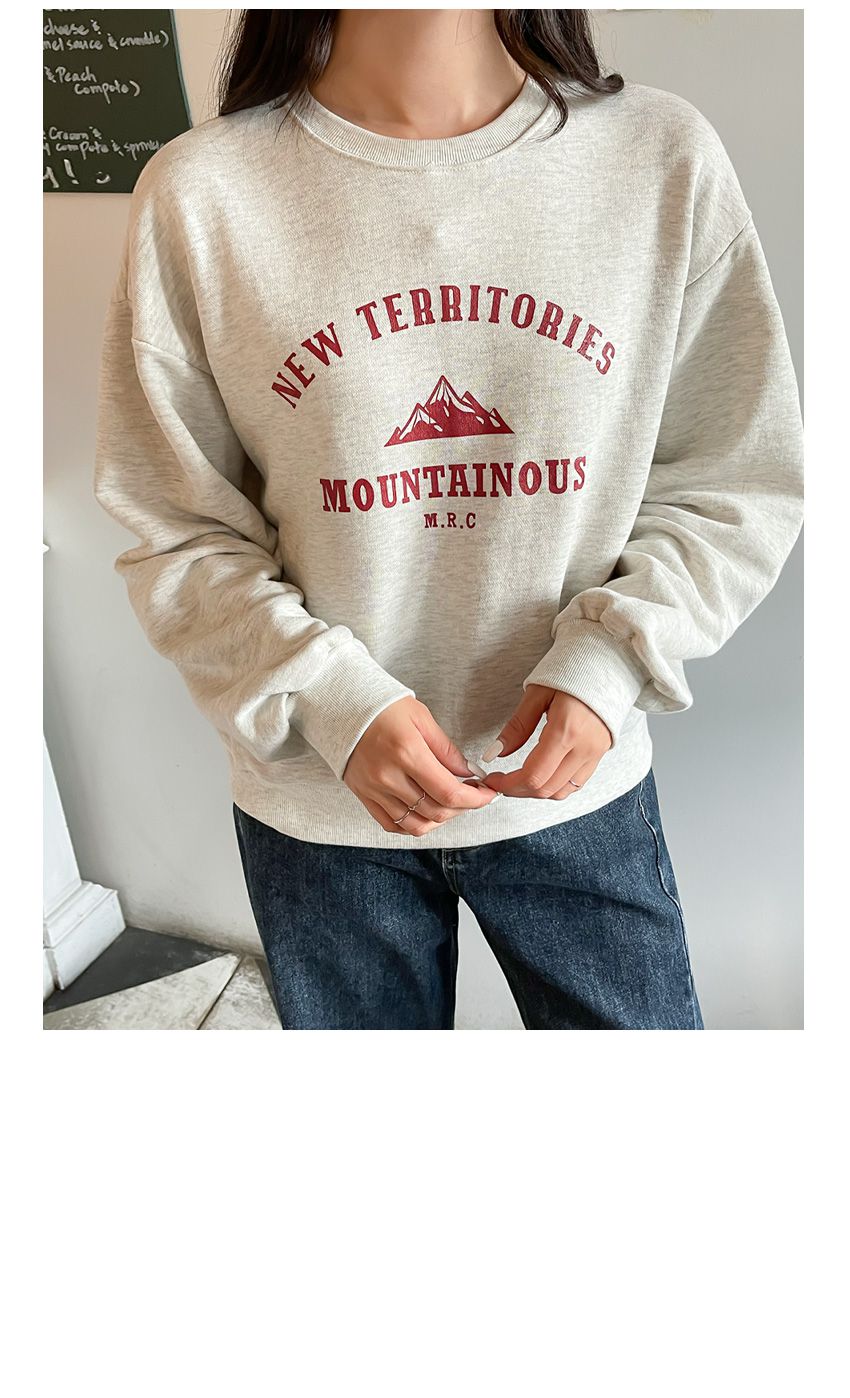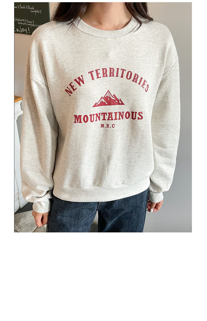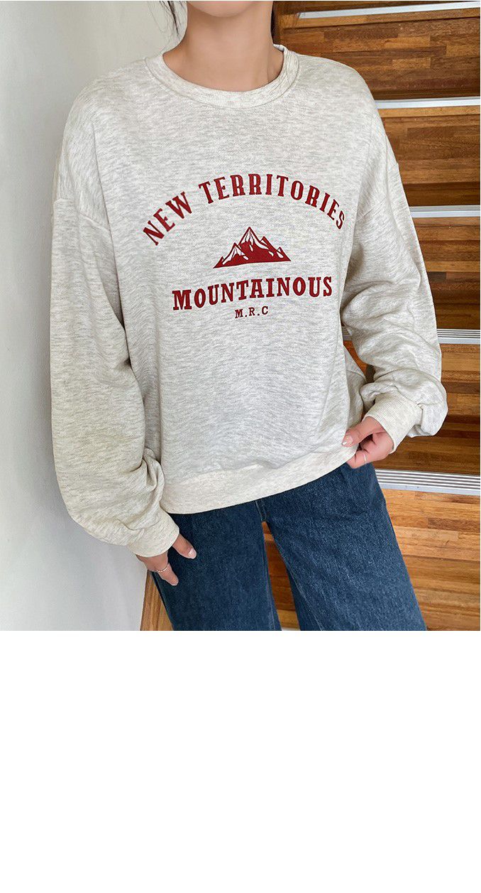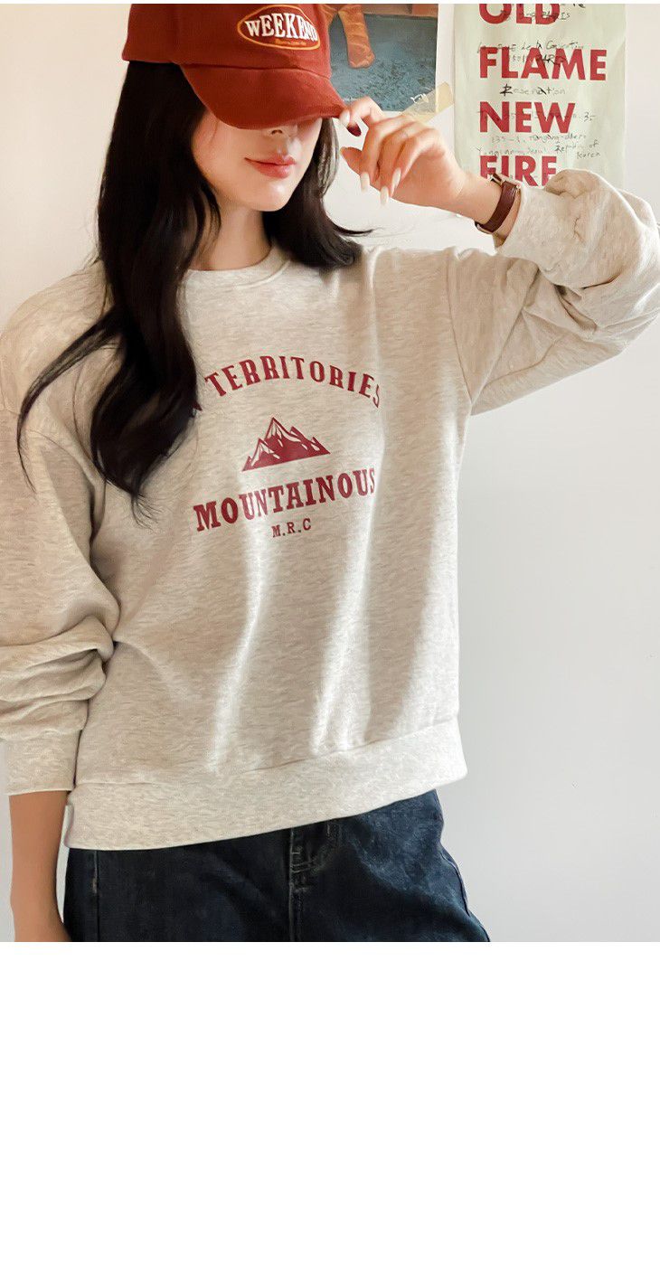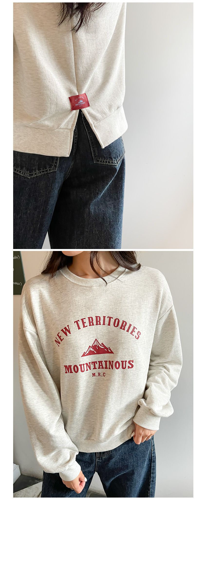 山丘印花/膠印字母/圓領/後襬開衩/字母布標/純棉/內裏毛圈棉 - 休閒居家英文字母上衣字母T恤山脈印花大學T長袖上衣燕麥色灰色深藍色