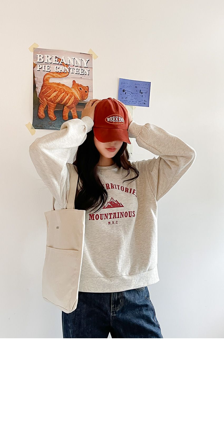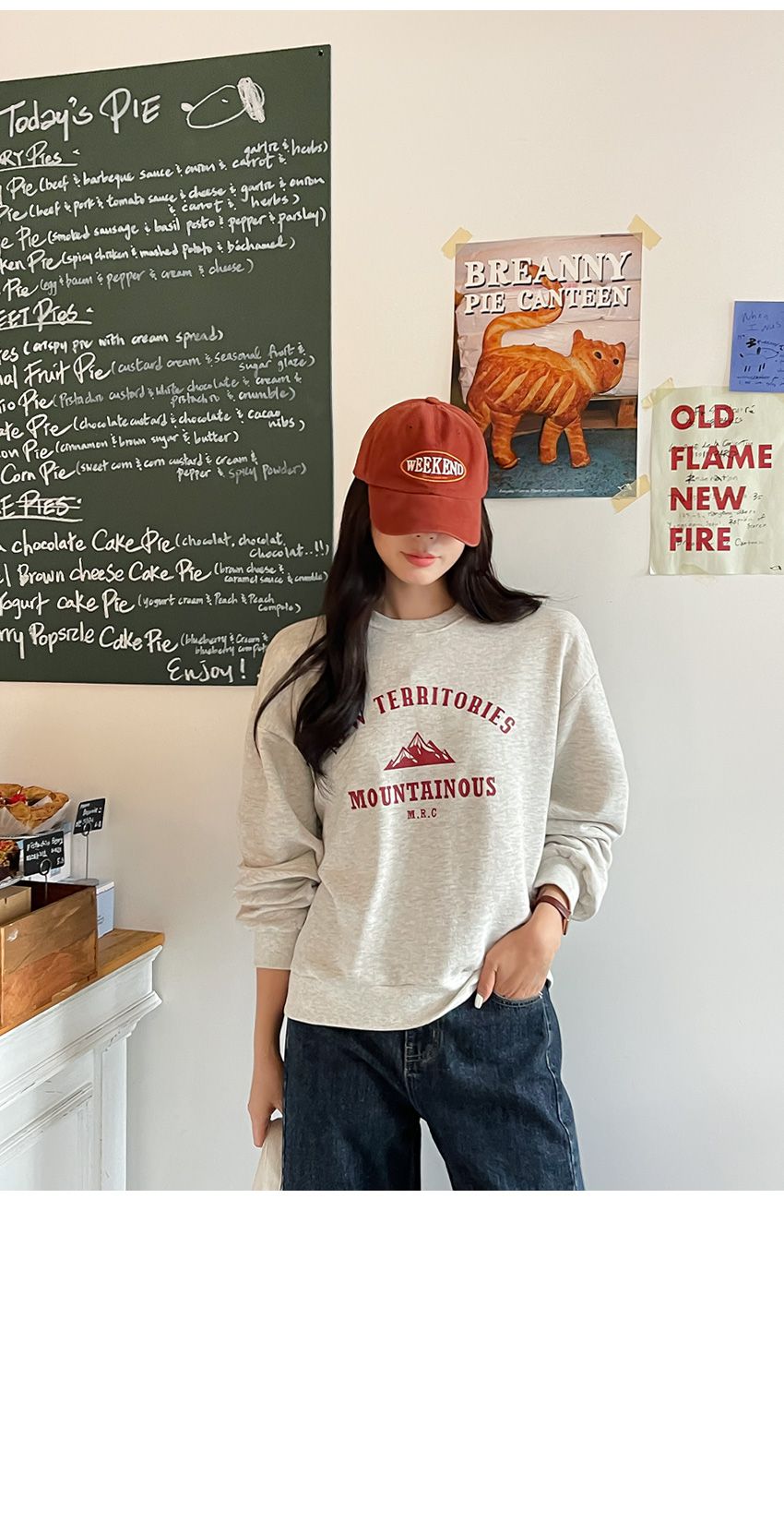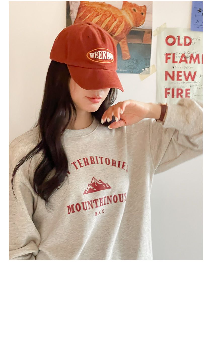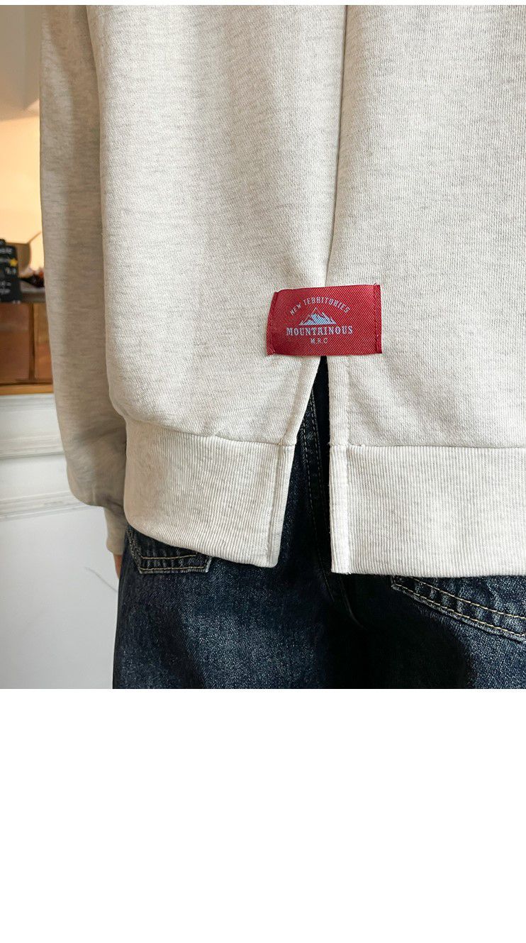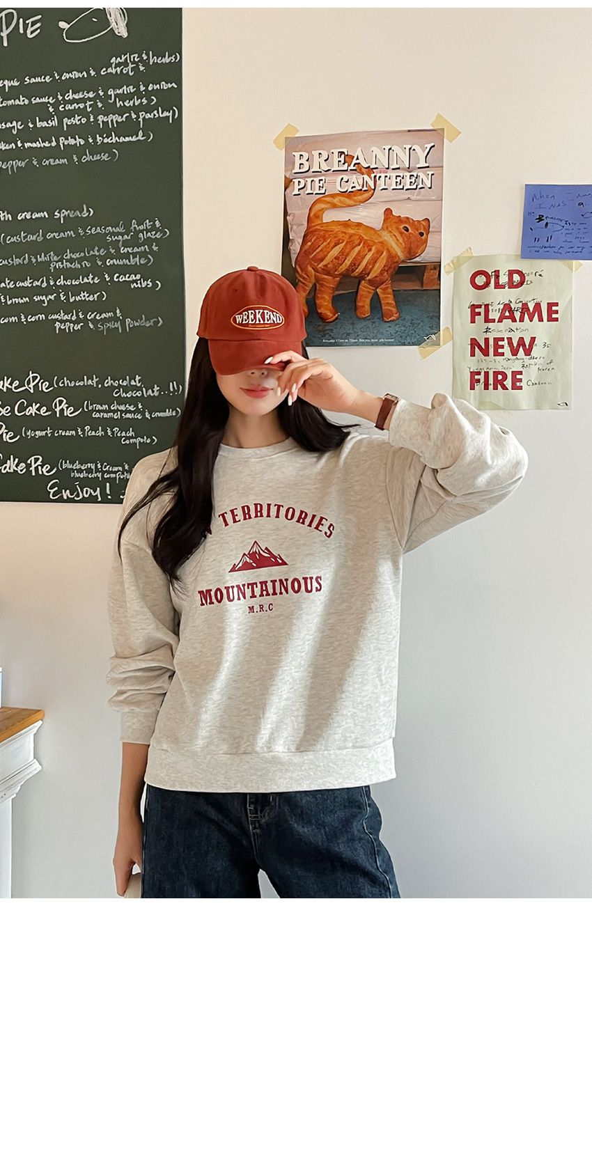 山丘印花/膠印字母/圓領/後襬開衩/字母布標/純棉/內裏毛圈棉 - 休閒居家英文字母上衣字母T恤山脈印花大學T長袖上衣燕麥色灰色深藍色