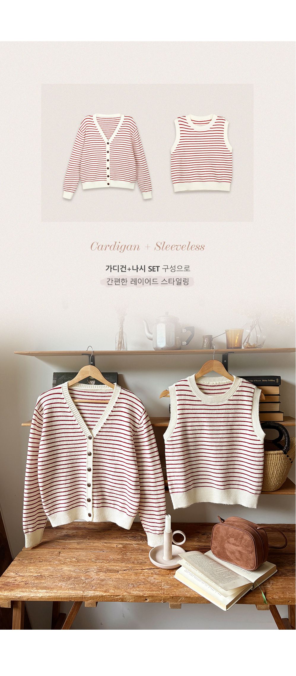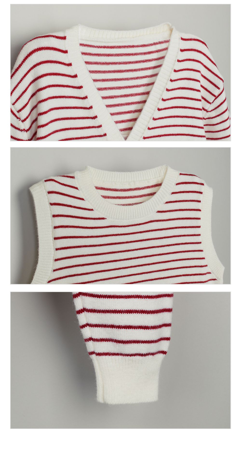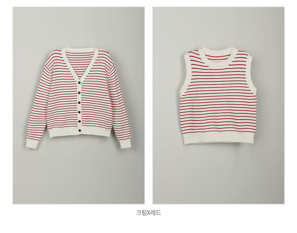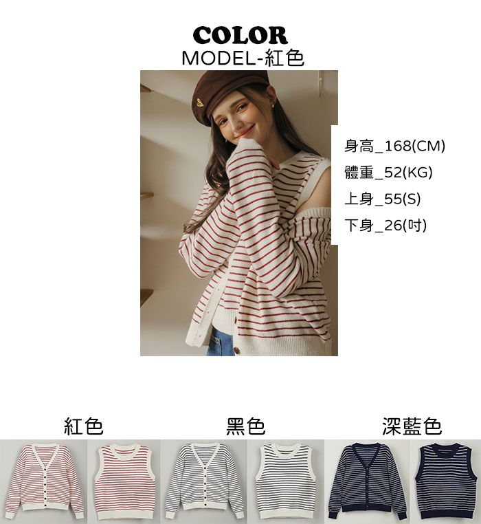 超值兩件組/圓領背心/寬肩無袖/短版上衣/V領外套/開襟排釦/好氣色 - 休閒渡假婚禮配色條紋上衣條紋套裝條紋針織衫套裝針織套裝無袖背心上衣長袖外套針織外套排釦外套紅色黑色深藍色