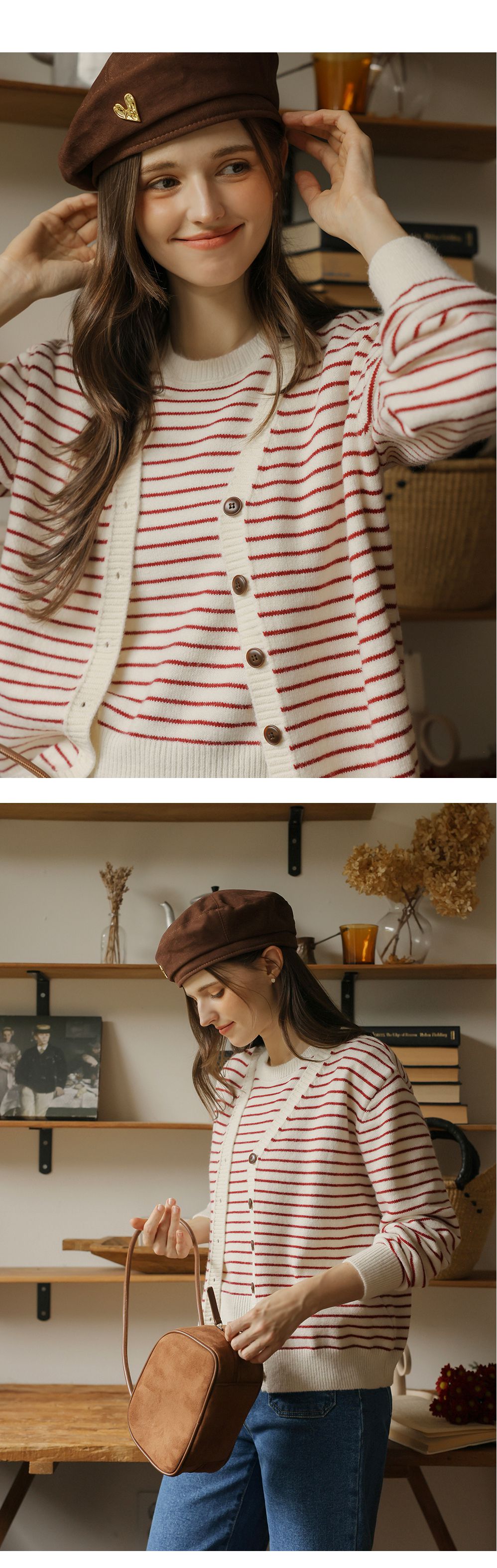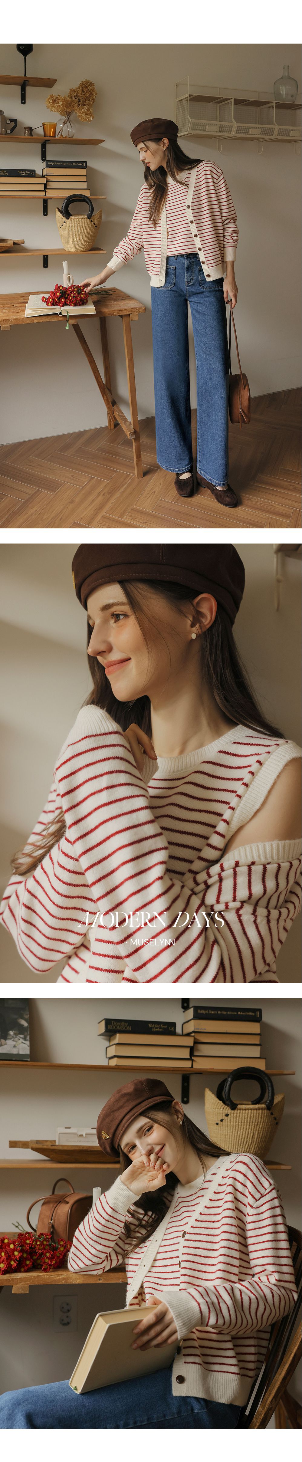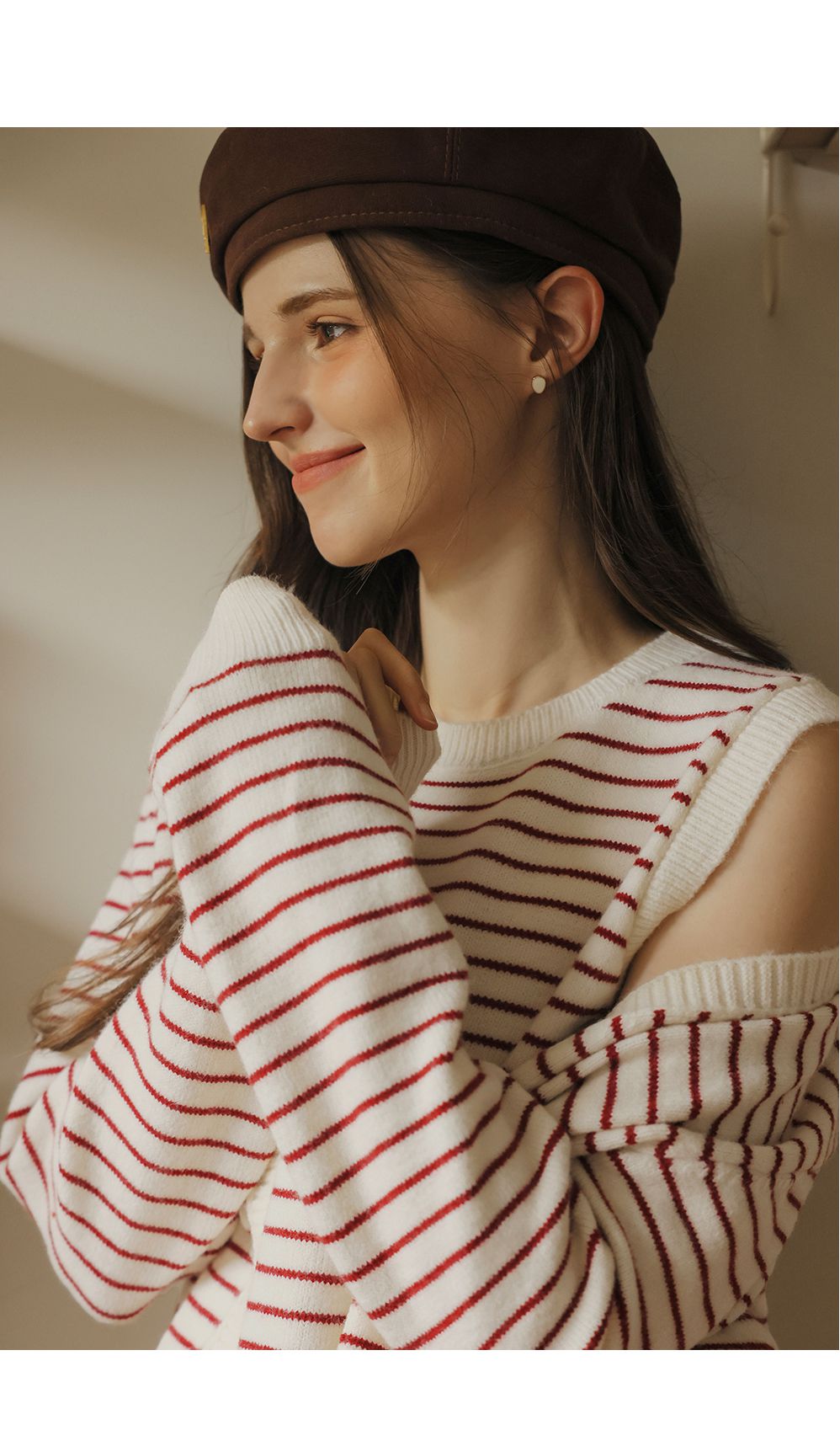 超值兩件組/圓領背心/寬肩無袖/短版上衣/V領外套/開襟排釦/好氣色 - 休閒渡假婚禮配色條紋上衣條紋套裝條紋針織衫套裝針織套裝無袖背心上衣長袖外套針織外套排釦外套紅色黑色深藍色