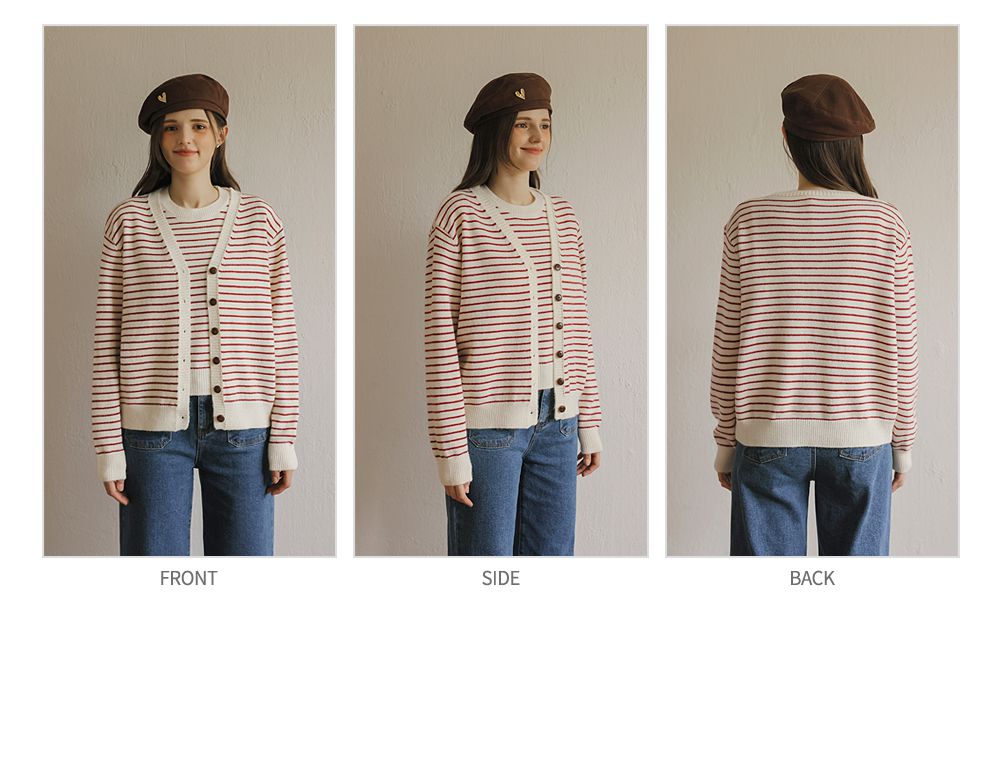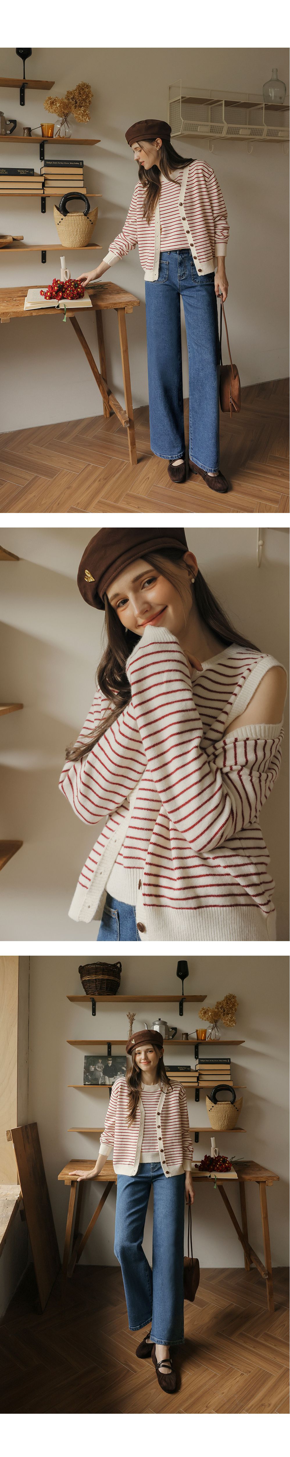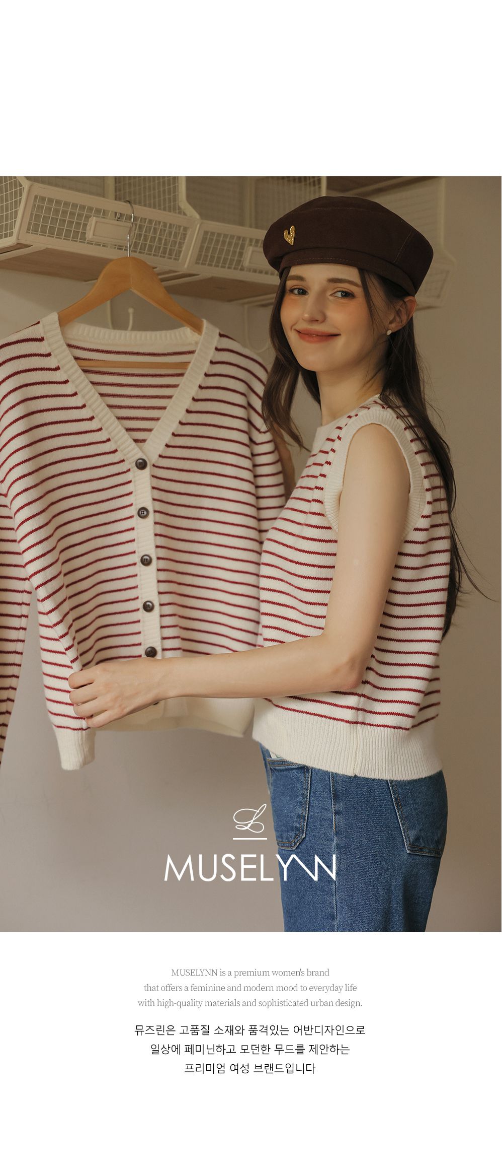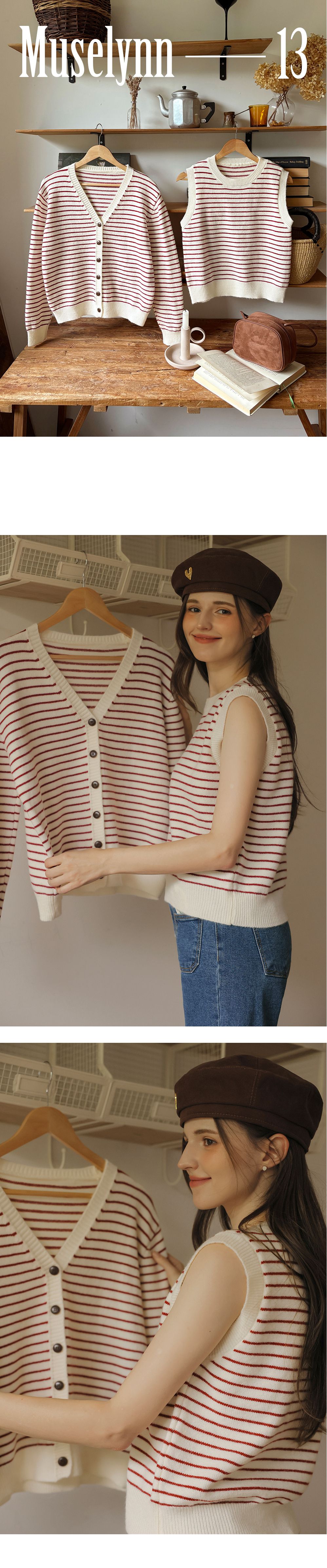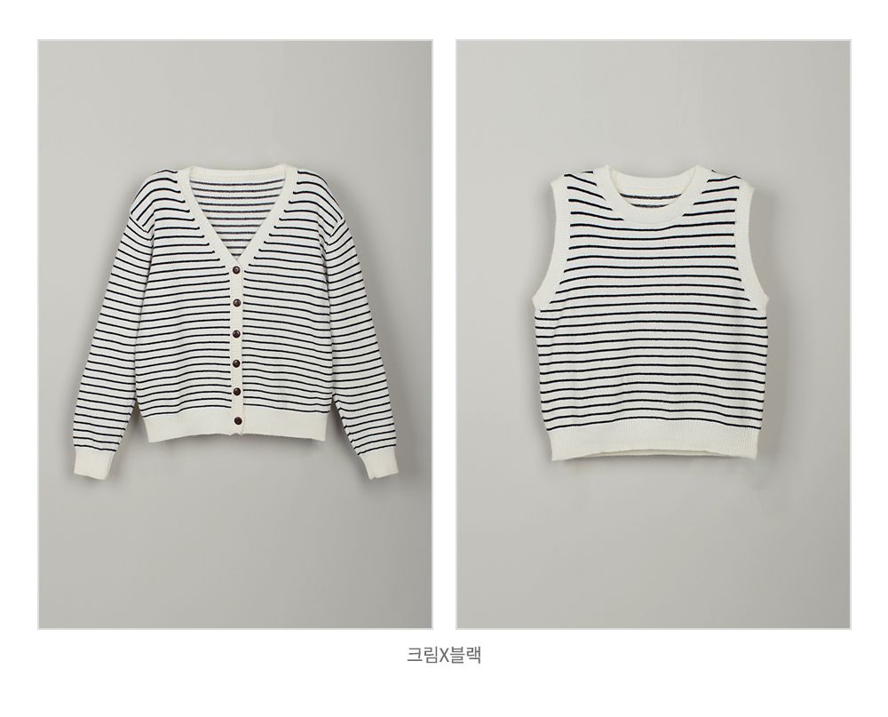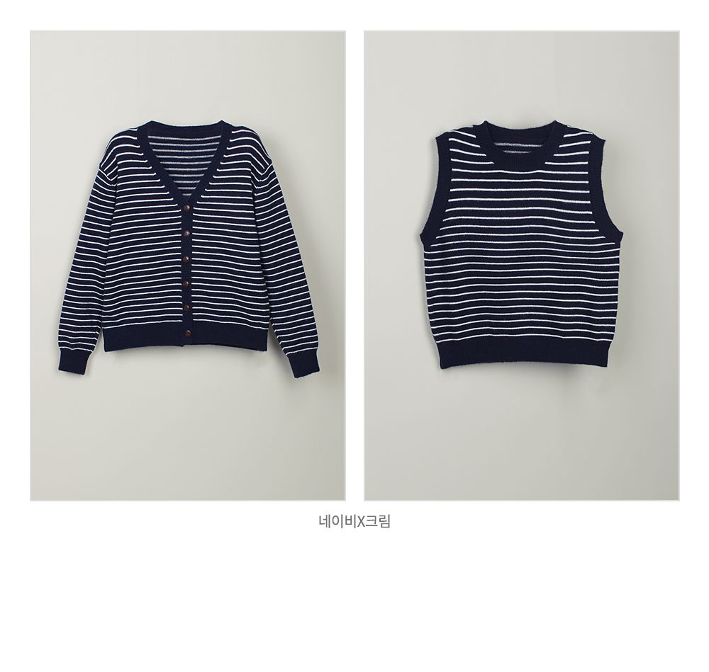 【C55641】韓國MID 條紋針織衫套裝-圓領無袖背心上衣+長袖排釦外套★★