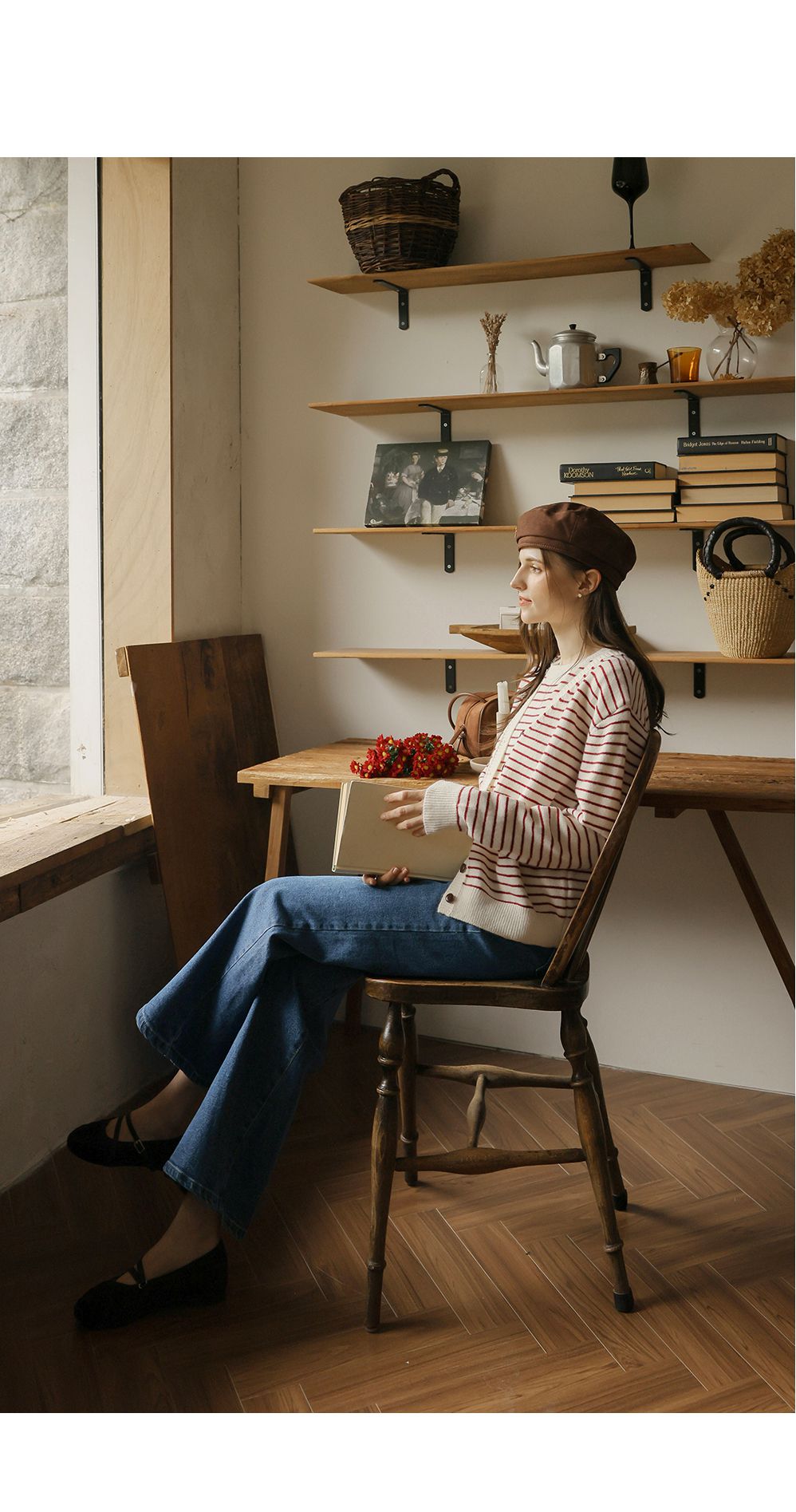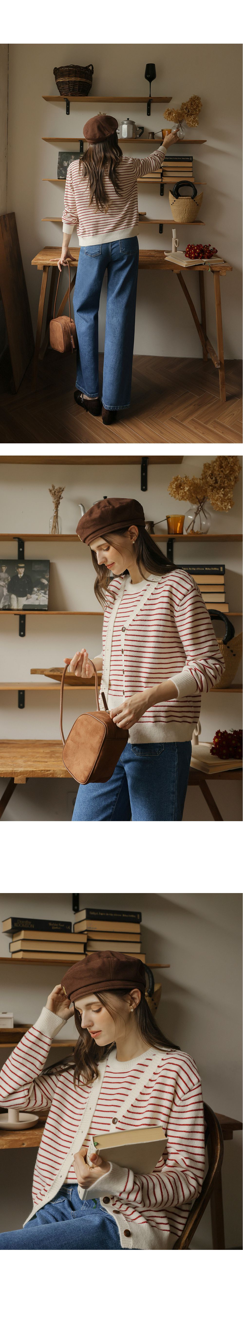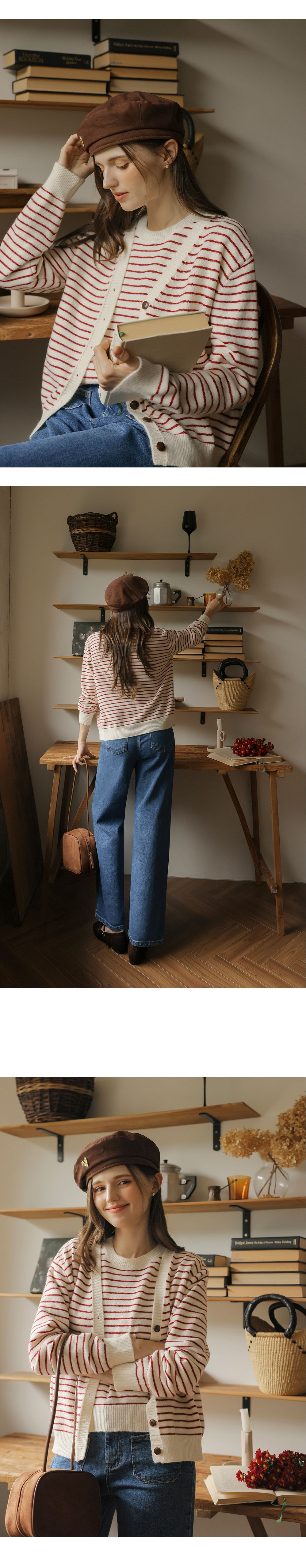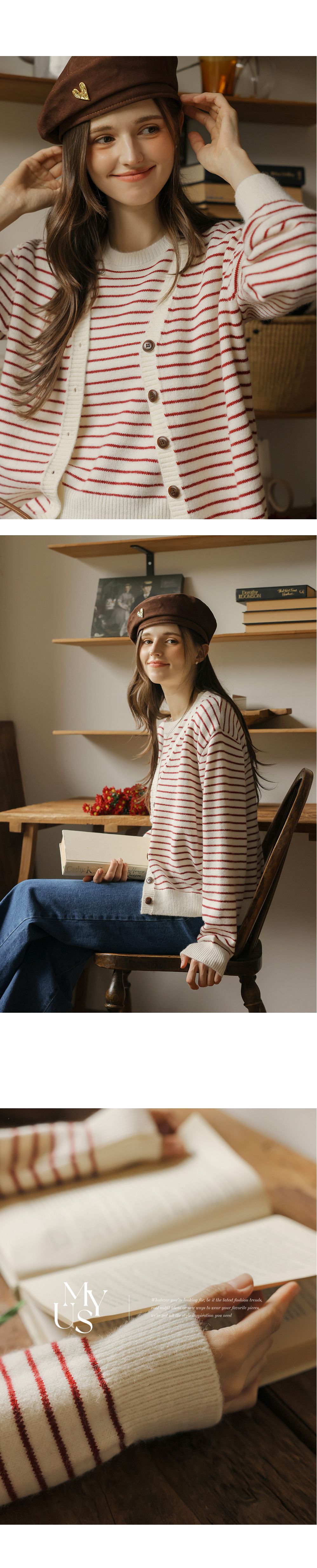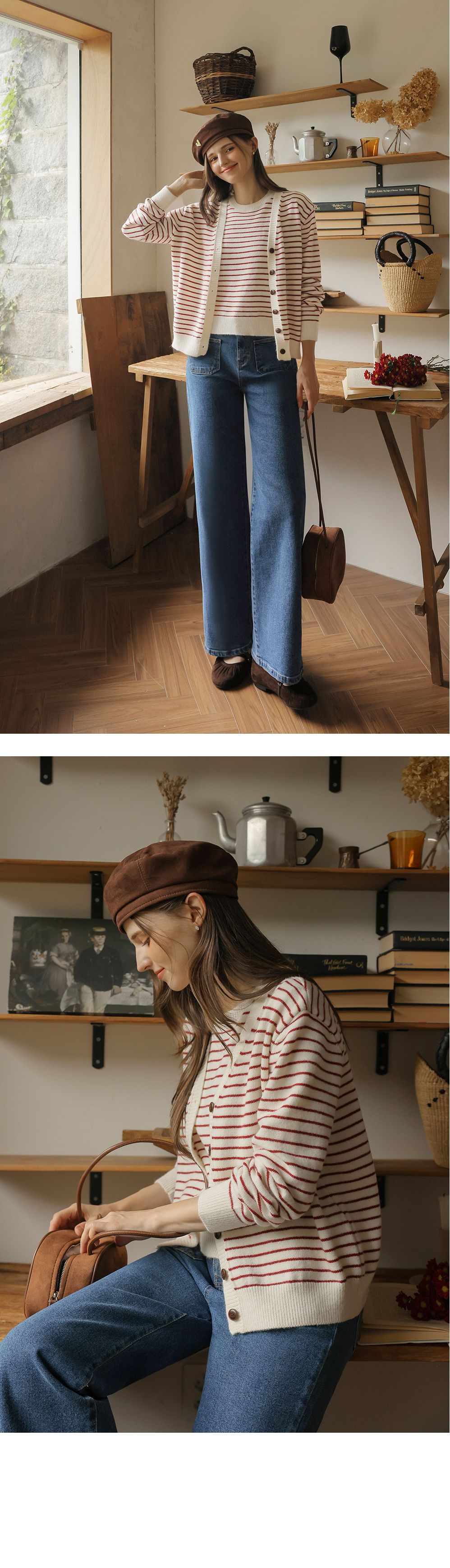 【C55641】韓國MID 條紋針織衫套裝-圓領無袖背心上衣+長袖排釦外套★★