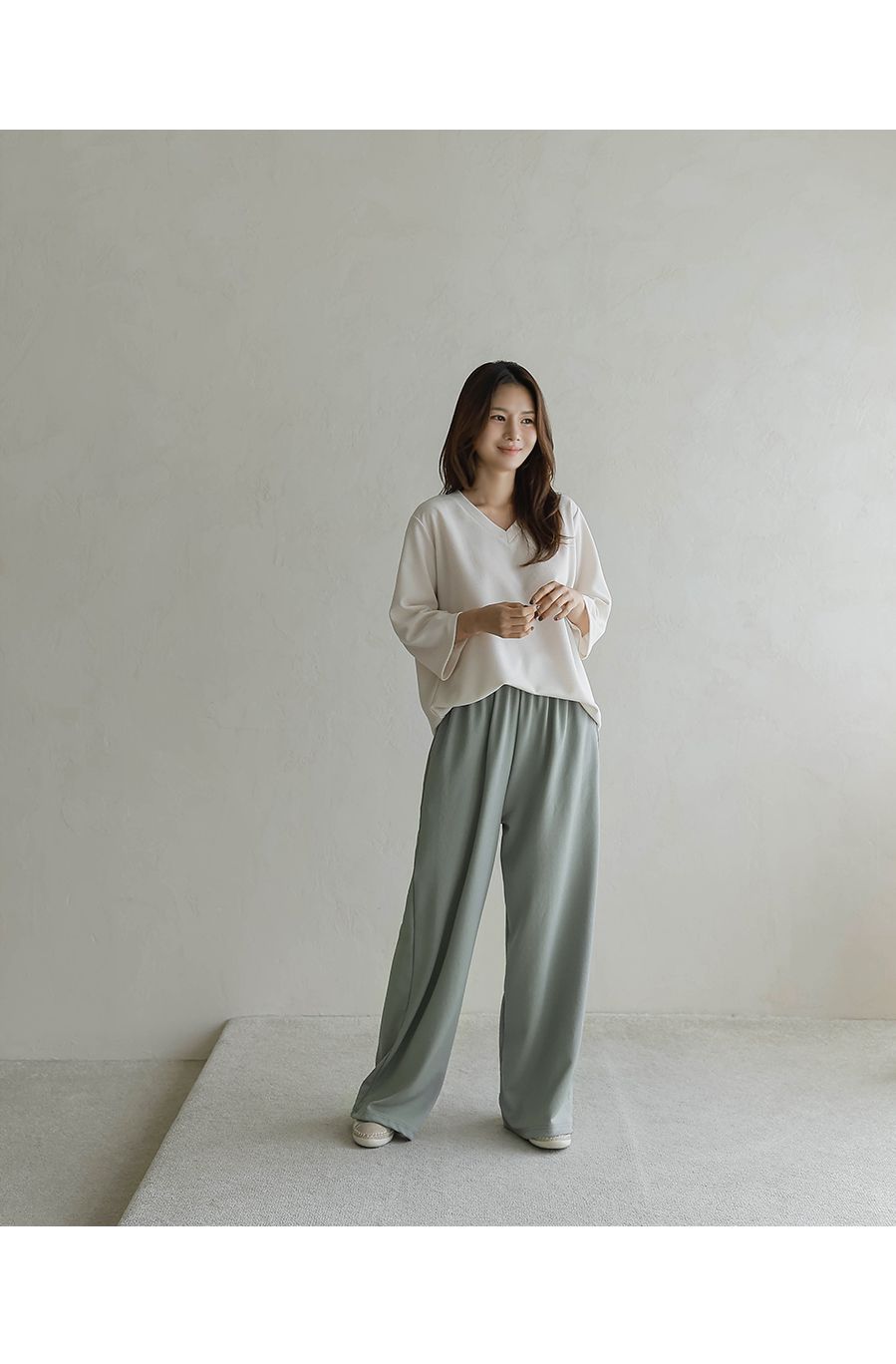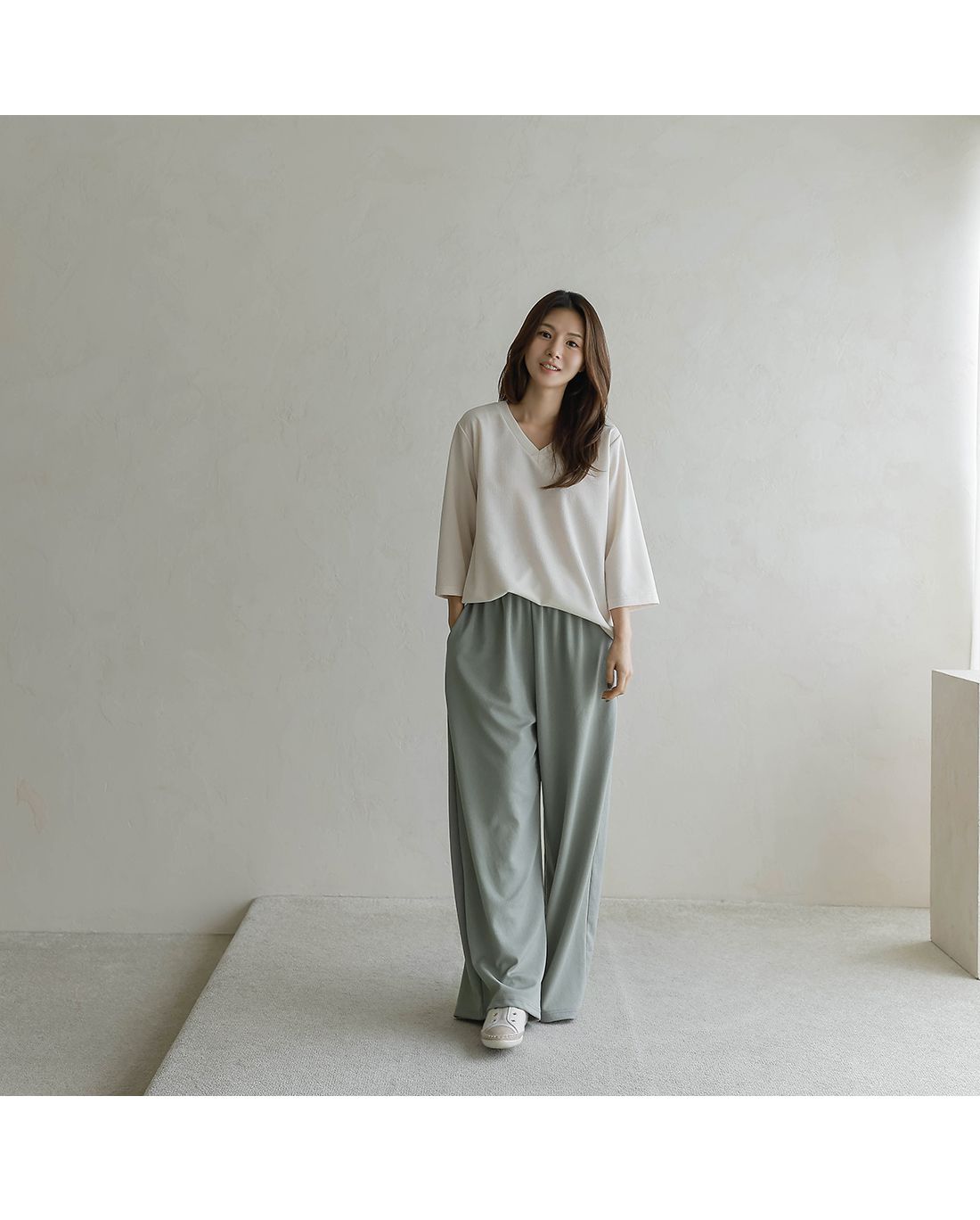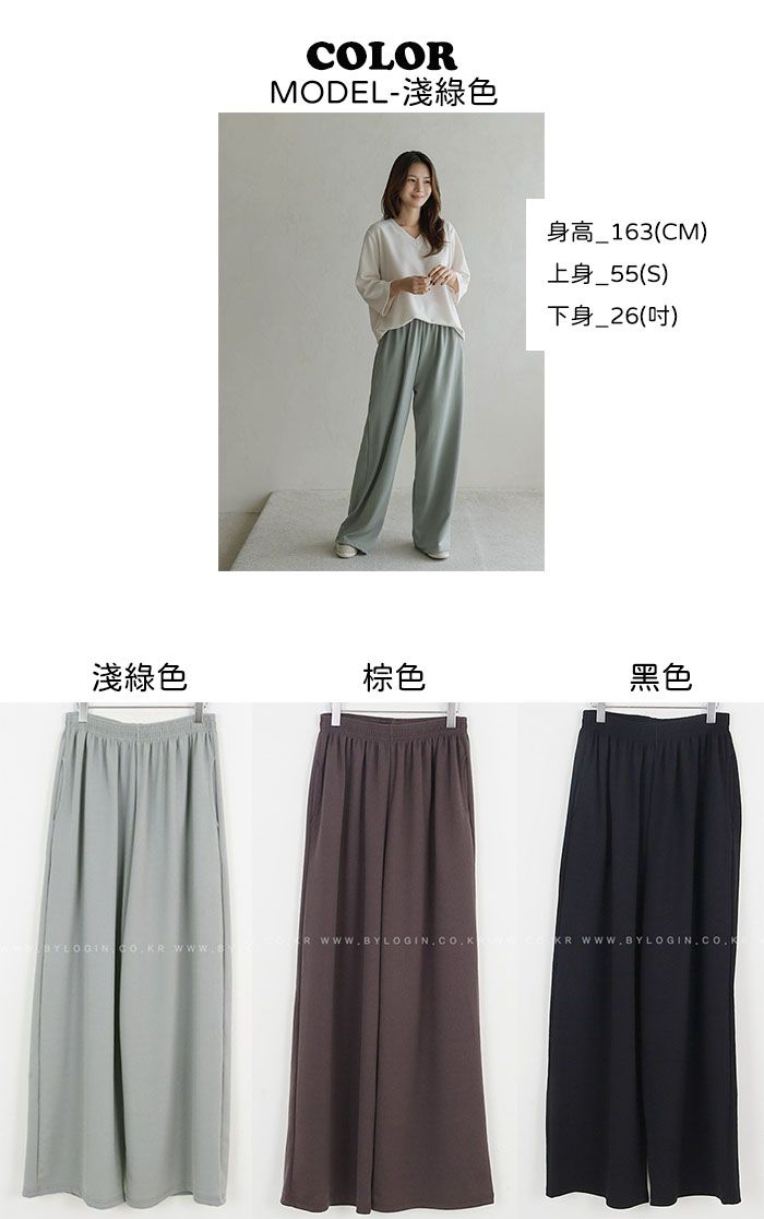 【C55642】韓國BLG 抗皺素面寬褲-全腰鬆緊雙口袋好氣色直筒長褲★★