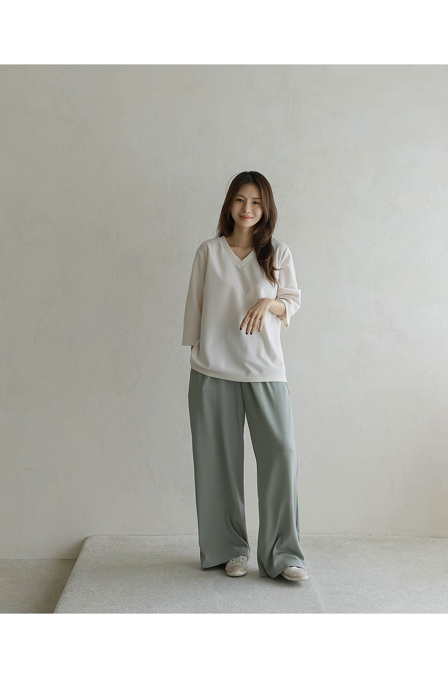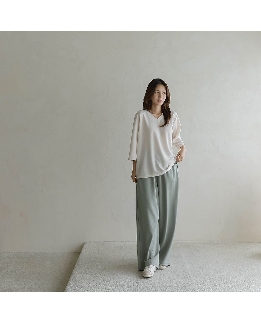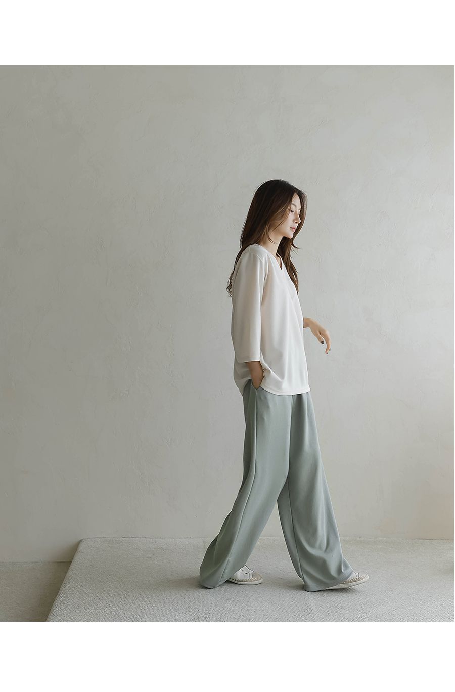 【C55642】韓國BLG 抗皺素面寬褲-全腰鬆緊雙口袋好氣色直筒長褲★★