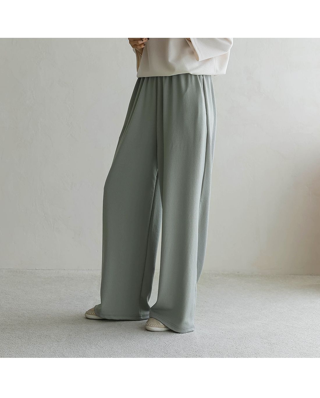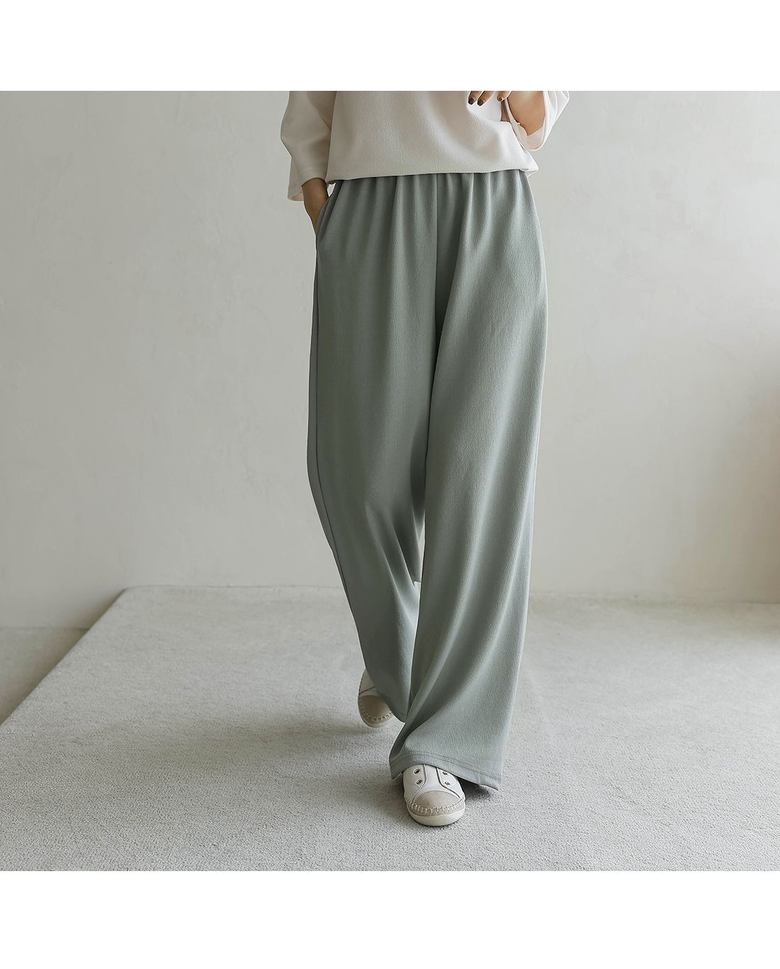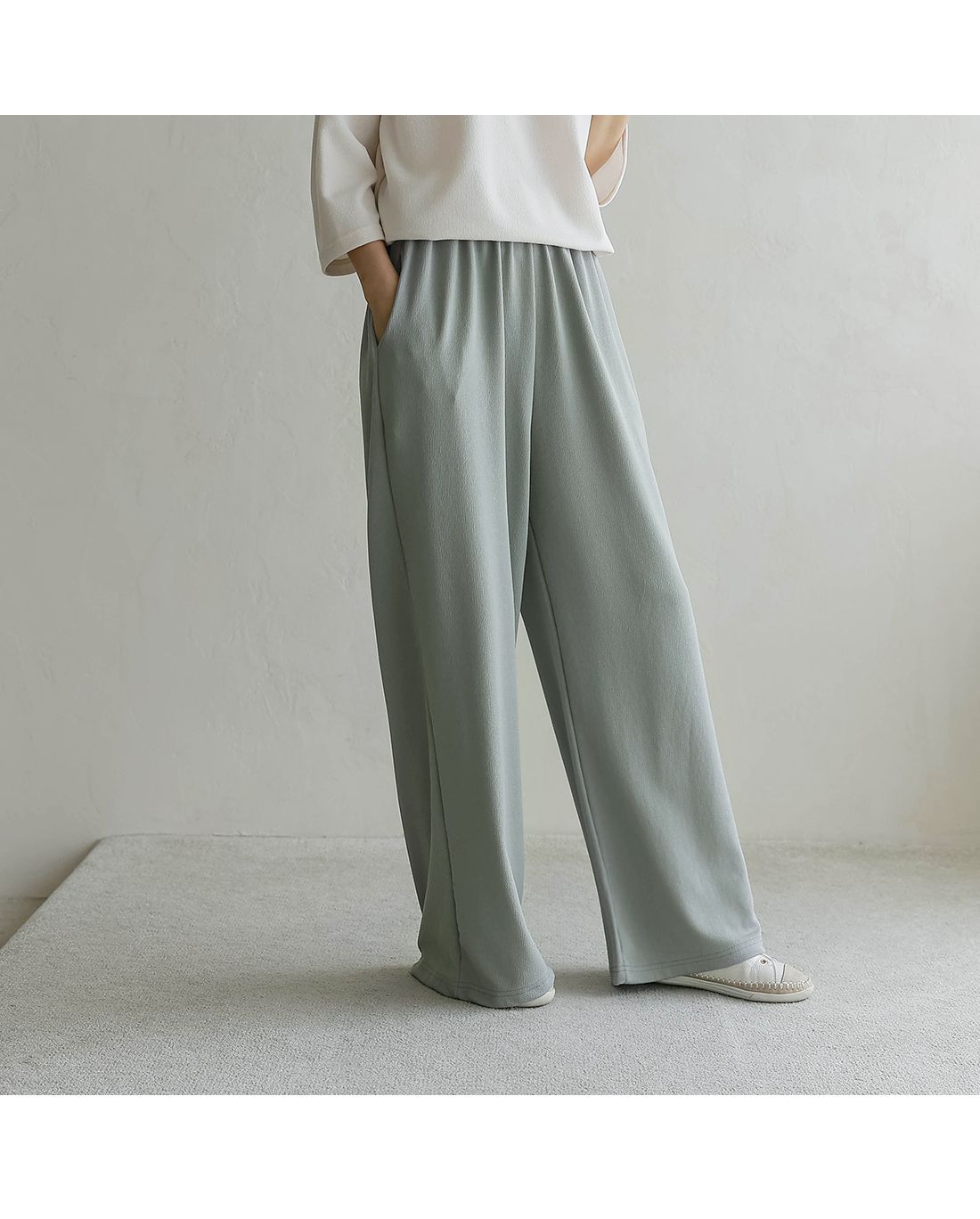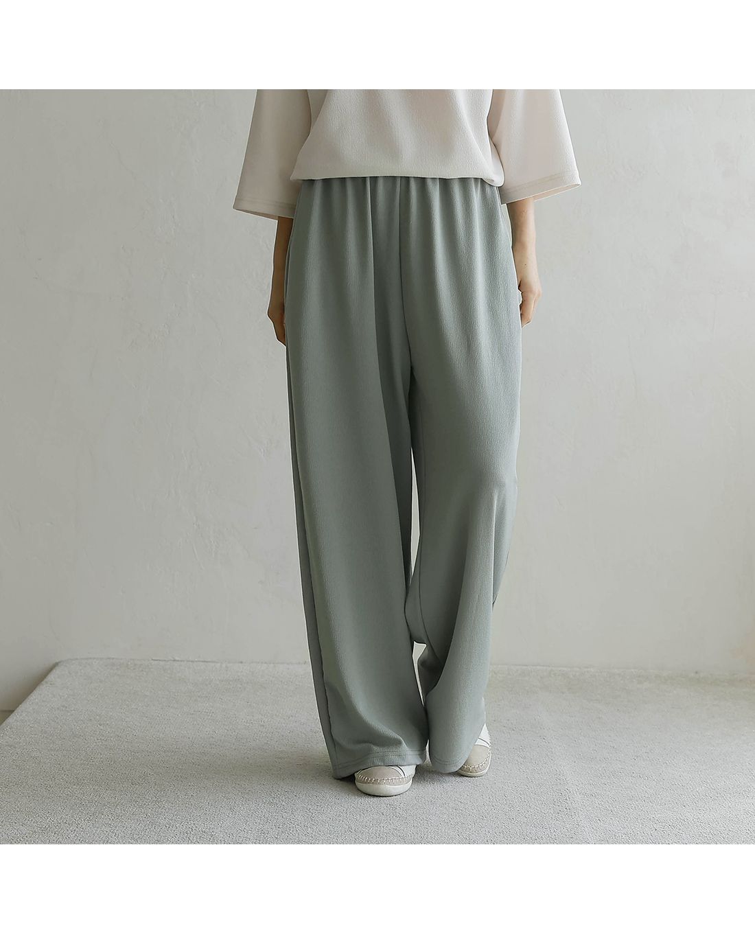兩種尺寸/皺皺布/抗皺面料/全腰鬆緊/雙口袋/好氣色/闊腿褲 - 休閒居家渡假簡約百搭素面抗皺素面寬褲直筒褲長褲多尺寸12淺綠色棕色黑色