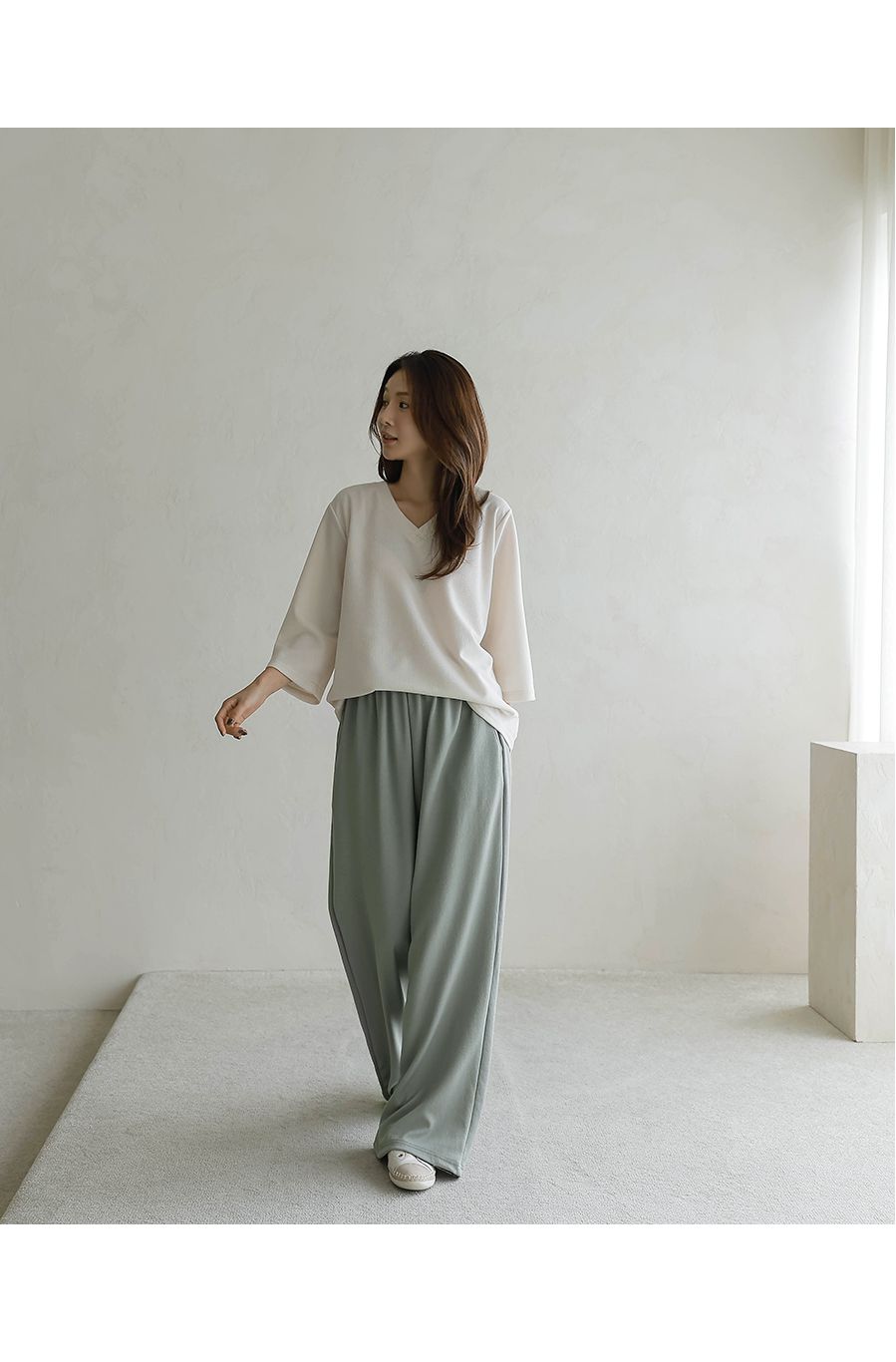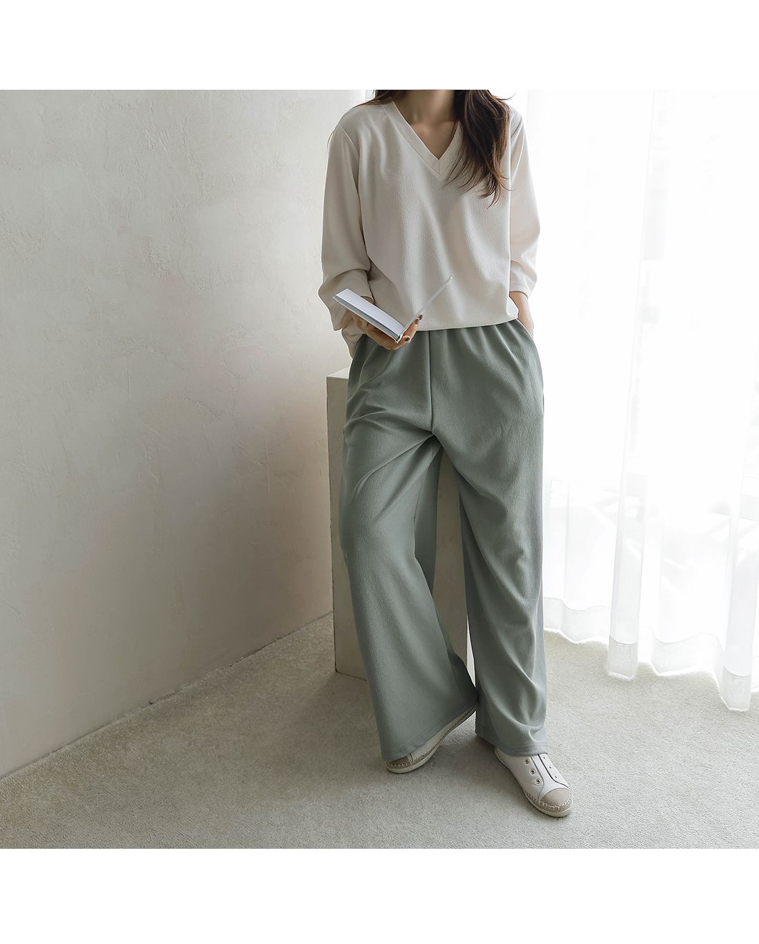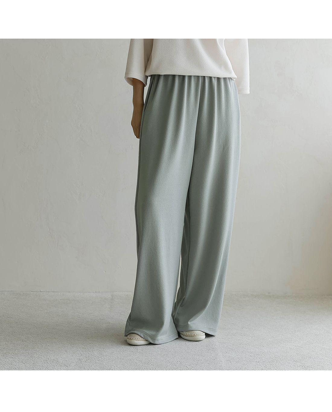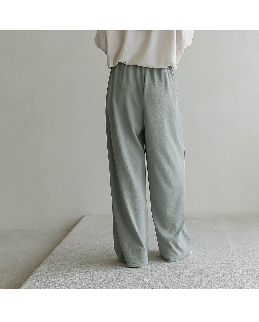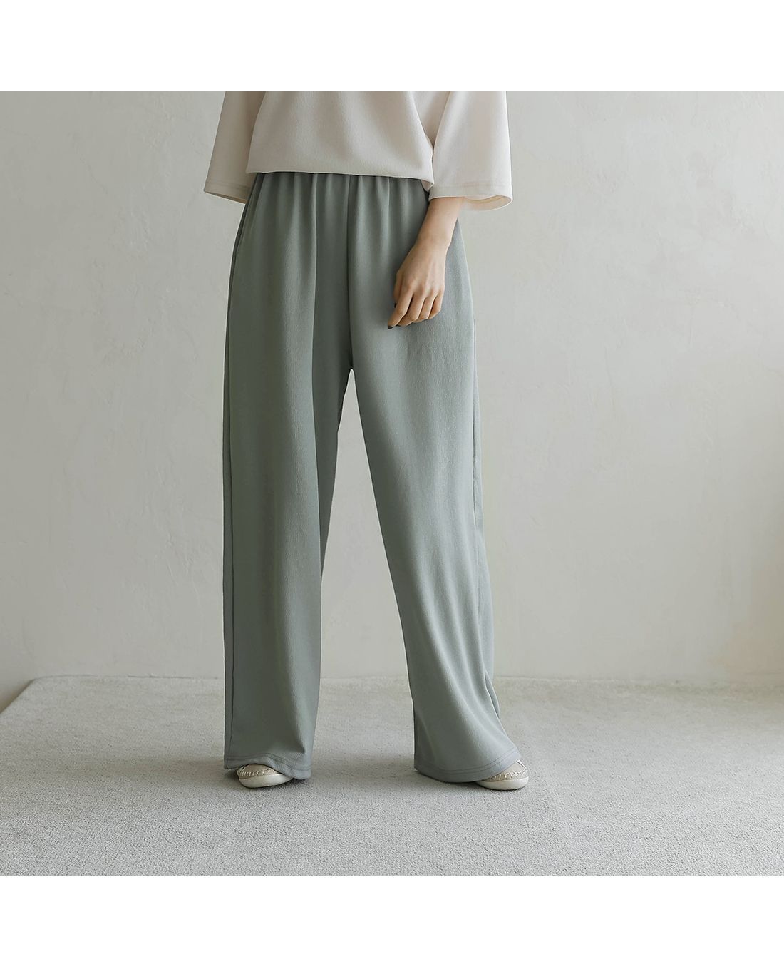 兩種尺寸/皺皺布/抗皺面料/全腰鬆緊/雙口袋/好氣色/闊腿褲 - 休閒居家渡假簡約百搭素面抗皺素面寬褲直筒褲長褲多尺寸12淺綠色棕色黑色