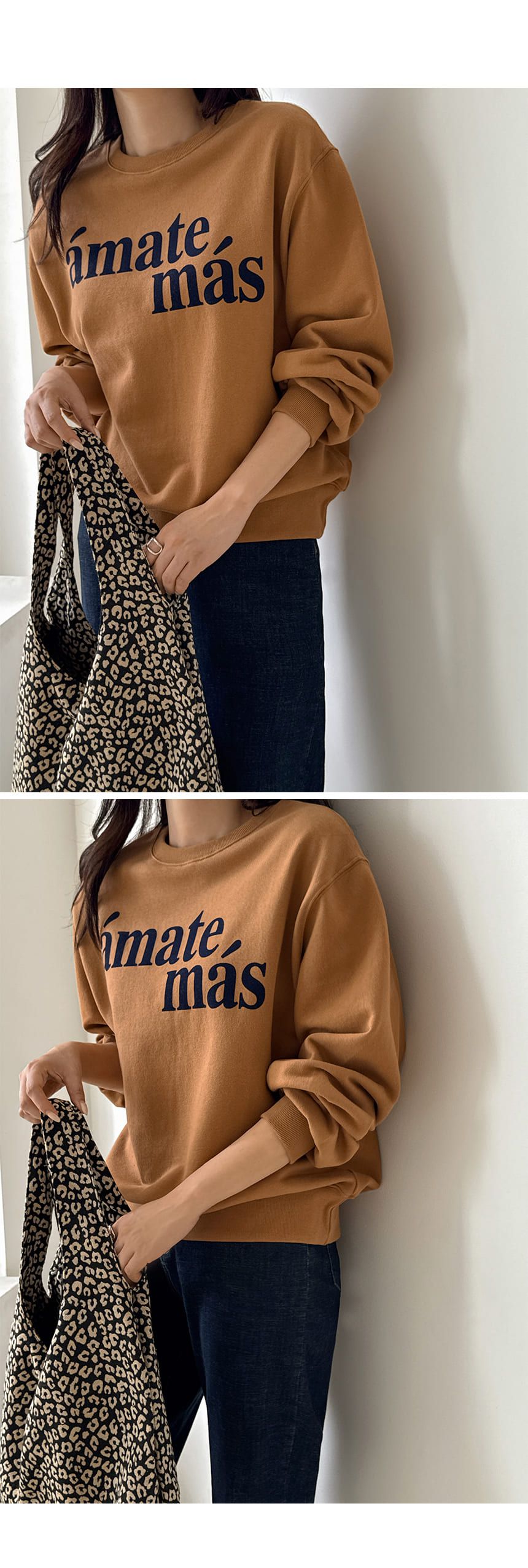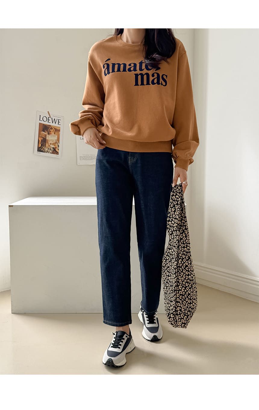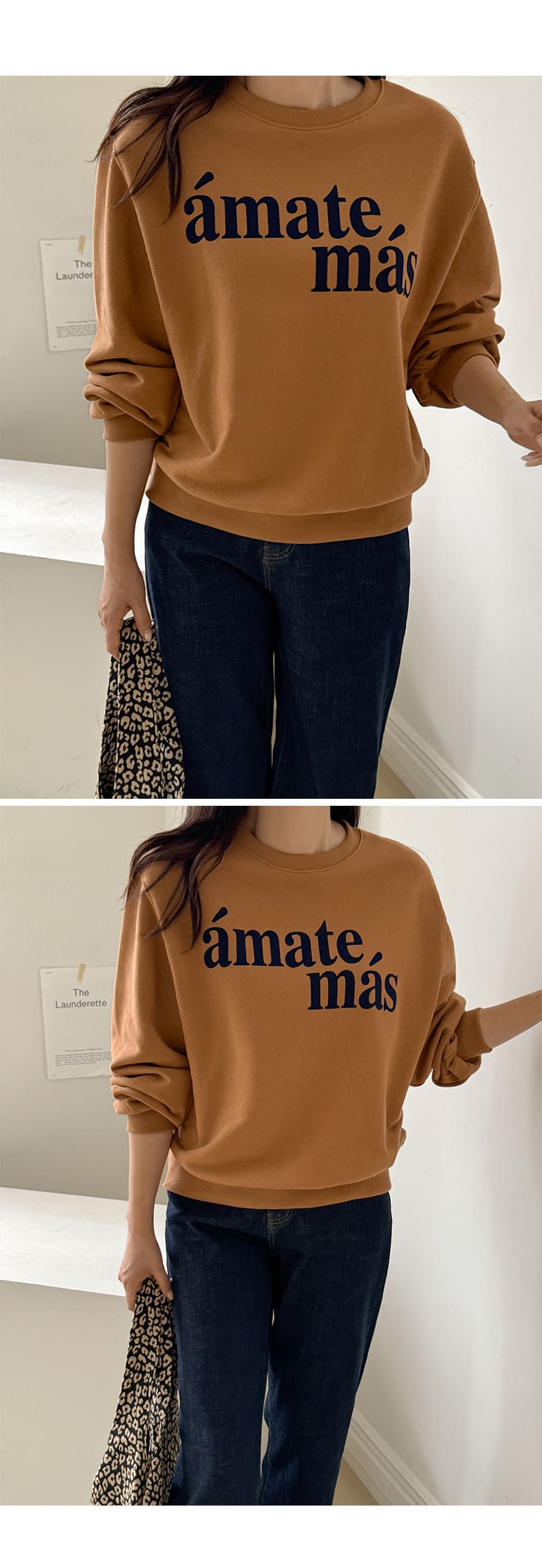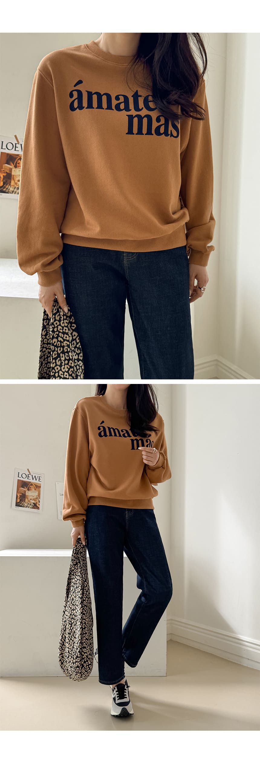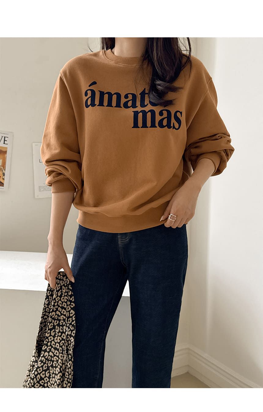 燙印絨布字母/圓領/內裏毛圈棉 - 休閒居家英文字母上衣字母T恤絨布字母大學T基礎款英文T恤長袖上衣棕色藍色燕麥色