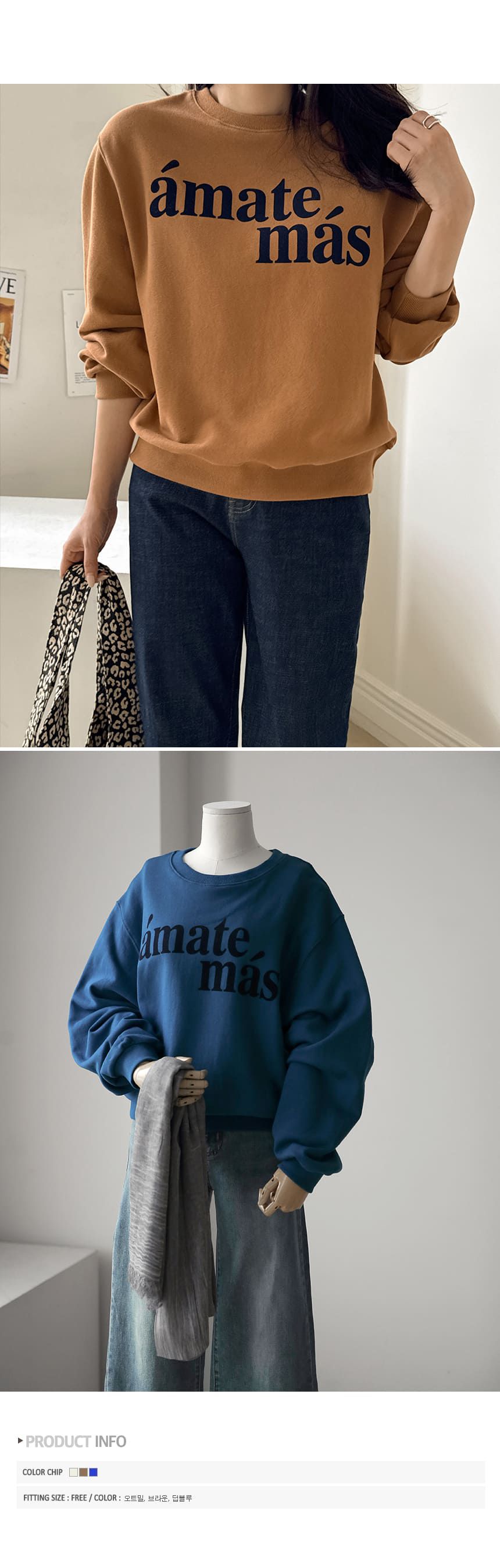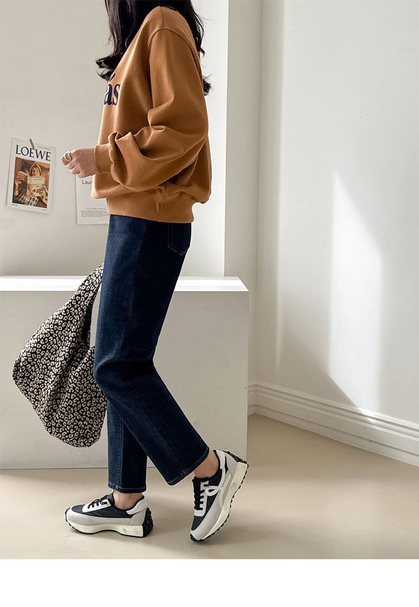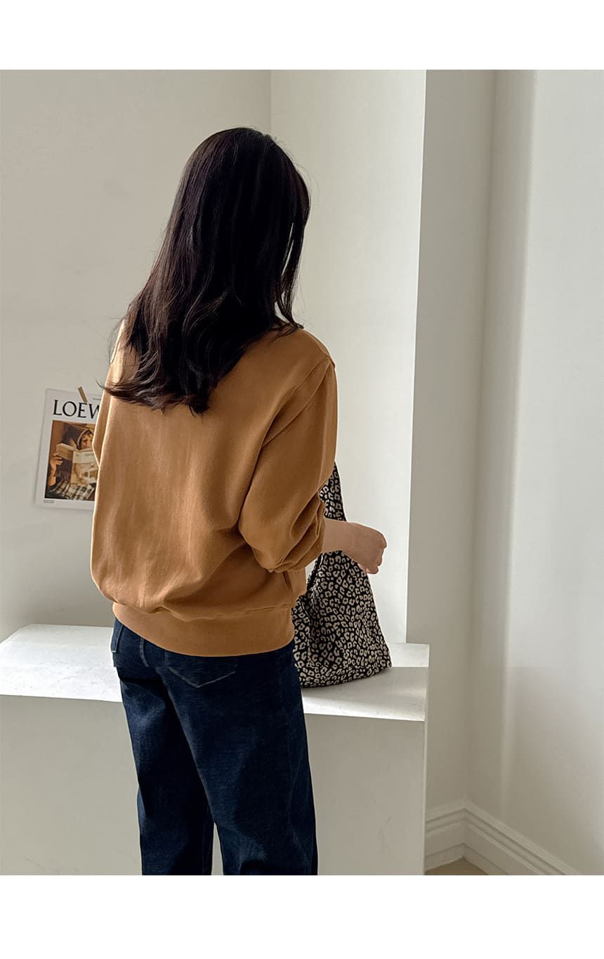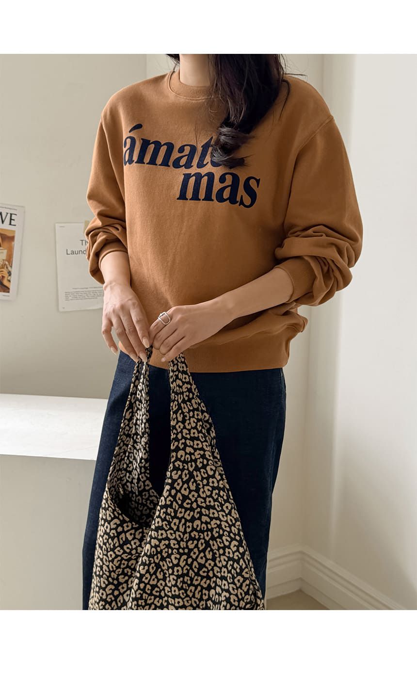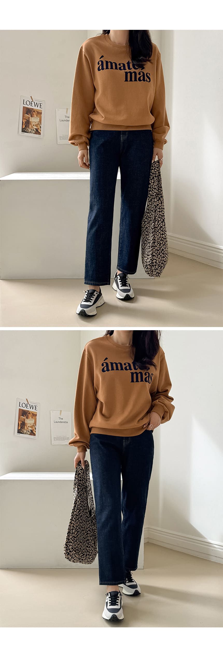 燙印絨布字母/圓領/內裏毛圈棉 - 休閒居家英文字母上衣字母T恤絨布字母大學T基礎款英文T恤長袖上衣棕色藍色燕麥色