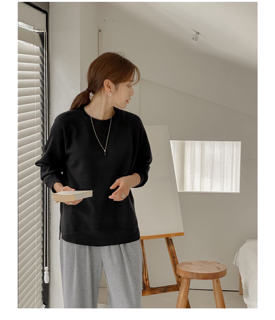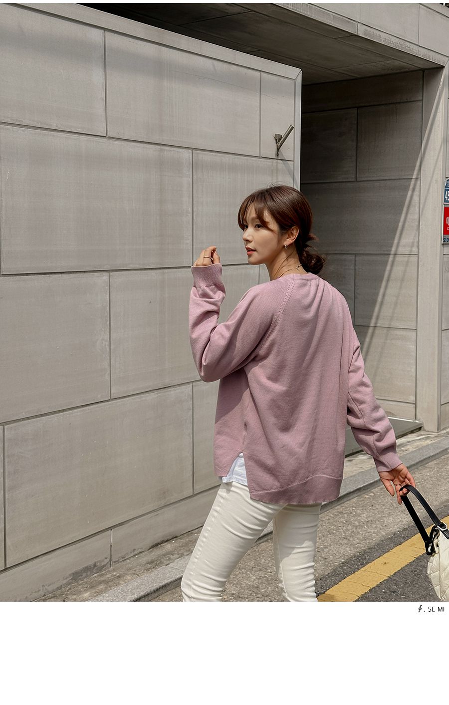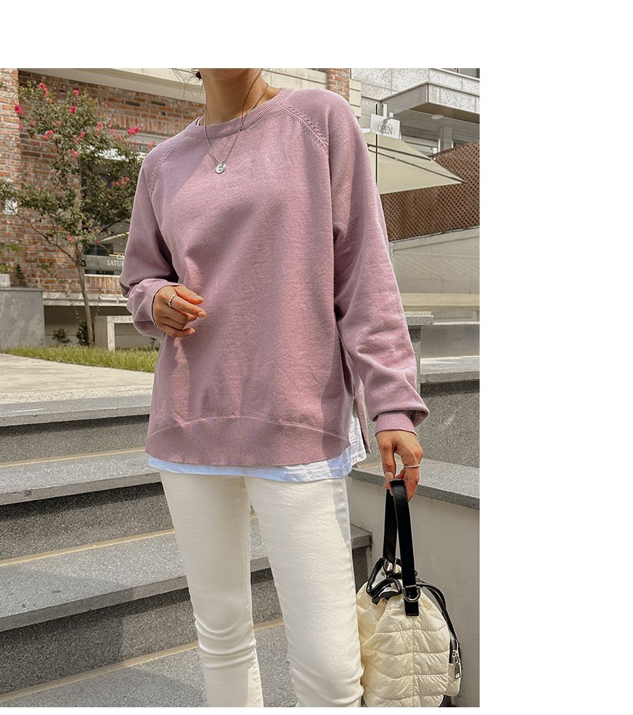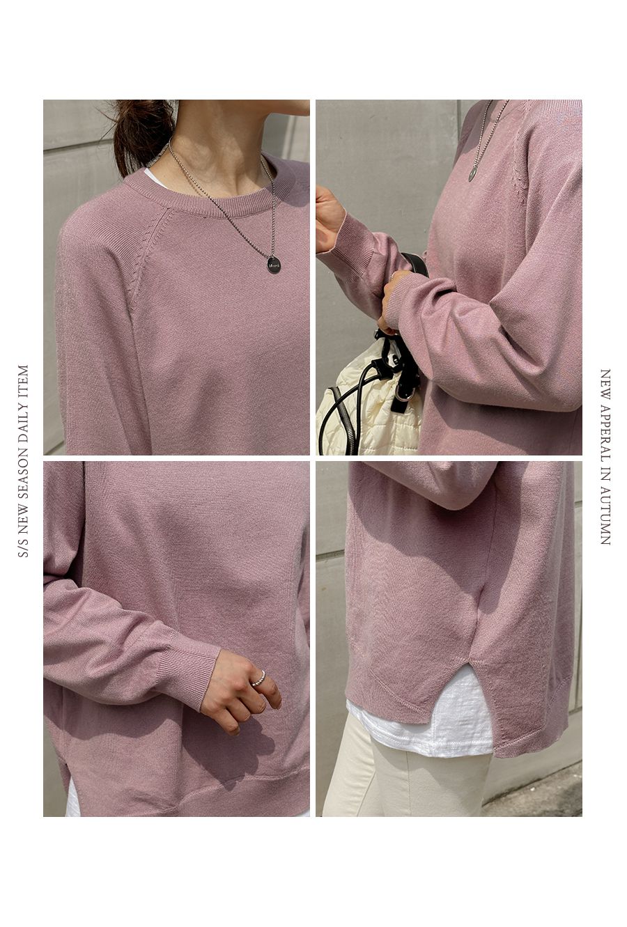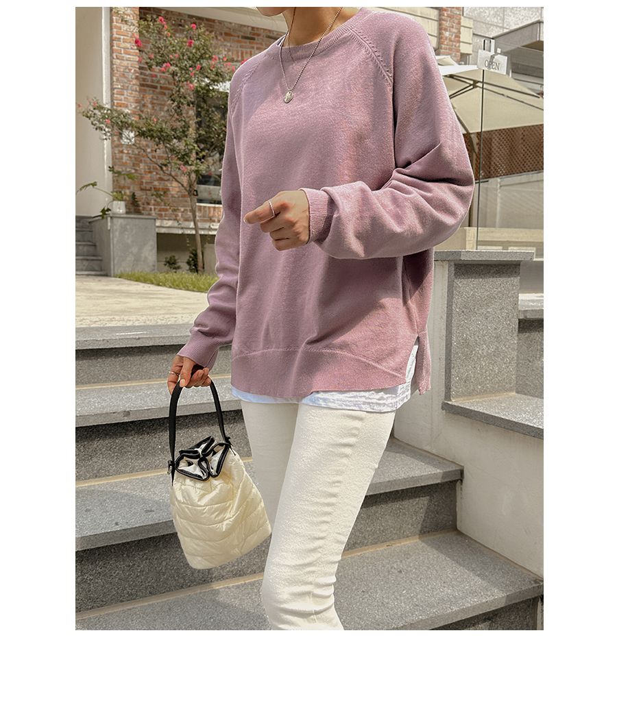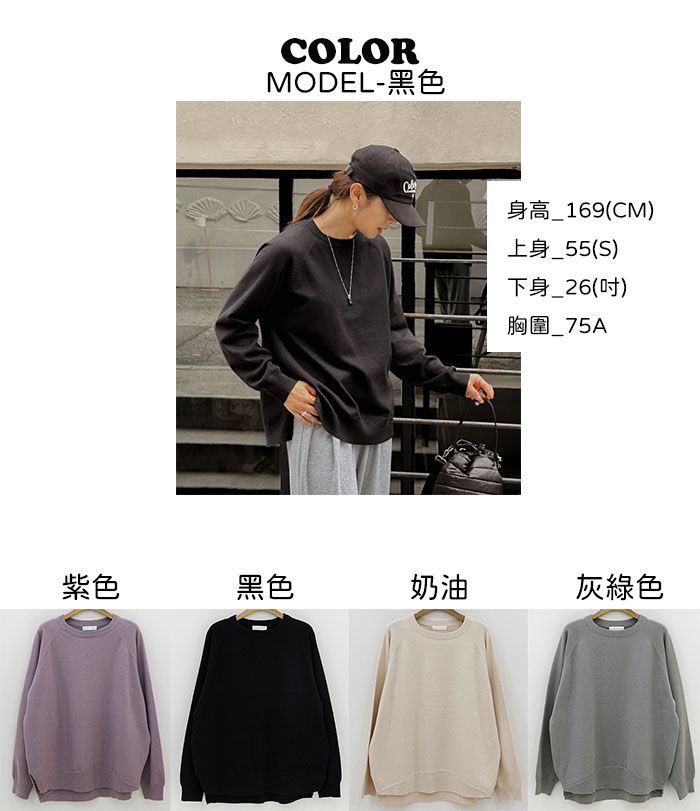 圓領/前短後長/好氣色/連肩袖/弧形下襬/側開衩/長版 - 休閒居家簡約百搭素面長版針織衫針織上衣長袖上衣紫色黑色奶油色灰綠色
