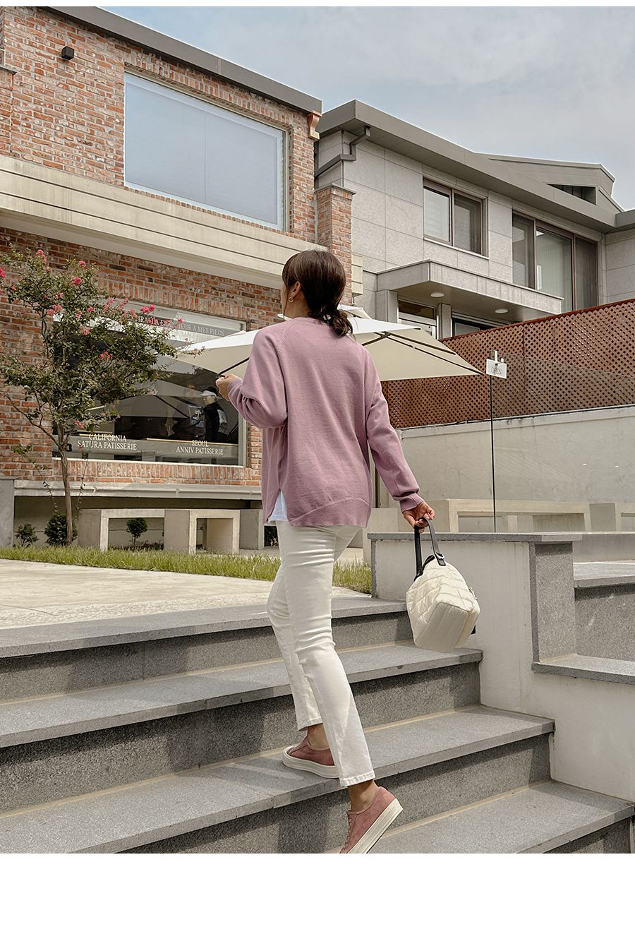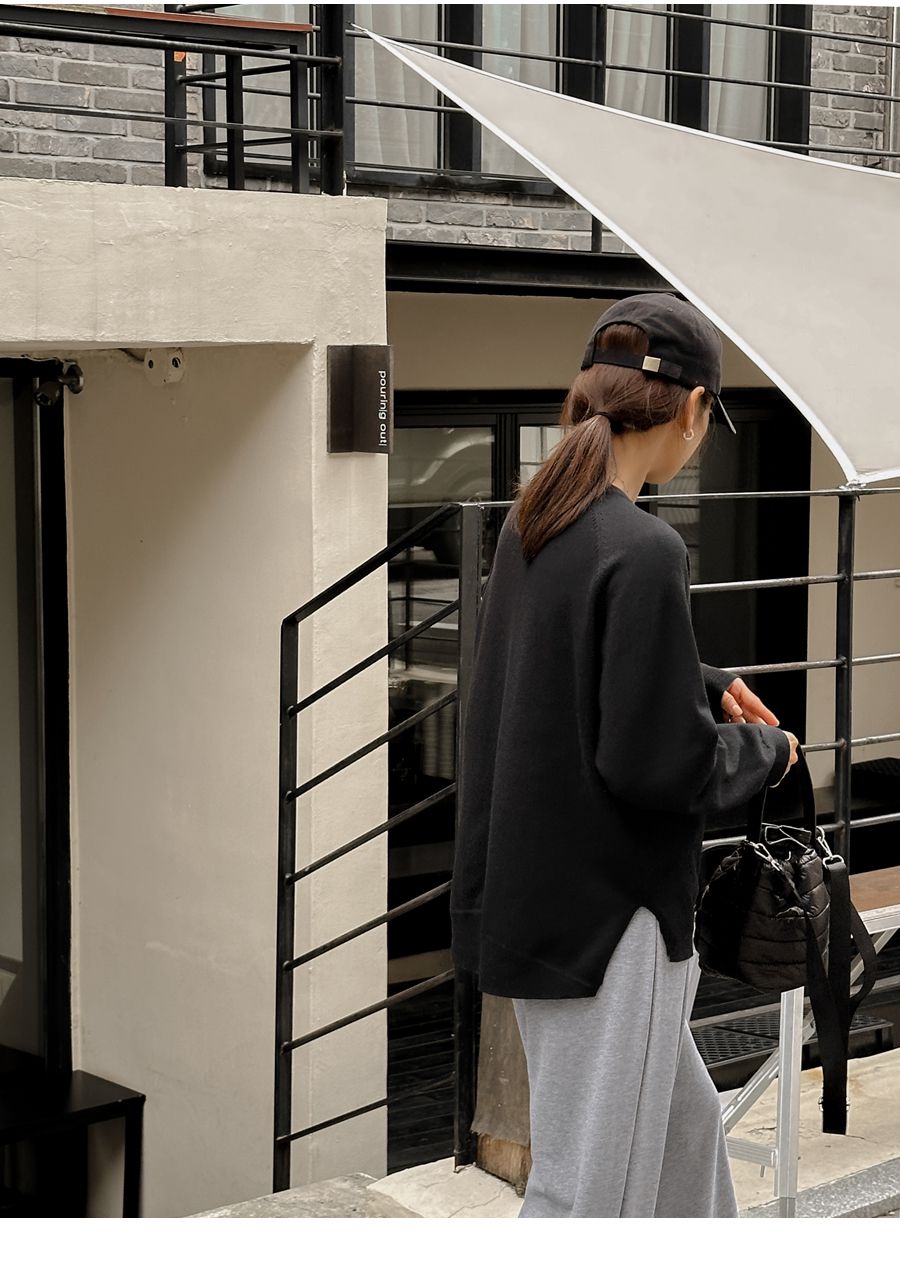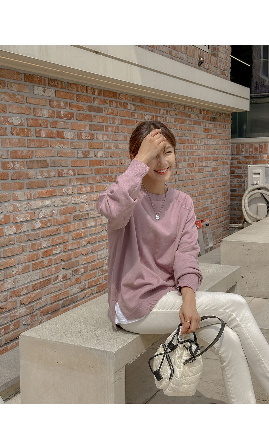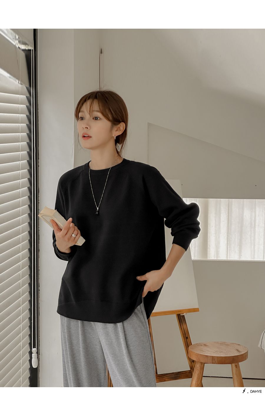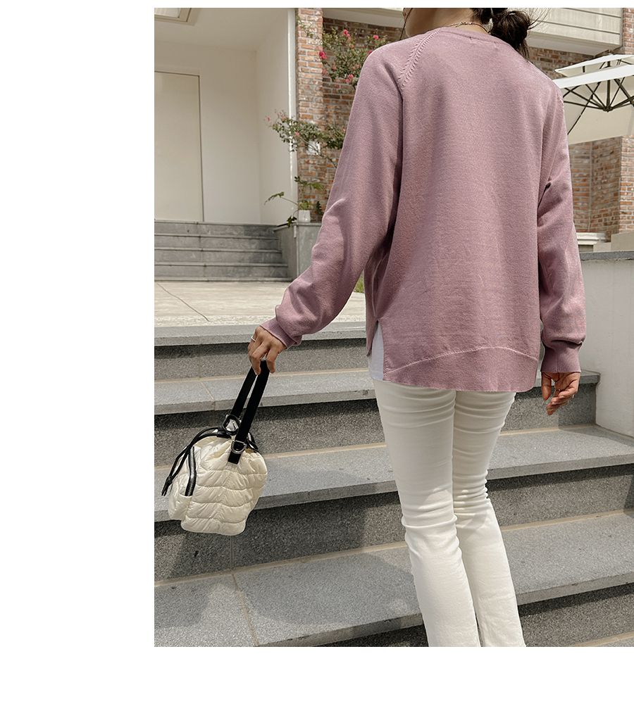 圓領/前短後長/好氣色/連肩袖/弧形下襬/側開衩/長版 - 休閒居家簡約百搭素面長版針織衫針織上衣長袖上衣紫色黑色奶油色灰綠色