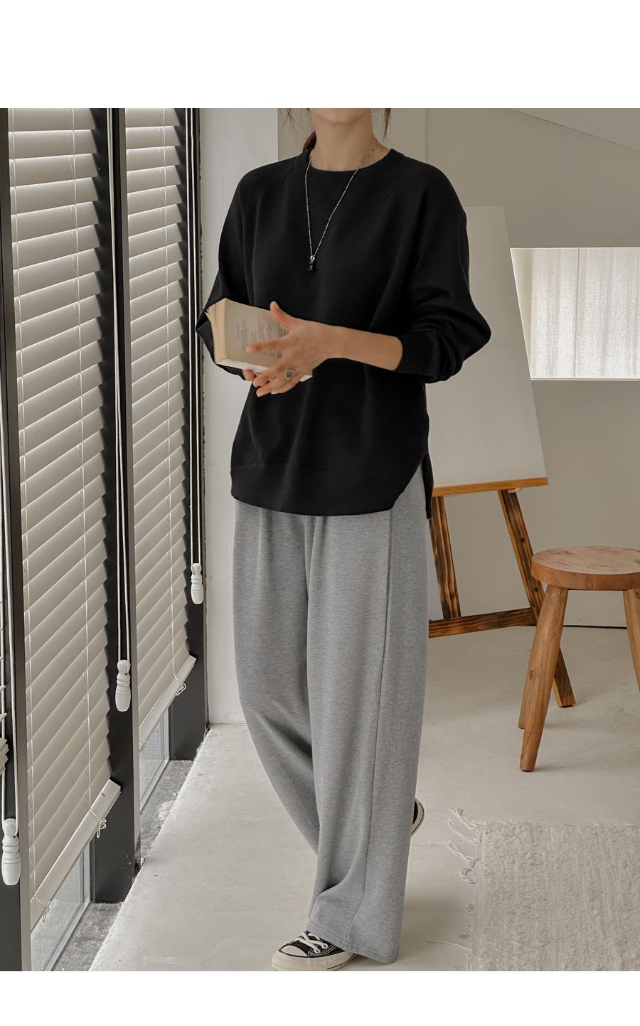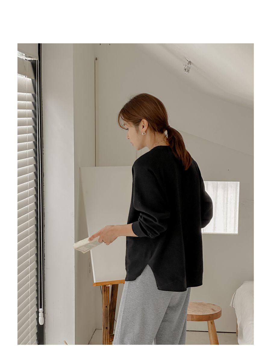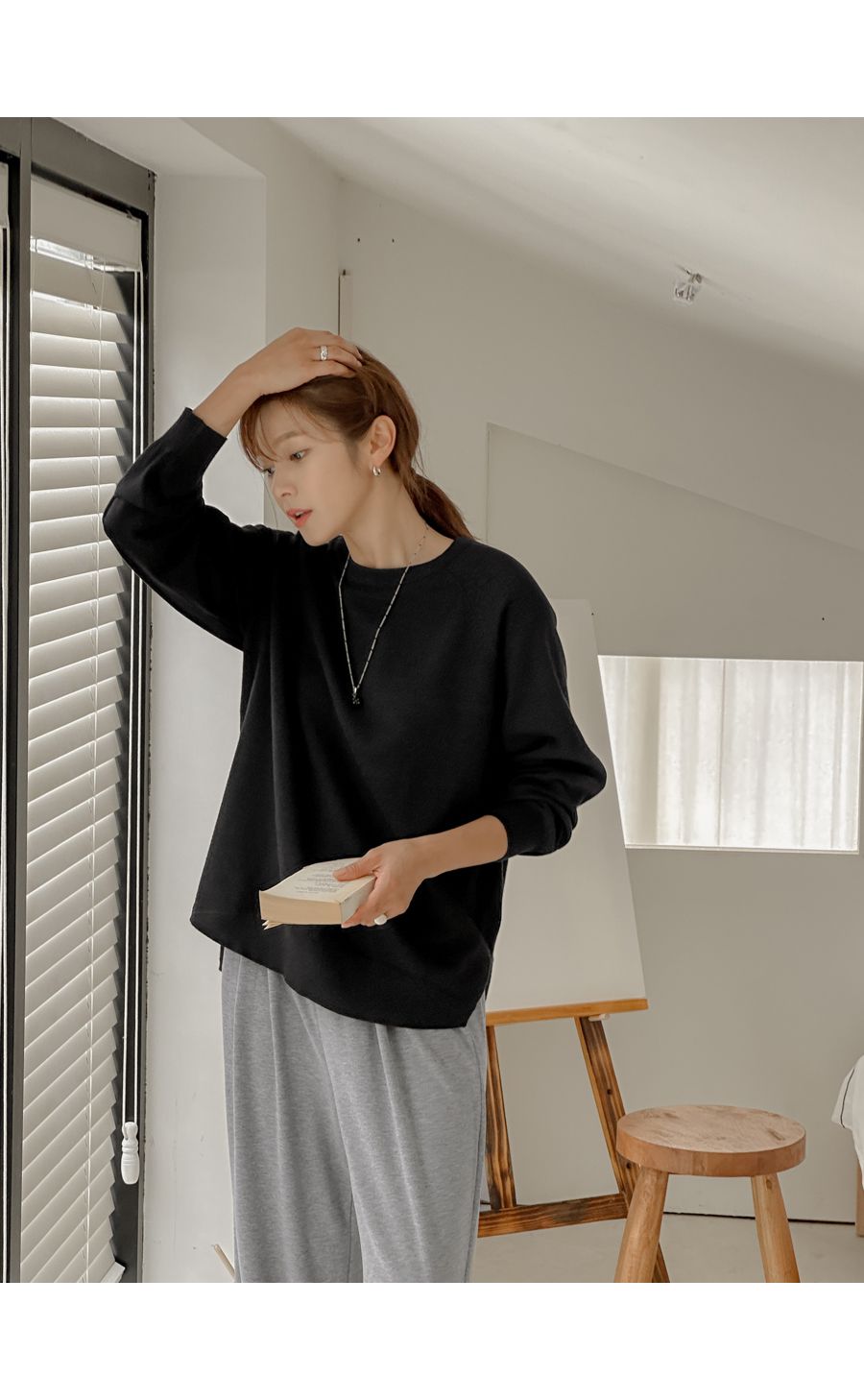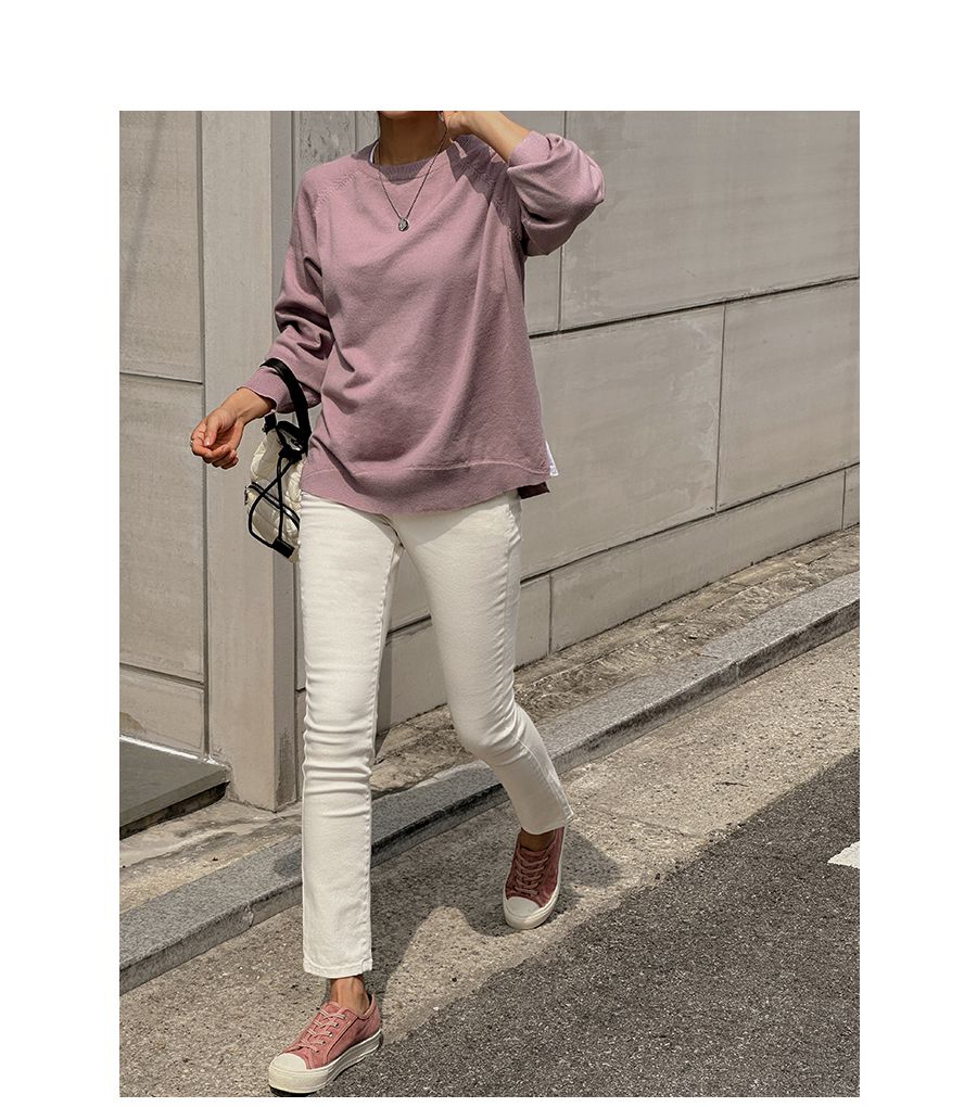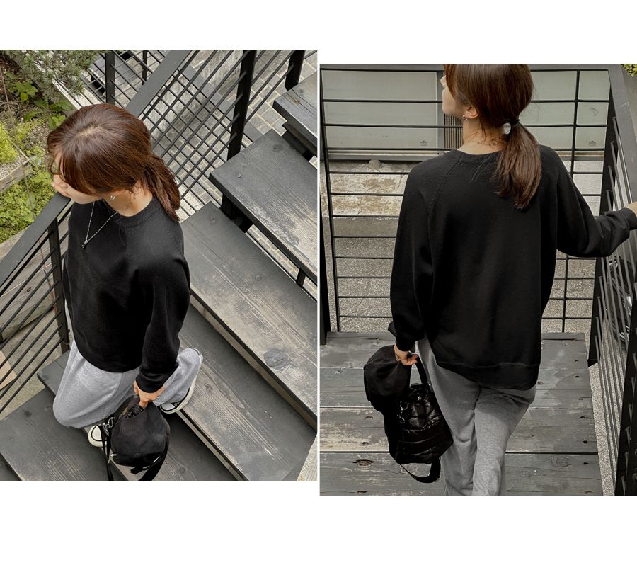 圓領/前短後長/好氣色/連肩袖/弧形下襬/側開衩/長版 - 休閒居家簡約百搭素面長版針織衫針織上衣長袖上衣紫色黑色奶油色灰綠色